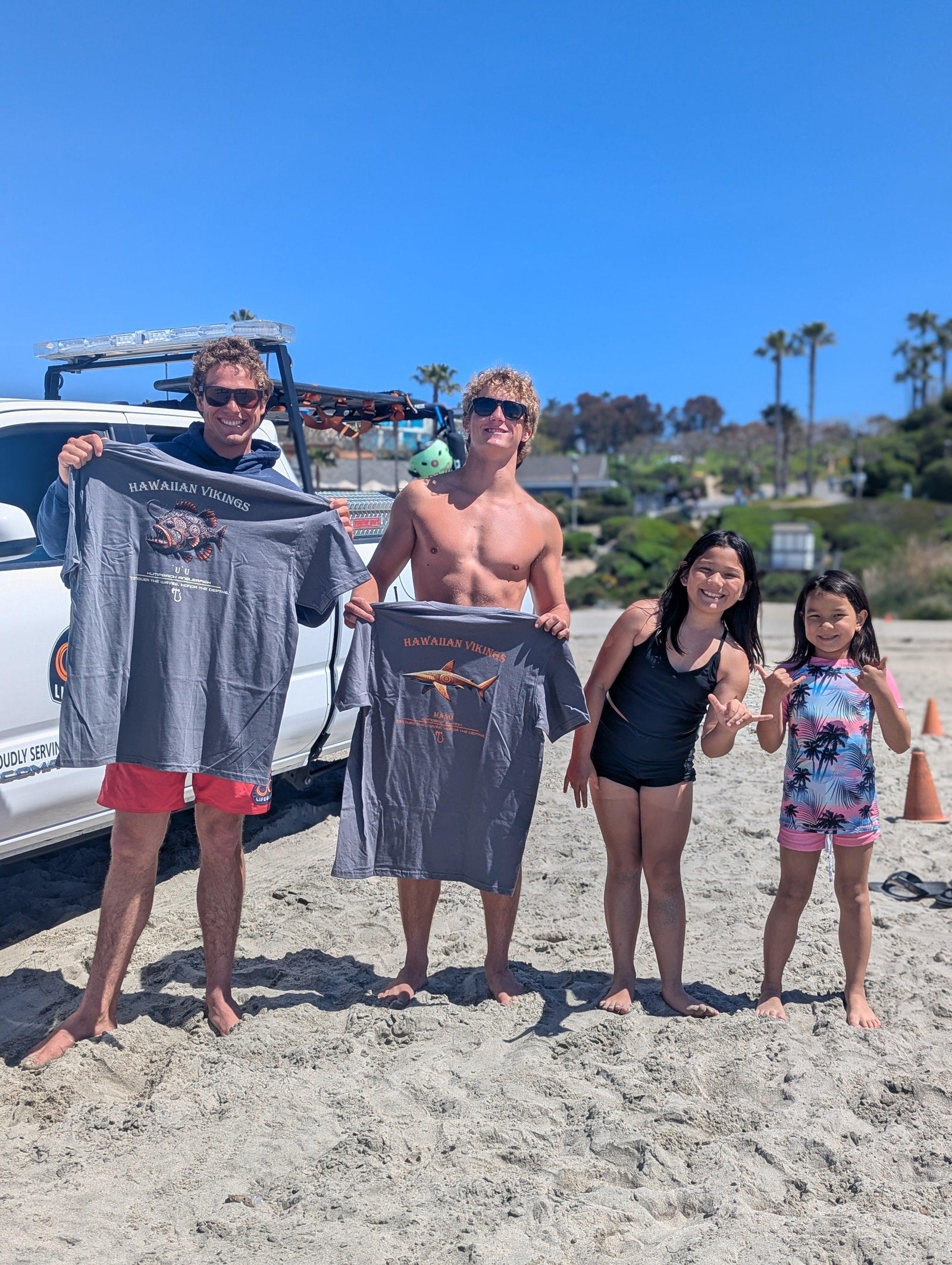 Valkyrie and Freyja brought Hawaiian Vikings aloha to the WSA Surf Competition this weekend, handing out free gear to the lifeguards who keep our shores safe. They met Cooper, an awesome lifeguard, and gifted him and his partner “Legends of the Deep” shirts to thank them for being true ocean heroes.