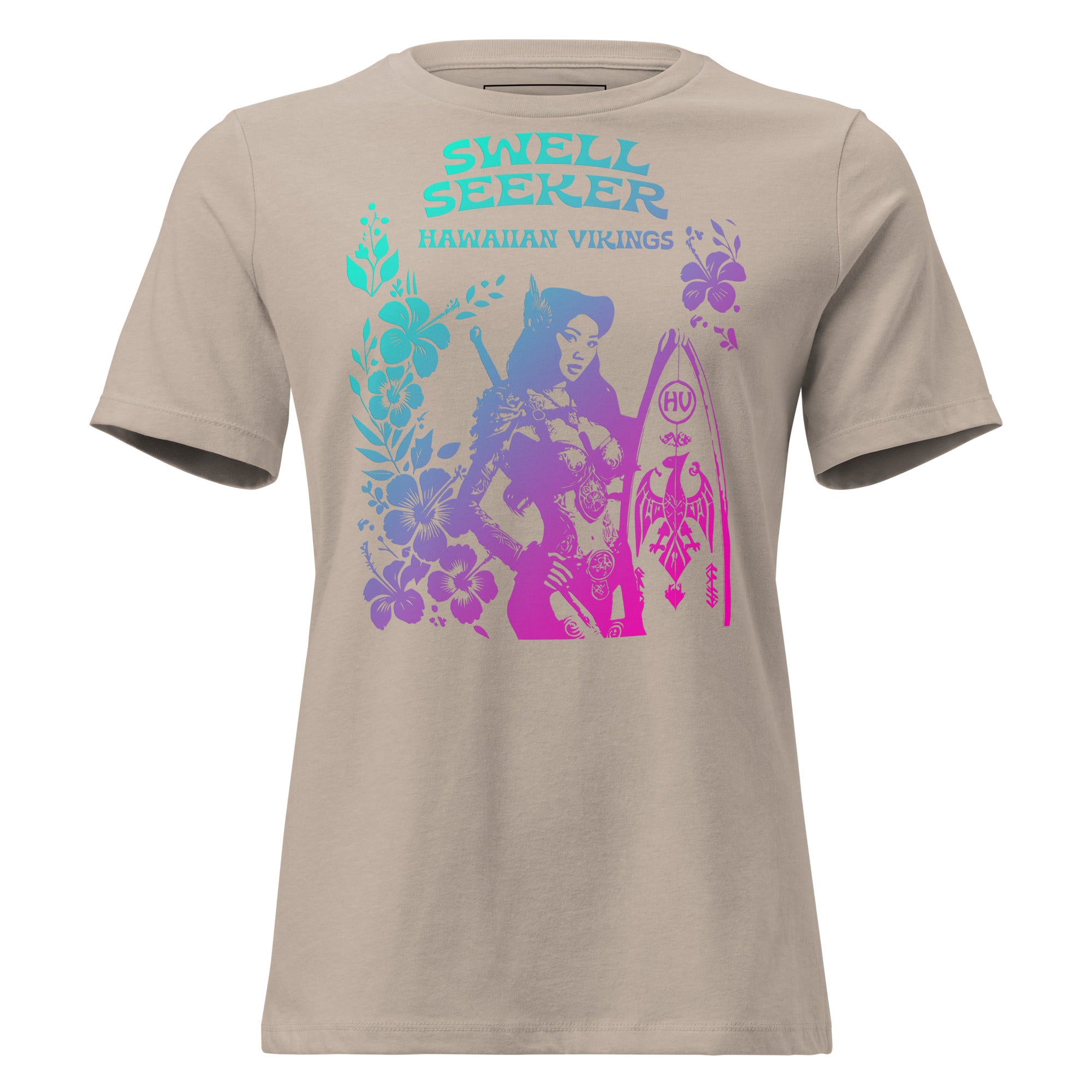 The Women's Relaxed T-Shirt featuring the "Swell Seeker" design is a must-have for women who embrace the adventure of the open waves and the thrill of exploration. Showcasing bold surfer girls chasing their next big swell, this design symbolizes freedom, courage, and a passion for the ocean. Crafted from soft, breathable fabric with a relaxed fit, this tee offers effortless comfort for beach days, casual outings, or wherever your journey takes you. Celebrate your inner adventurer and express your love for the sea with this stylish and empowering t-shirt made for true Swell Seekers.