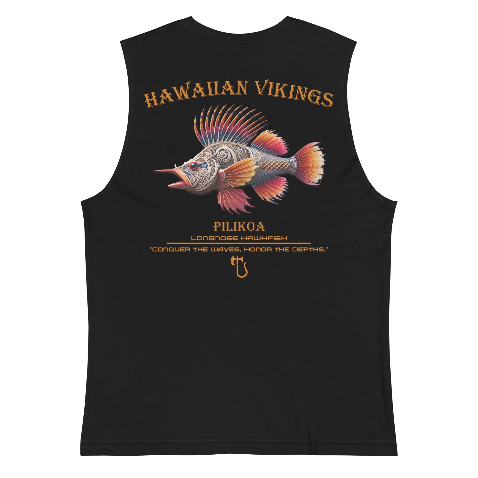 Part of the Legends of the Deep collection, this sleeveless muscle tee is crafted from premium, ultra-soft fabric designed for comfort, mobility, and everyday durability. Whether you’re standing watch, moving with intent, or striking exactly when the time is right, its relaxed fit and bold design carry the spirit of the reef’s vigilant sentry.