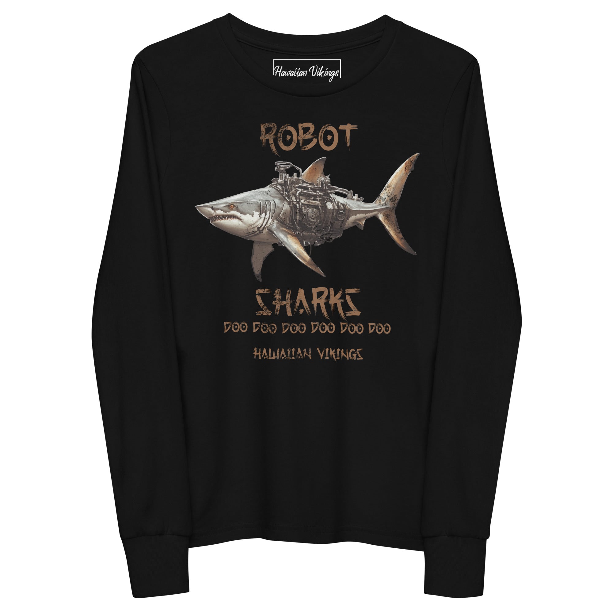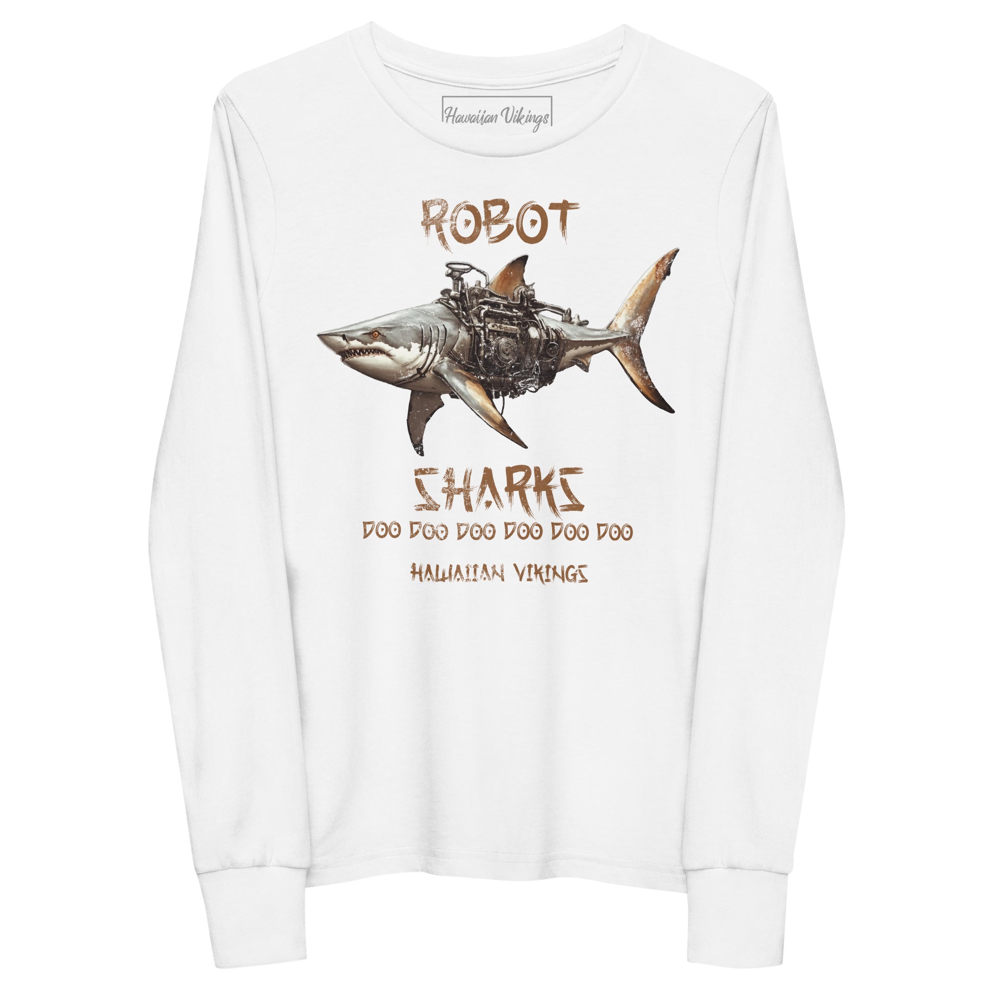 Gear up and dive in with the Robot Shark Long Sleeve Tee from Hawaiian Vikings! This steampunk-inspired design reimagines the ocean’s fiercest predator with gears, bolts, and fins built for adventure—a mechanical legend made for young explorers with wild imaginations.