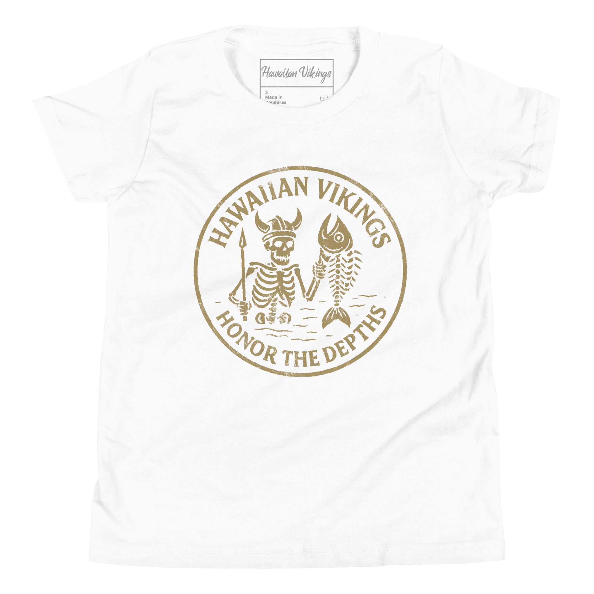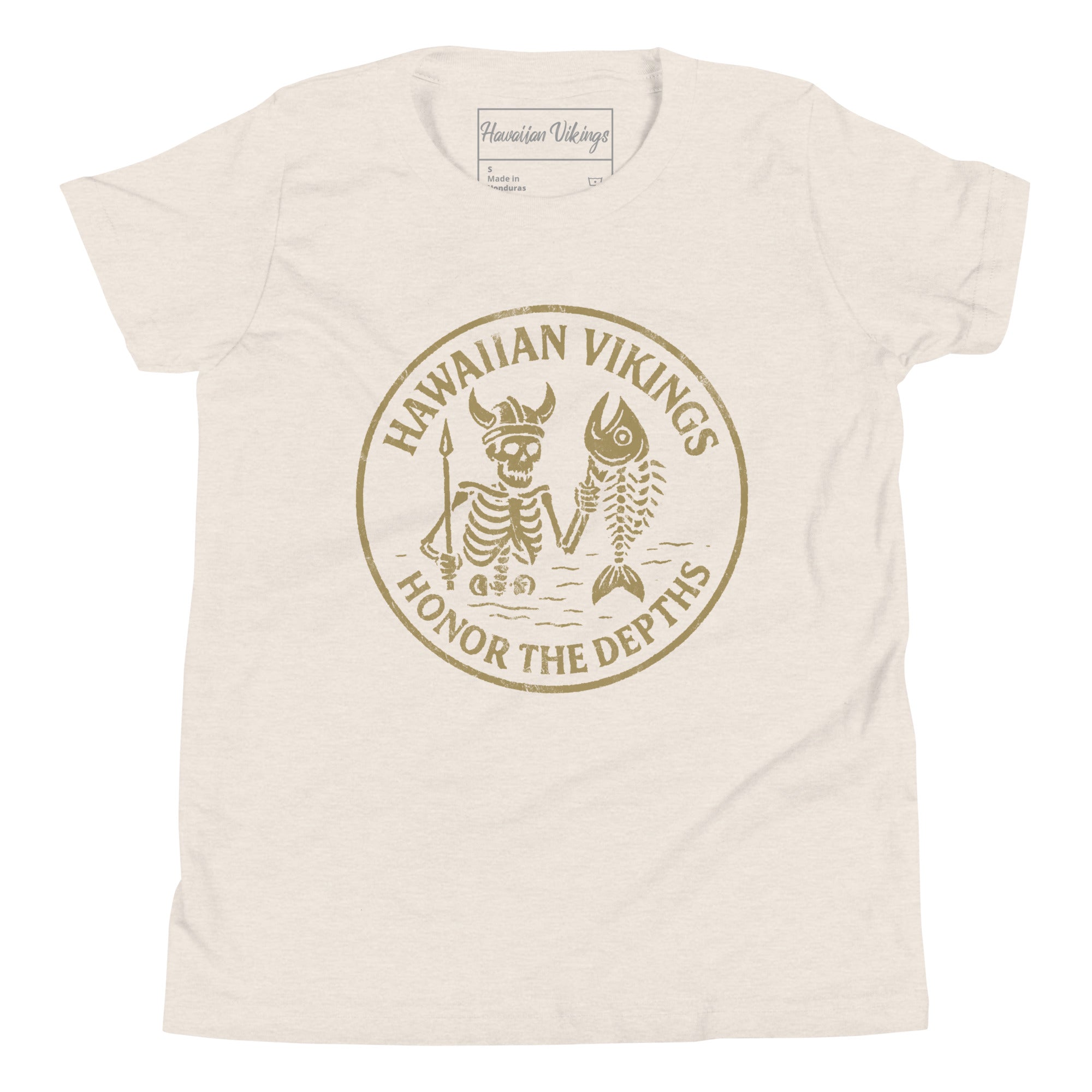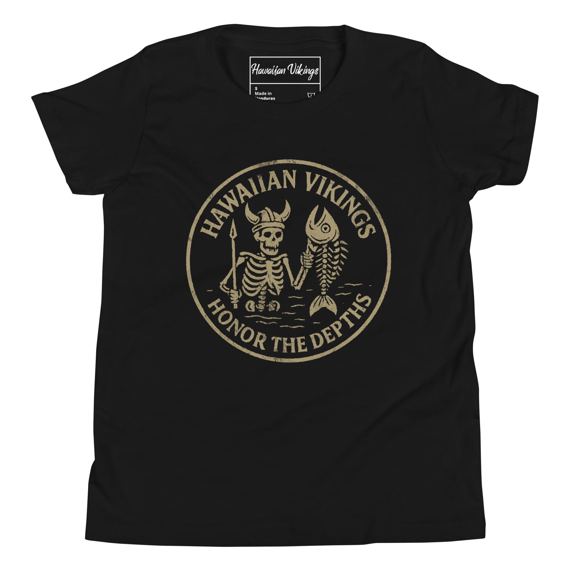 Old-school courage meets island heart in the Skeleton Spearfishing Tee from Hawaiian Vikings. This bold vintage-inspired shirt features a fearless skeleton warrior holding his prized catch in one hand and a spear in the other — a tribute to the spirit of adventure beneath the waves.