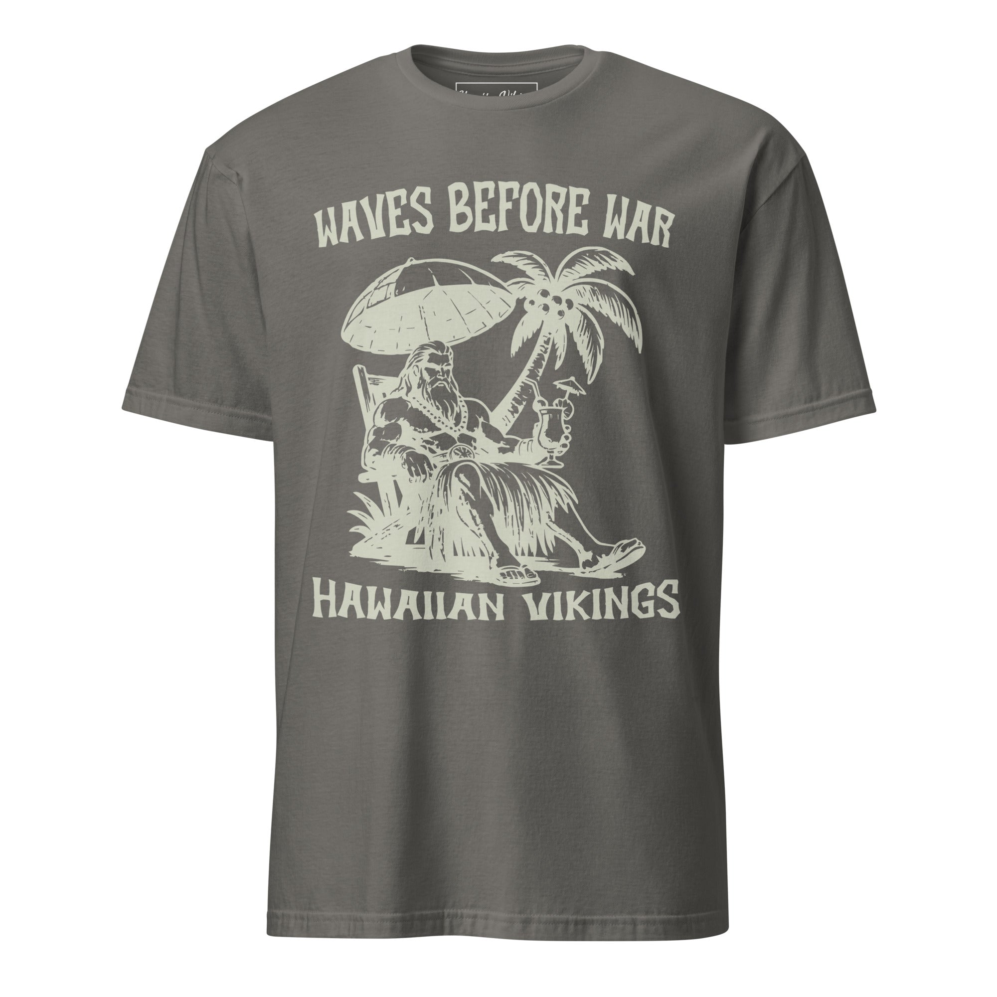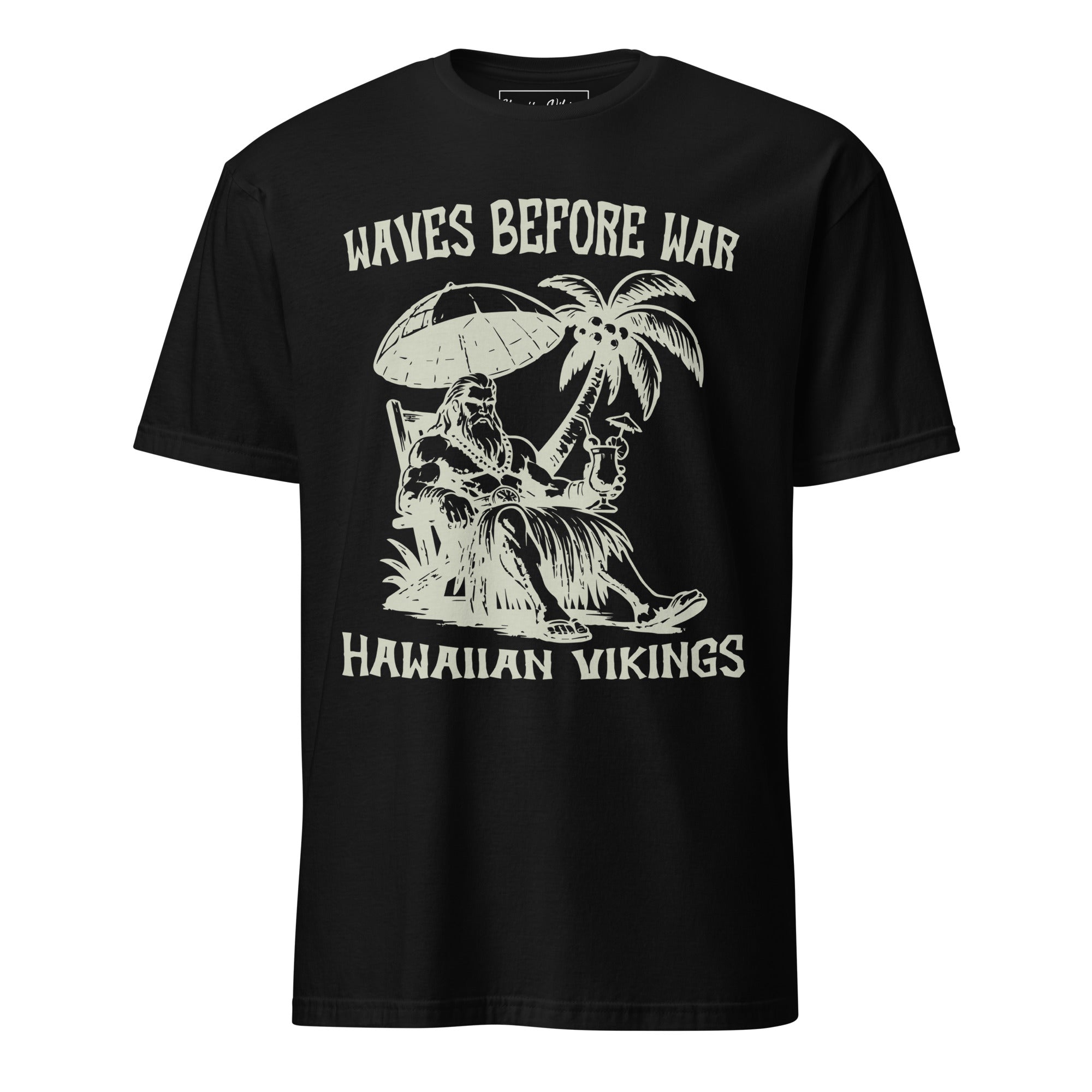 Even the fiercest warriors need a day off. The Waves Before War tee from Hawaiian Vikings captures a vintage-style Viking warrior kicked back in a beach chair, drink in hand, soaking up the calm before the storm. It’s a playful clash of battle-born grit and laid-back island life—because conquering waves always comes before conquering kingdoms.