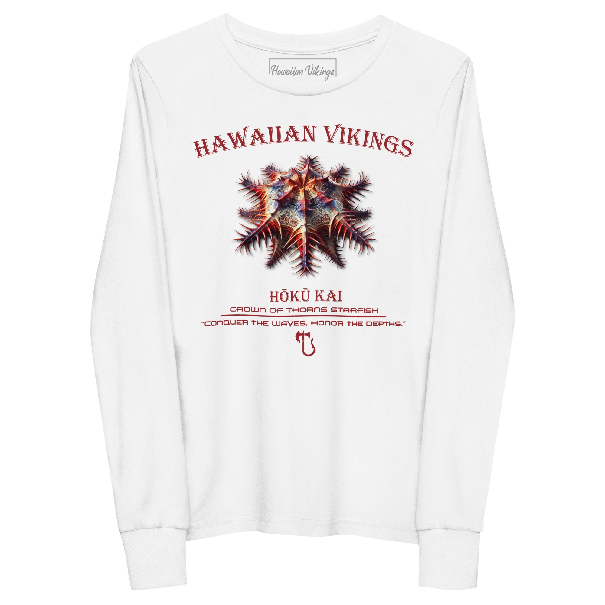 The Crown of Thorns Starfish Youth Long Sleeve T-Shirt brings coral reef drama to the surface with one of the ocean’s most visually stunning—and misunderstood—creatures. With its striking star shape and venomous spines, this reef-dweller may look like royalty, but it's a wild force of nature.