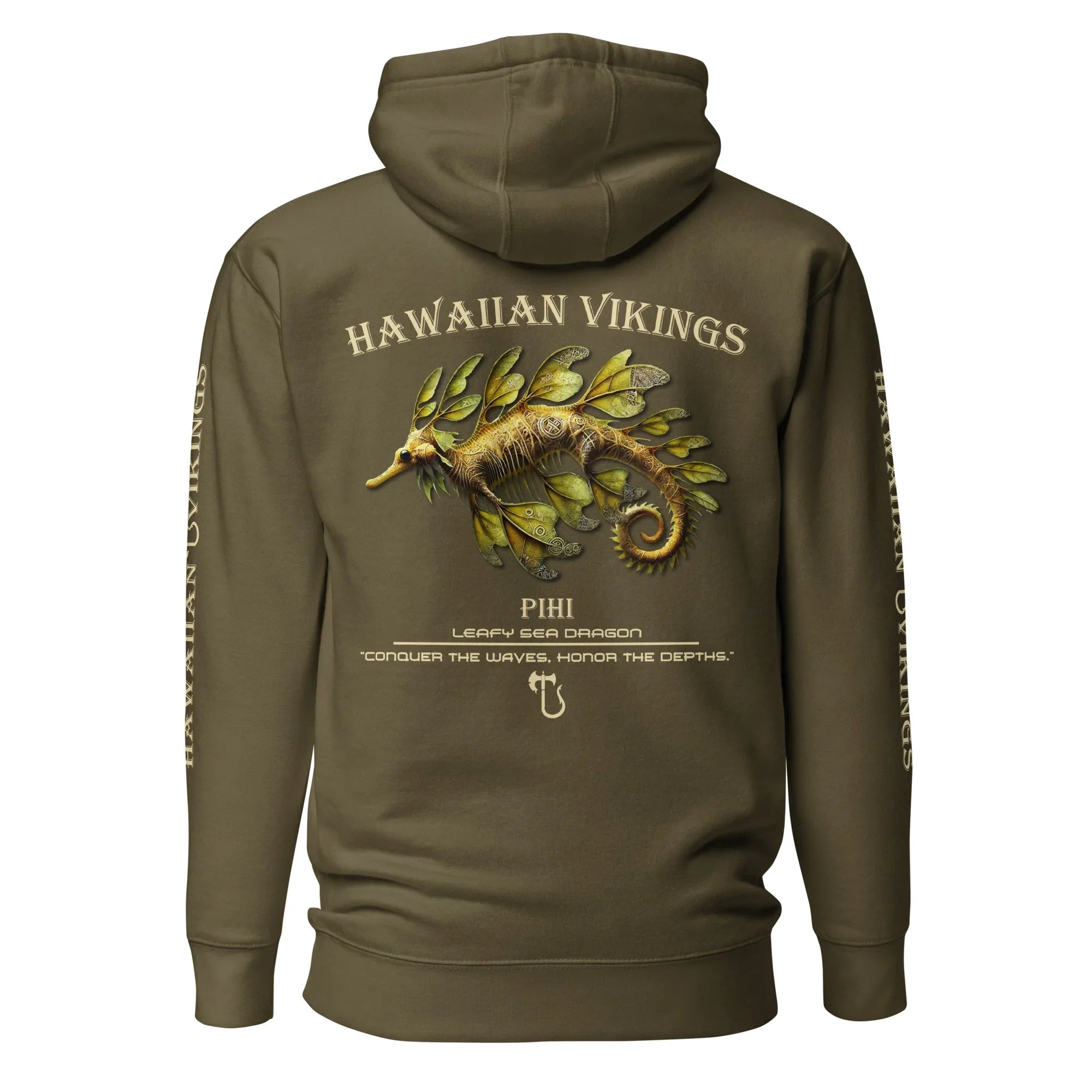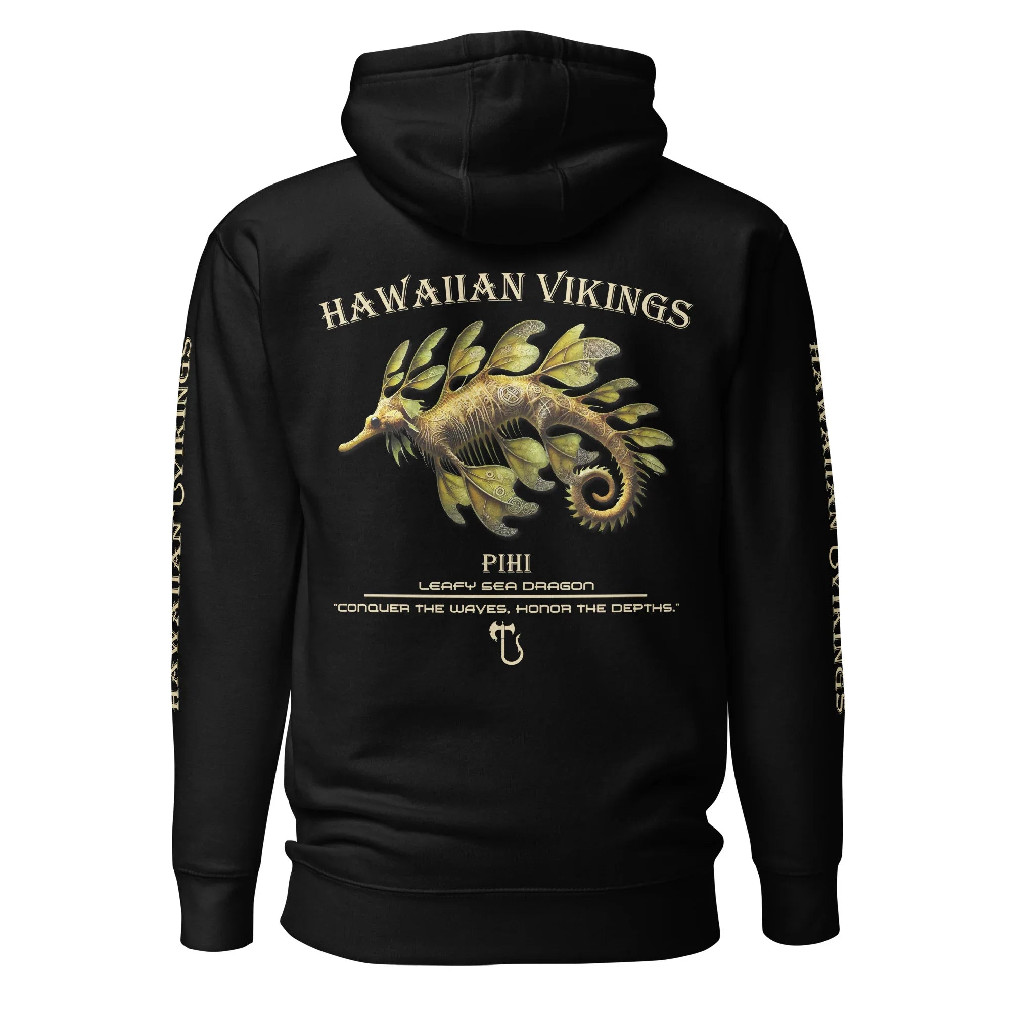 Designed for everyday comfort and versatility, this unisex hoodie features an ultra-soft fleece interior, a relaxed fit, and essential details like a cozy hood and spacious pouch pocket—perfect for layering or wearing on its own. Finished with a striking leafy sea dragon design, this hoodie brings ocean-born elegance and quiet strength to your everyday style.