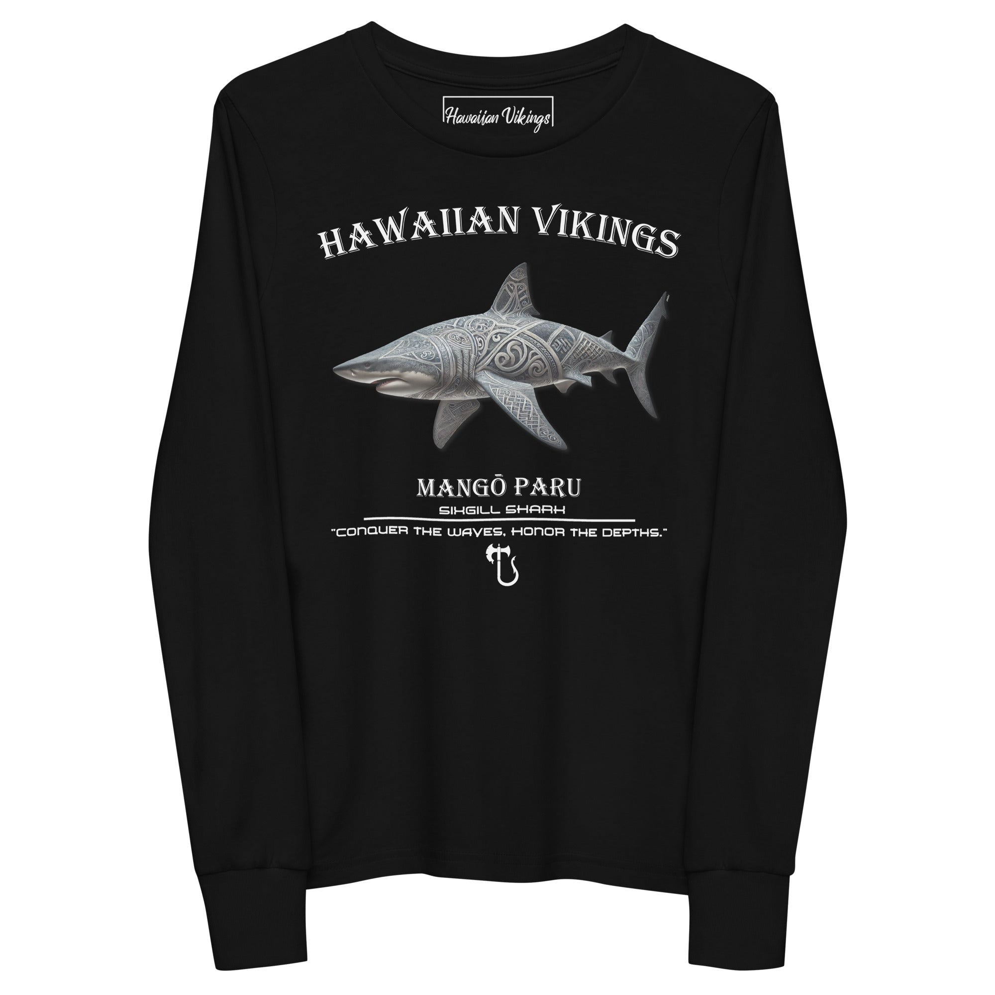 Unlike its shallower cousins, this deep-sea giant has six gill slits instead of five, giving it a distinct look and a legendary legacy. Crafted from soft, durable fabric, this long sleeve tee offers all-day comfort and protection — perfect for young explorers who are fascinated by the unknown and unafraid to venture into the depths.