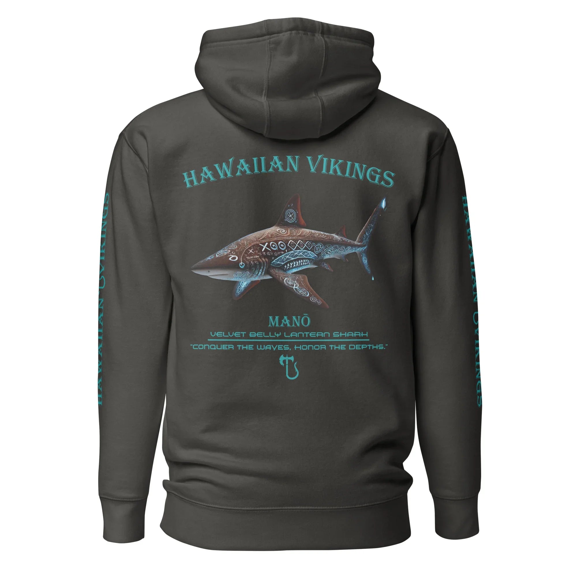 Glow beneath the surface with the Velvet Belly Lantern Shark Hoodie from the Legends of the Deep collection. One of the ocean’s few bioluminescent sharks, the velvet belly lantern shark produces its own light in the crushing darkness of the deep sea. Small yet fearless, it survives through stealth, adaptation, and the power to shine where nothing else can. A symbol of quiet resilience and self-made strength, it represents those who carry their own light into the unknown.