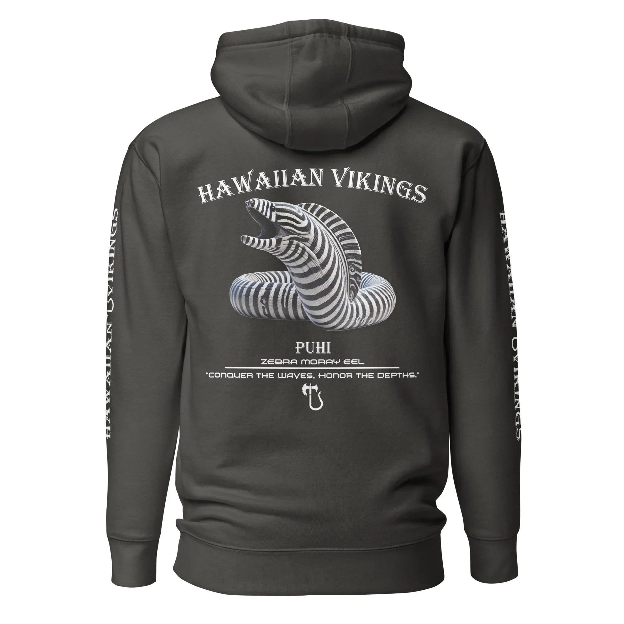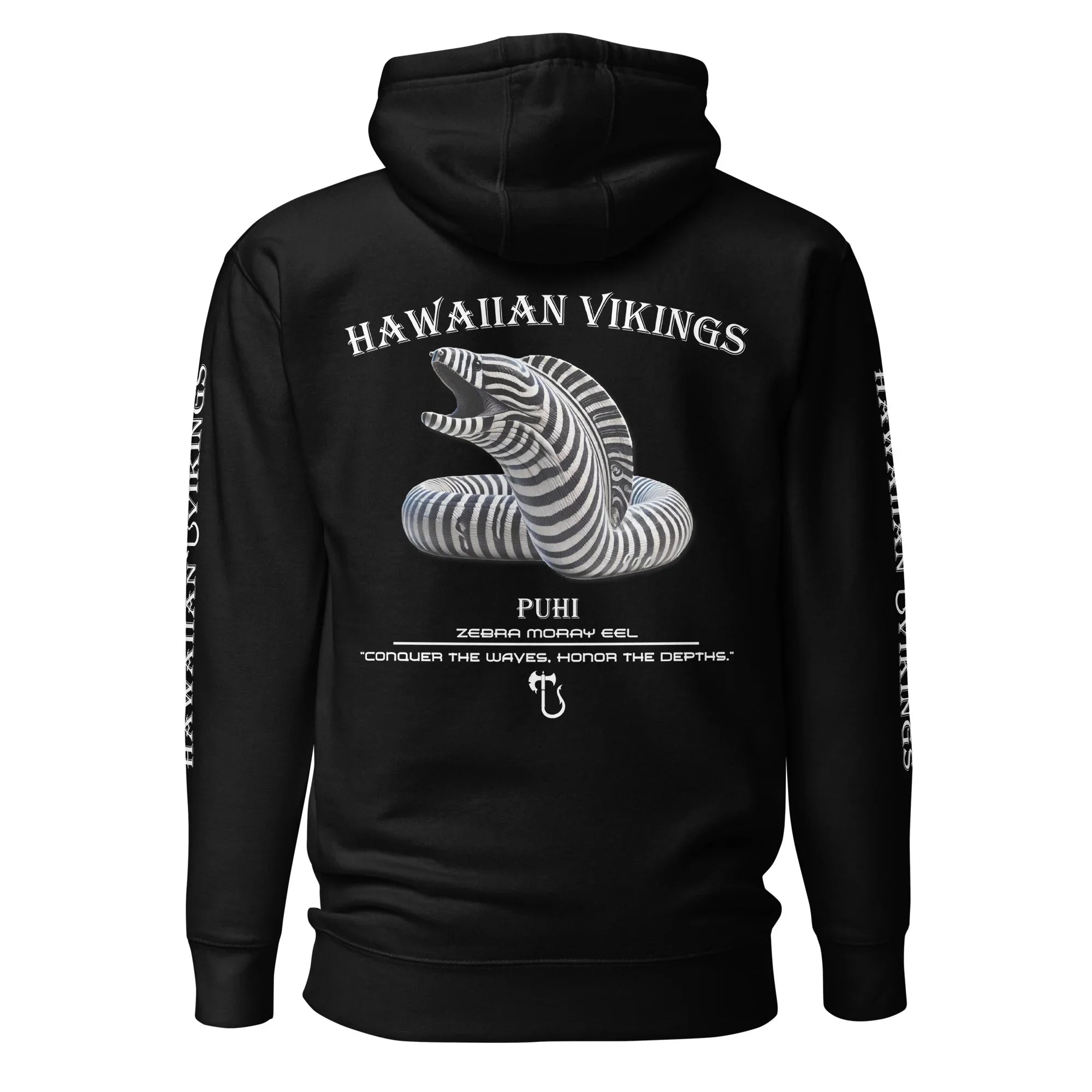 Designed for everyday comfort and durability, this unisex hoodie features an ultra-soft fleece interior, a relaxed fit, and essential details like a cozy hood and spacious pouch pocket. Finished with a striking zebra moray eel design, it brings reef-level authority and understated dominance to your daily rotation.