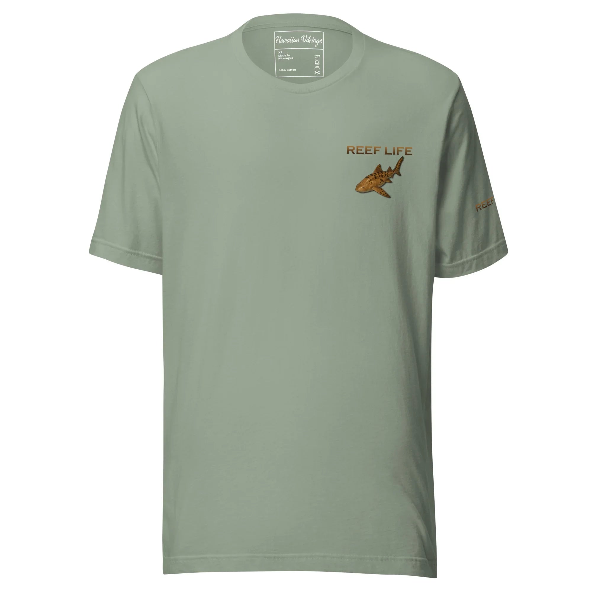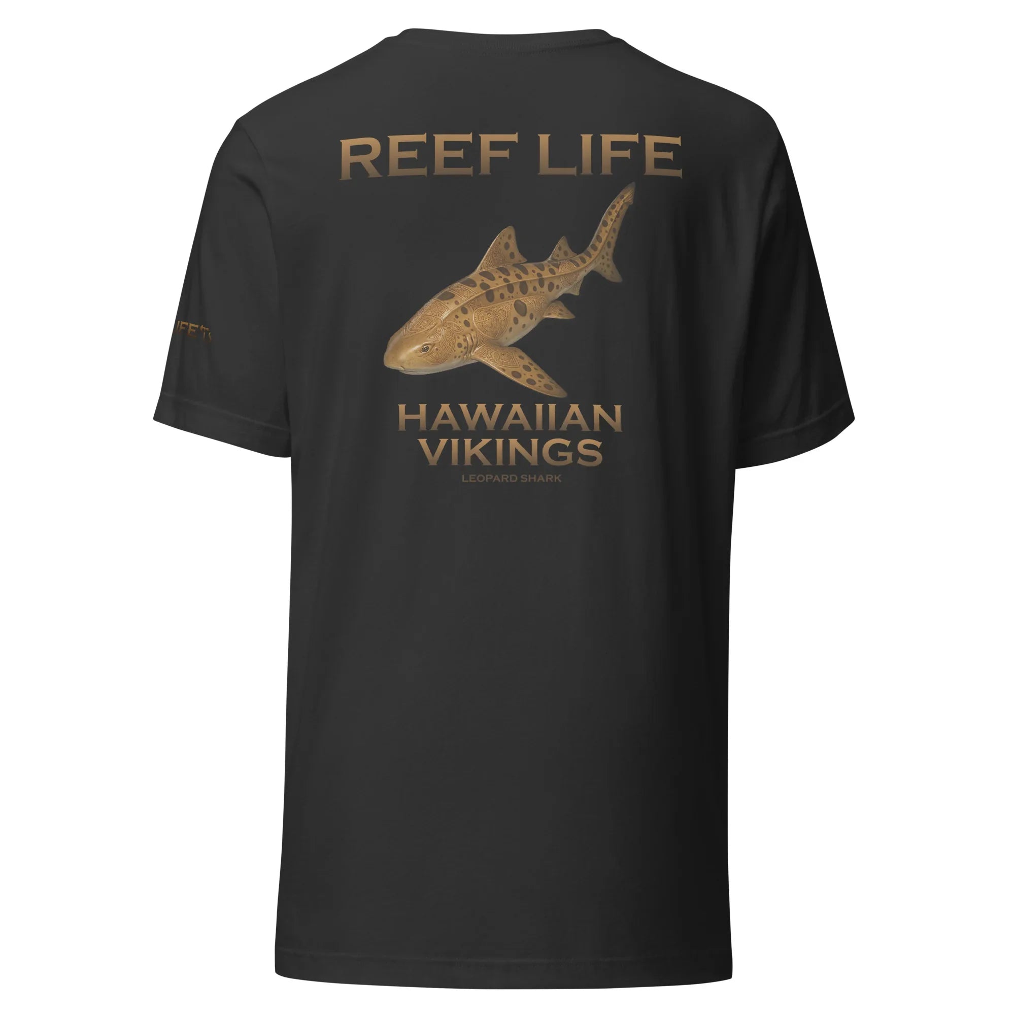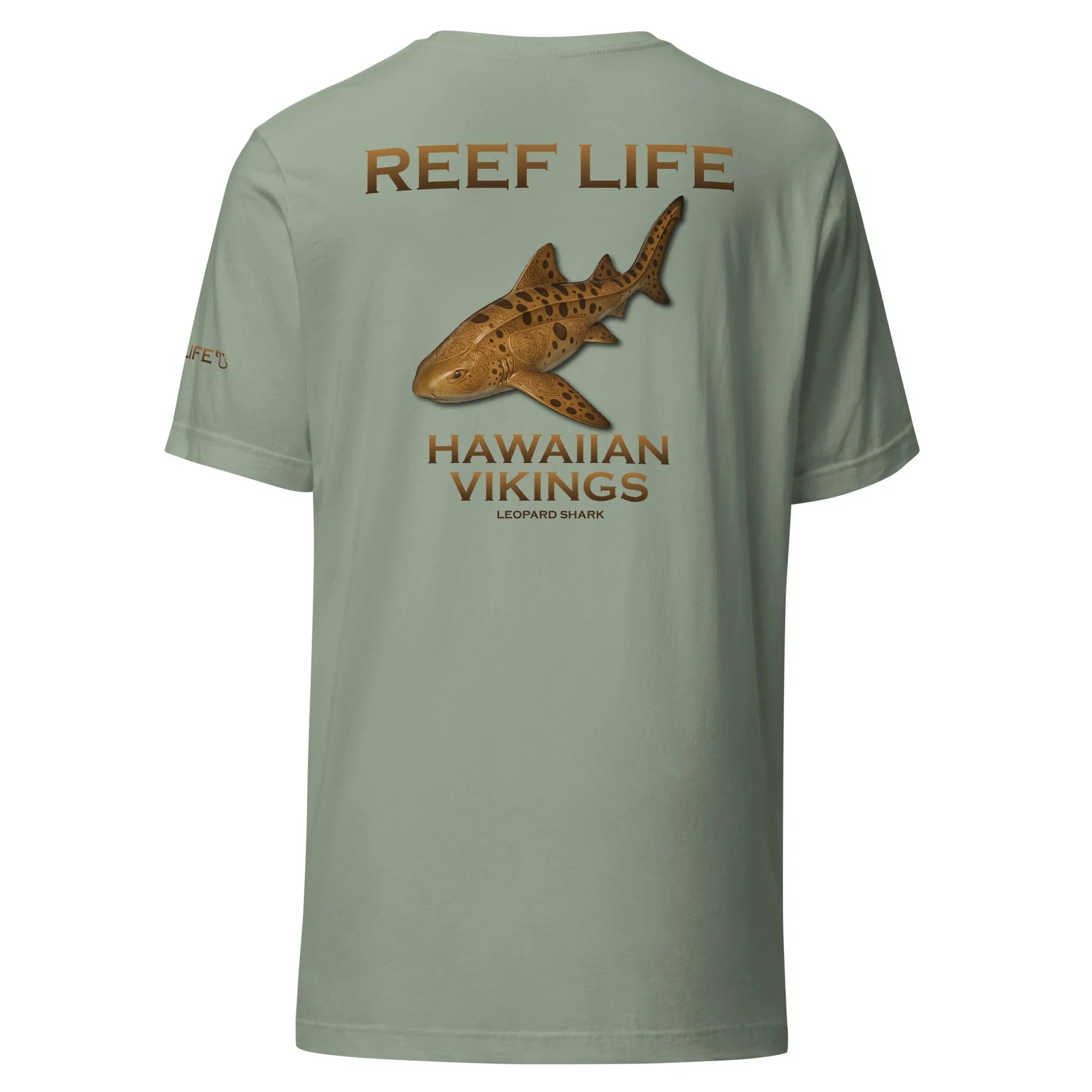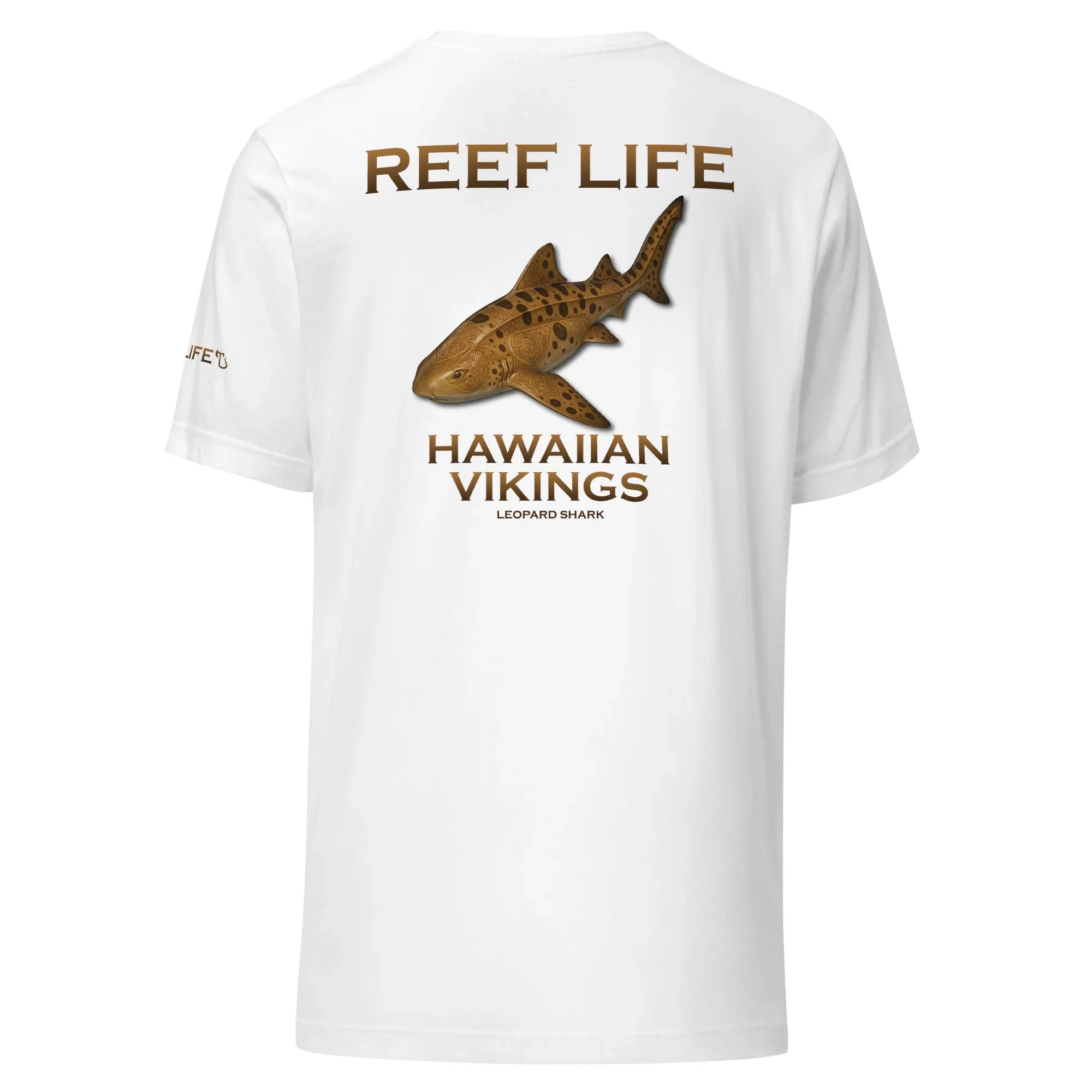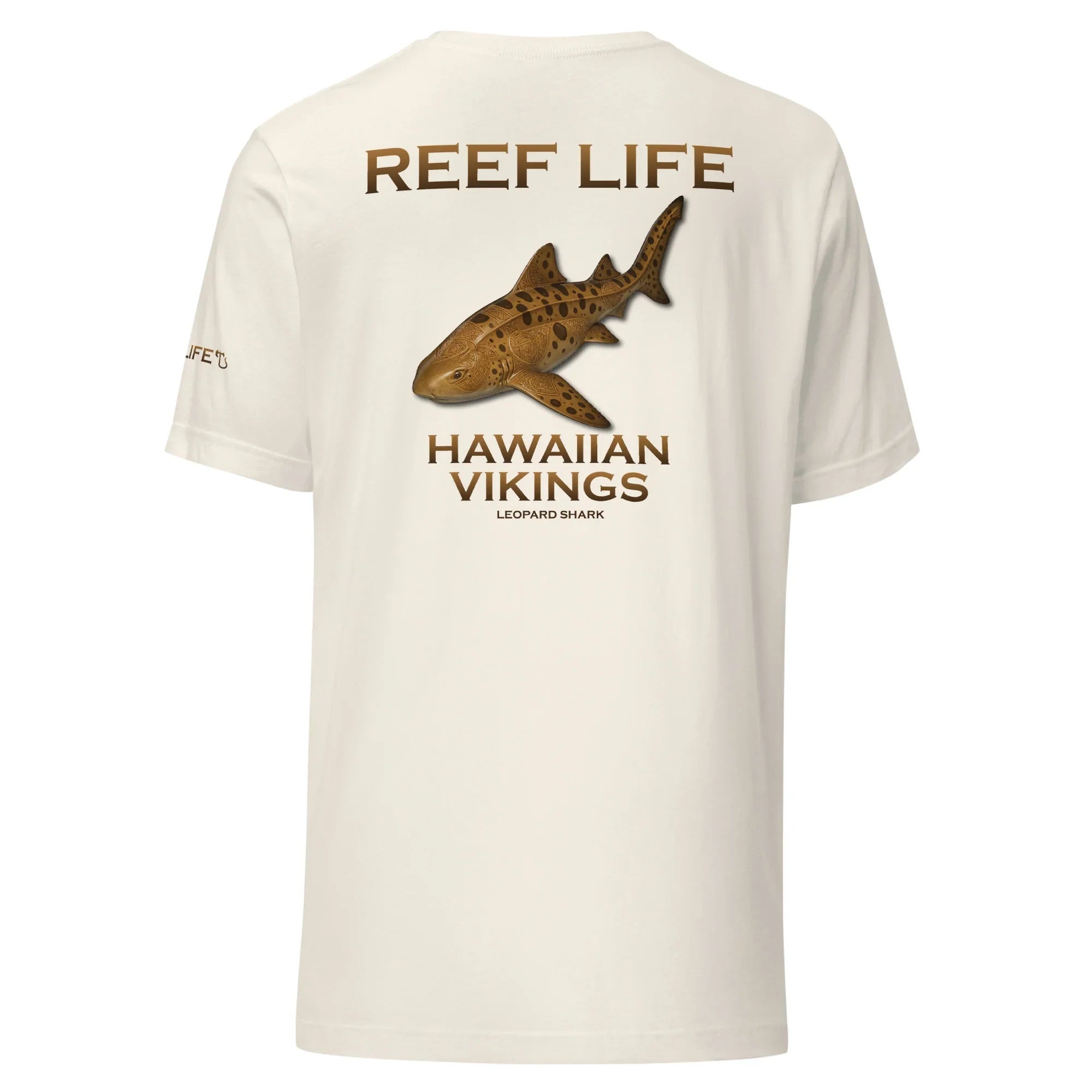 Graceful yet powerful, this tee from the Reef Life Collection features the striking Leopard Shark, known for its distinctive pattern and calm presence along coastal reefs. The artwork blends its natural markings with engraved Hawaiian motifs and Viking-inspired carvings, seamlessly integrated into the design for a bold cultural fusion.