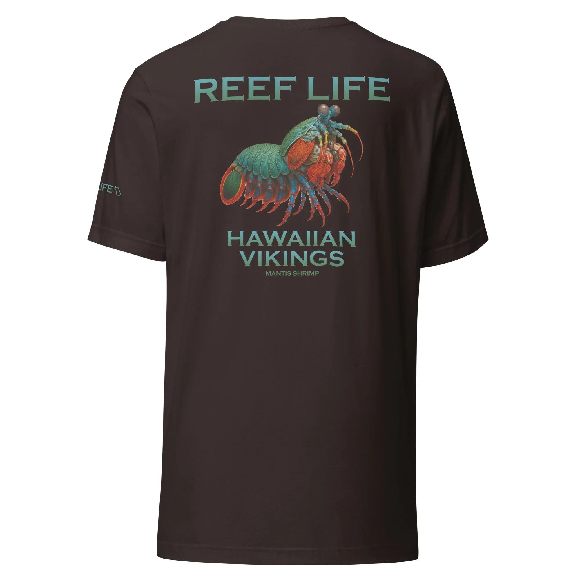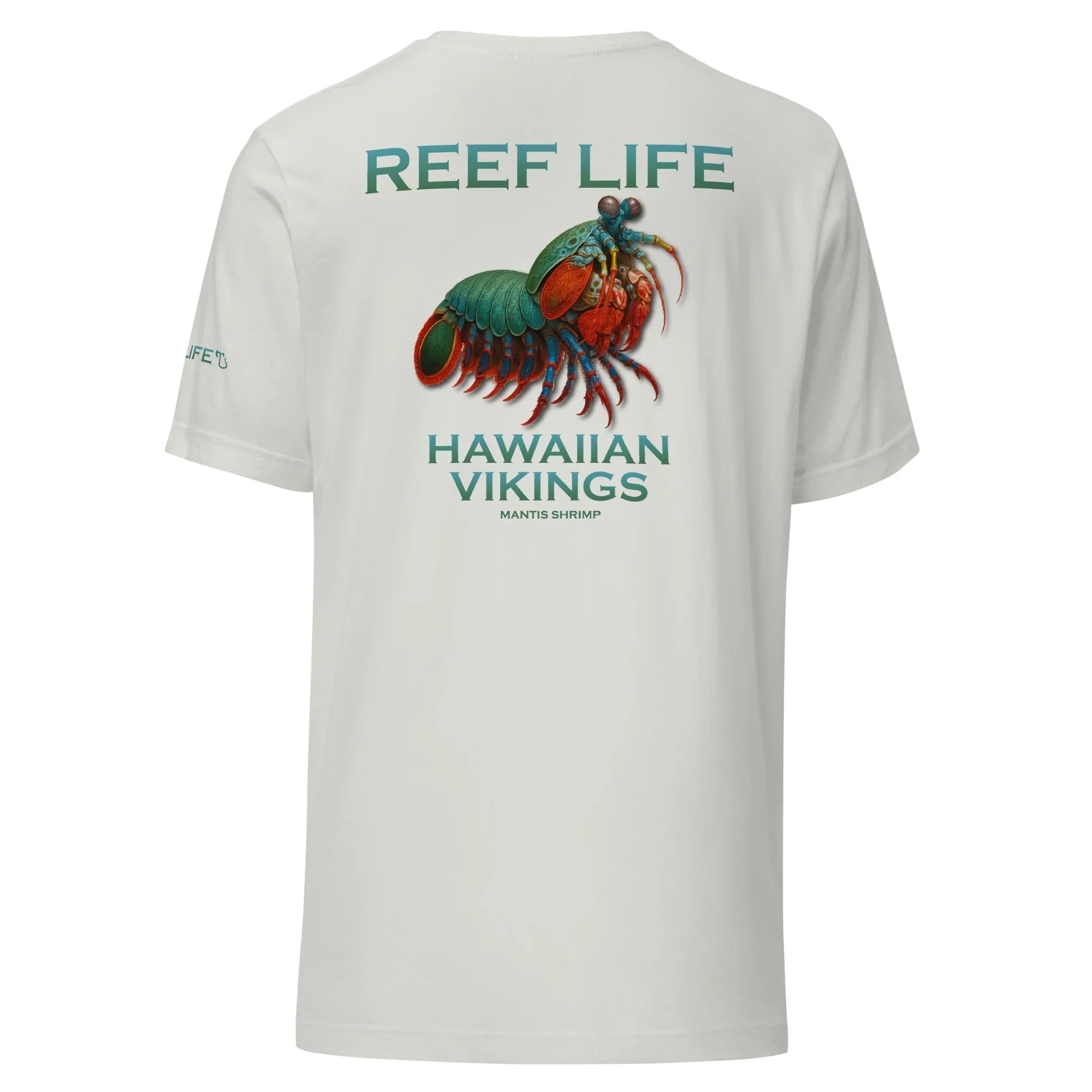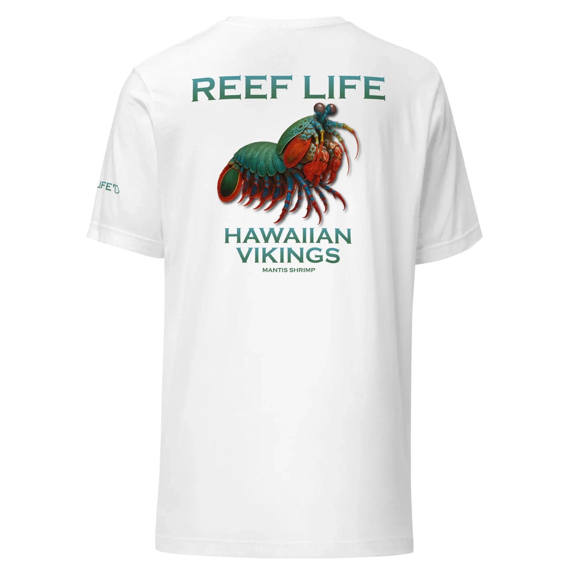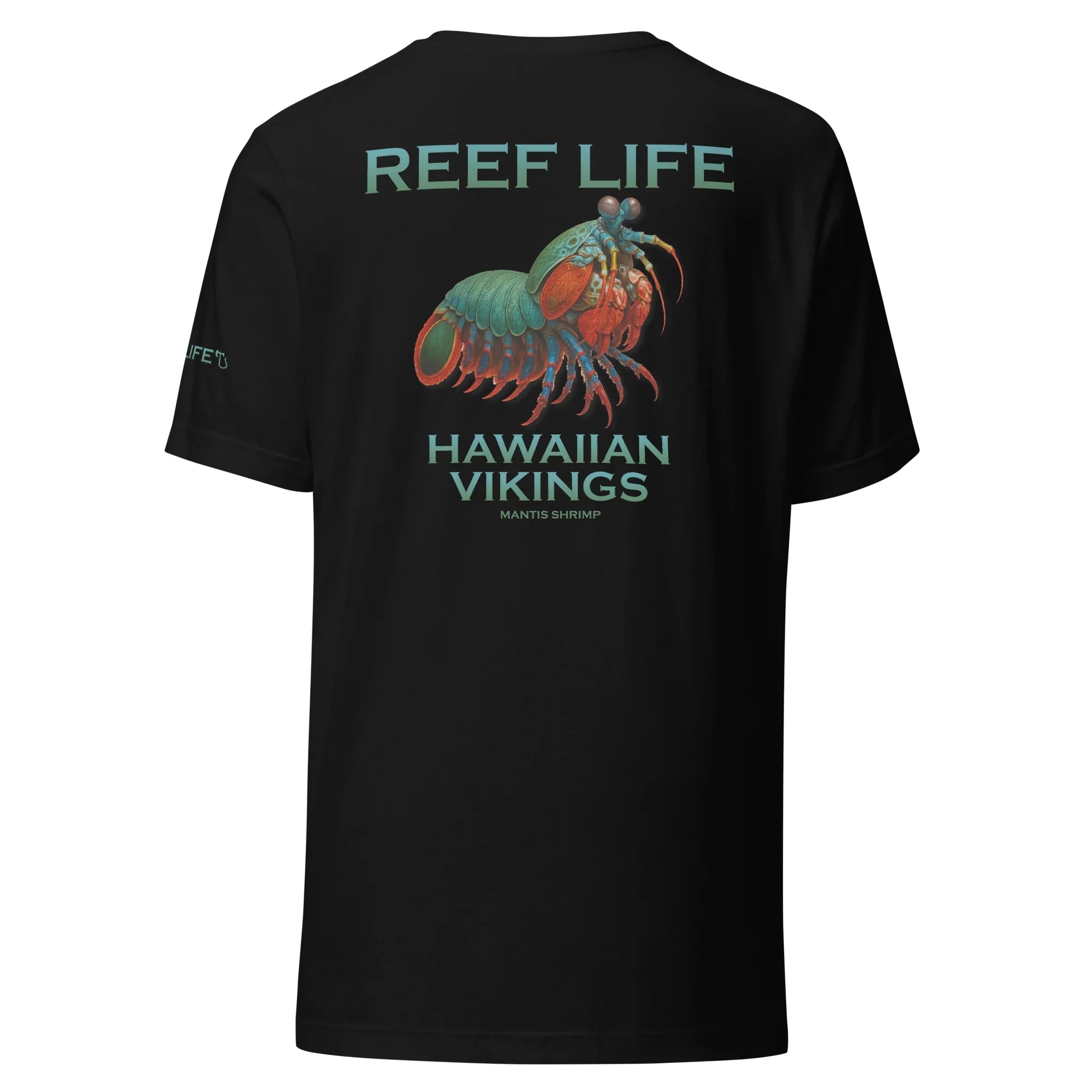 Vibrant, powerful, and legendary beneath the surface, this striking tee from the Reef Life Collection features the Mantis Shrimp, one of the ocean’s most fascinating and formidable creatures. Known for its incredible color spectrum and lightning-fast strength, this design captures its intensity while seamlessly integrating engraved Hawaiian motifs and Viking-inspired carvings into its natural form.