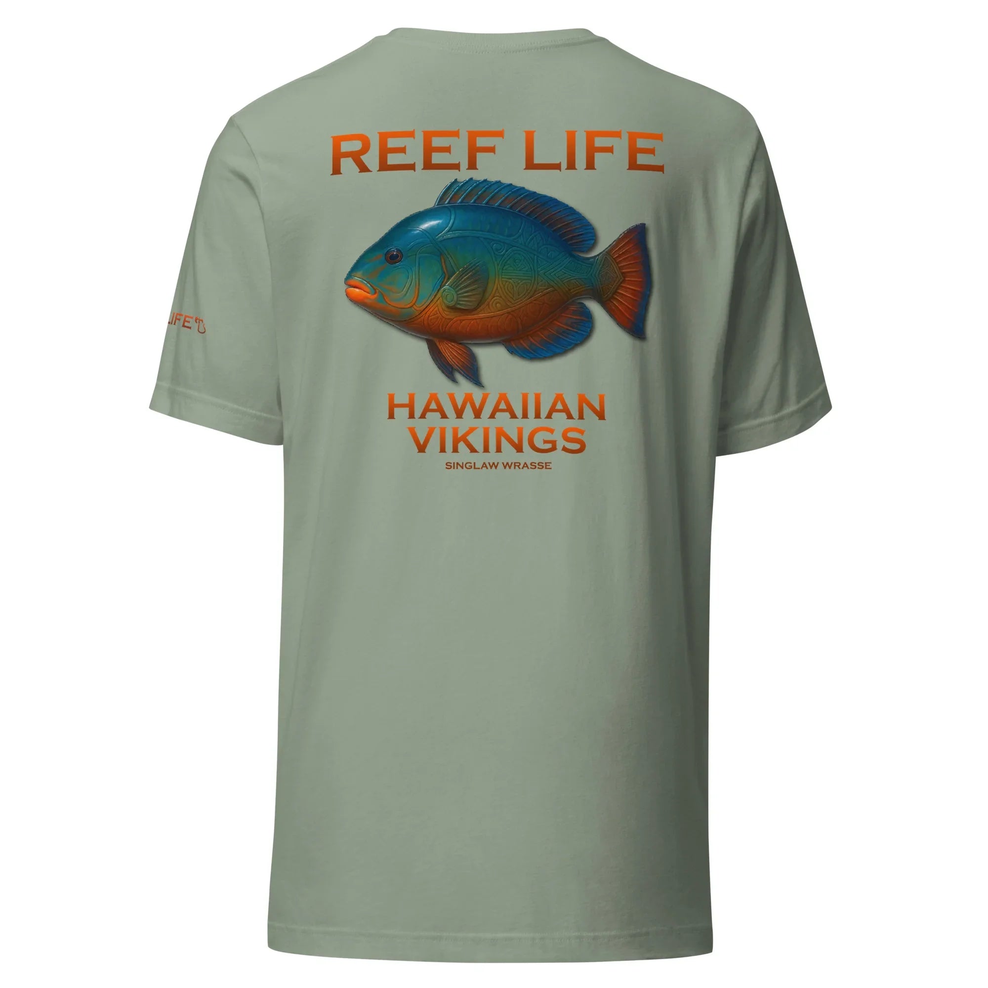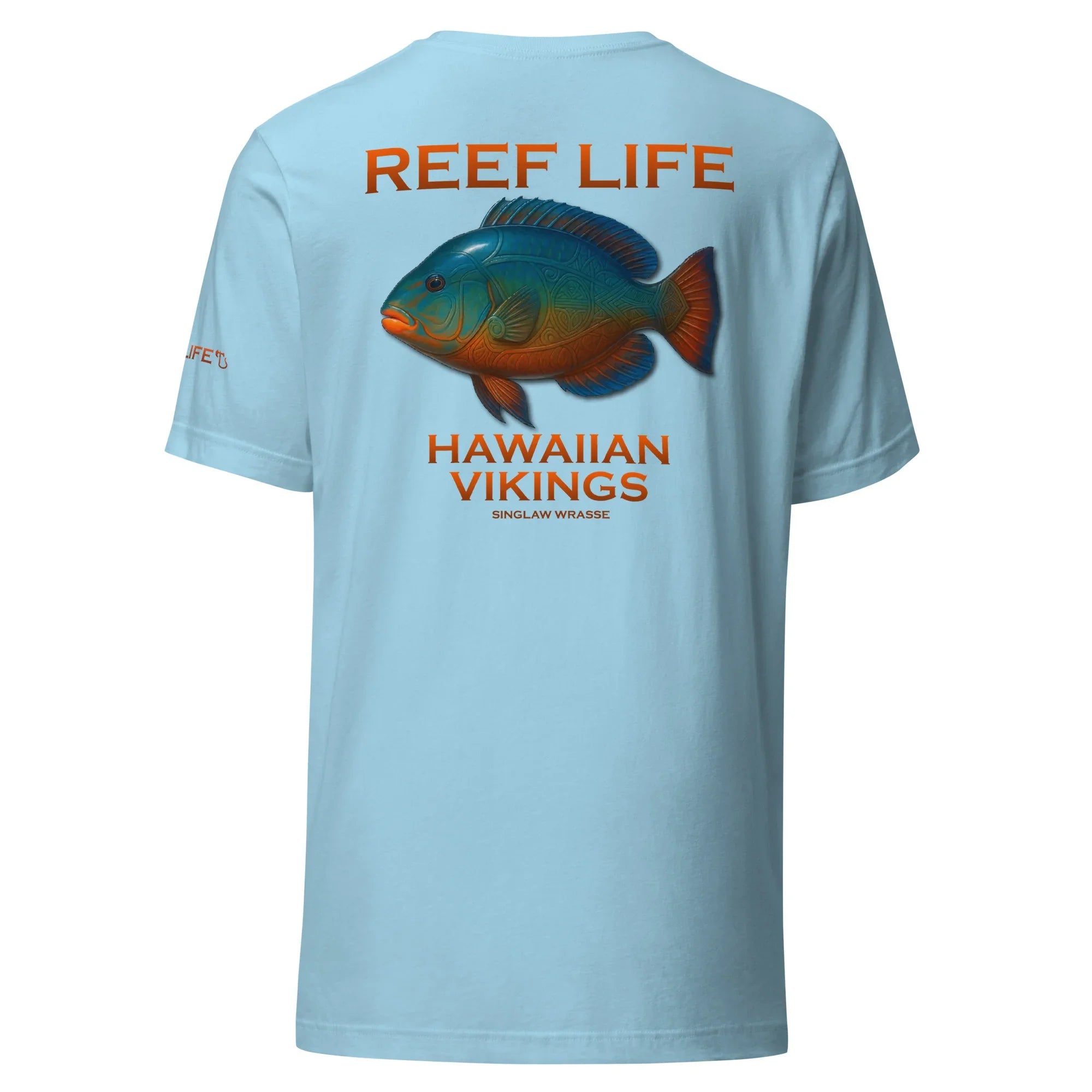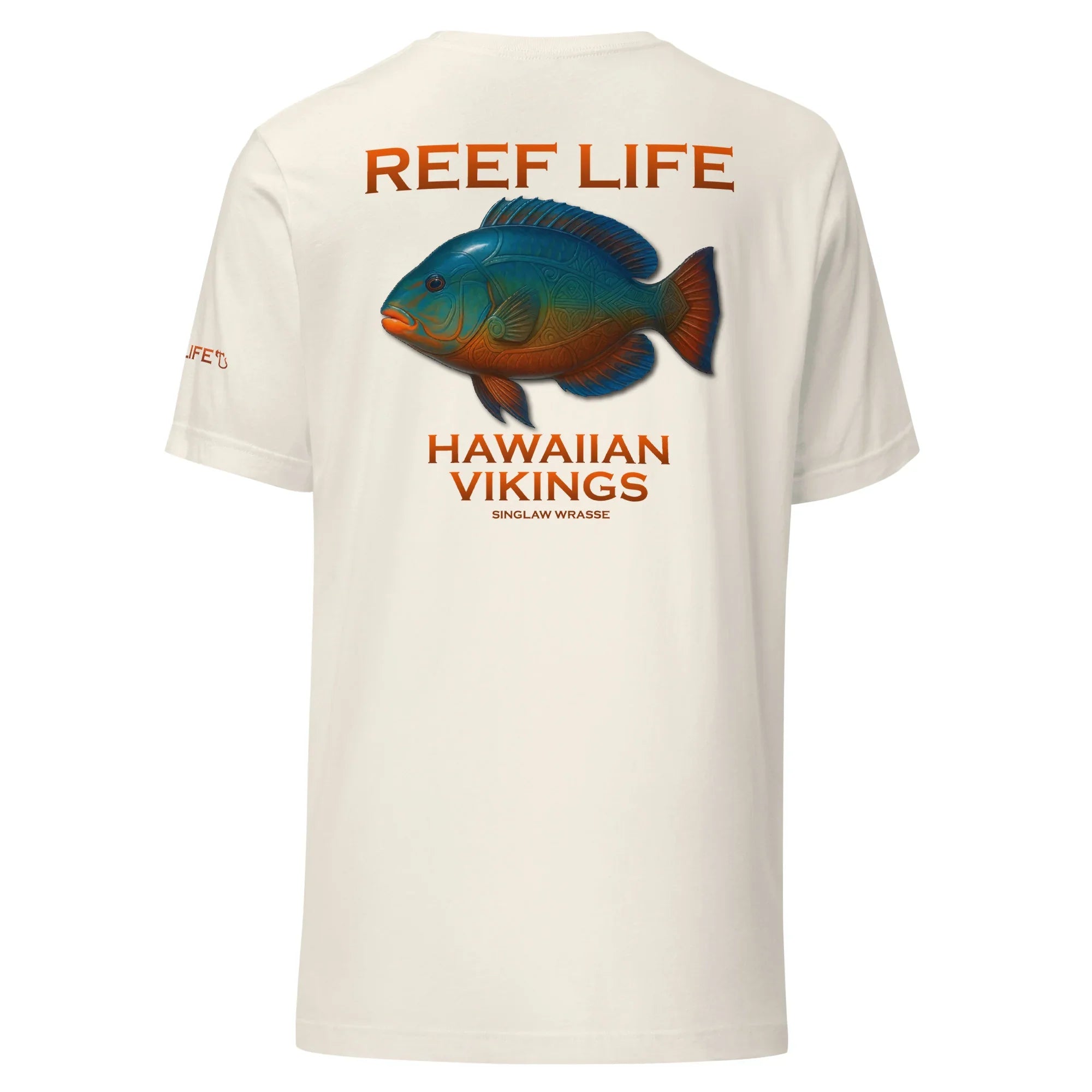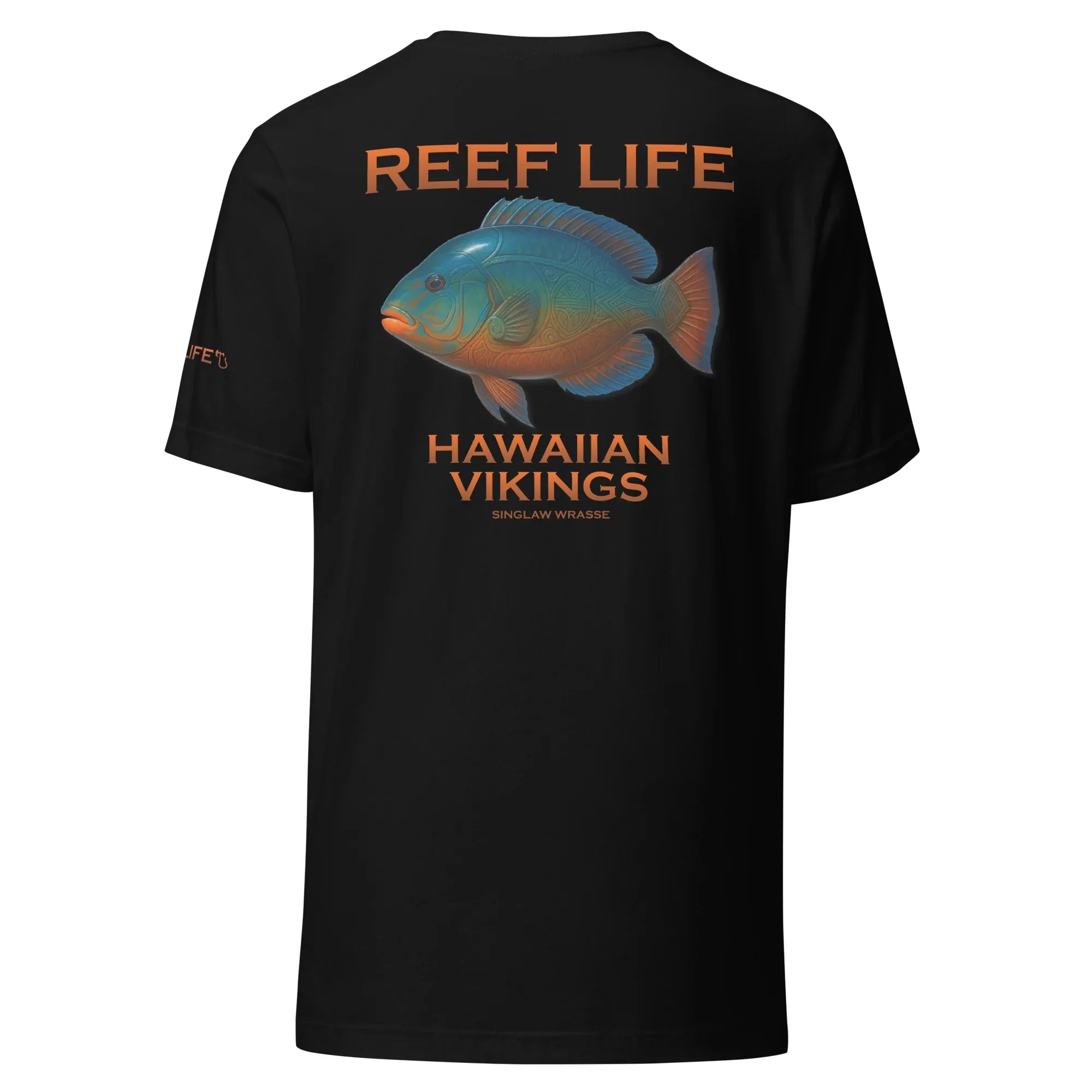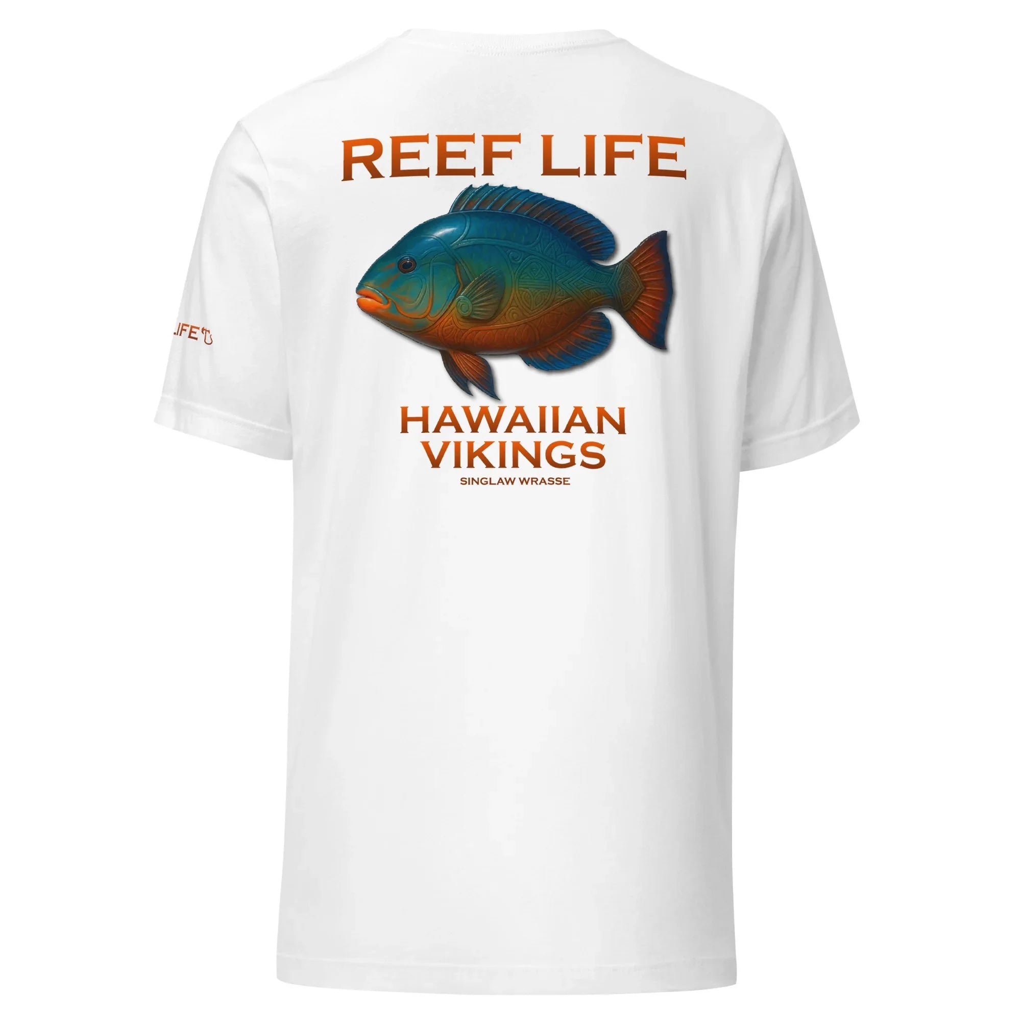 Bold, vibrant, and full of reef character, this standout tee from the Reef Life Collection features the striking Singlaw Wrasse, a fish celebrated for its rich coloration and dynamic presence among coral reefs. The design captures its natural beauty while seamlessly integrating engraved Hawaiian motifs and Viking-inspired linework directly into its form.