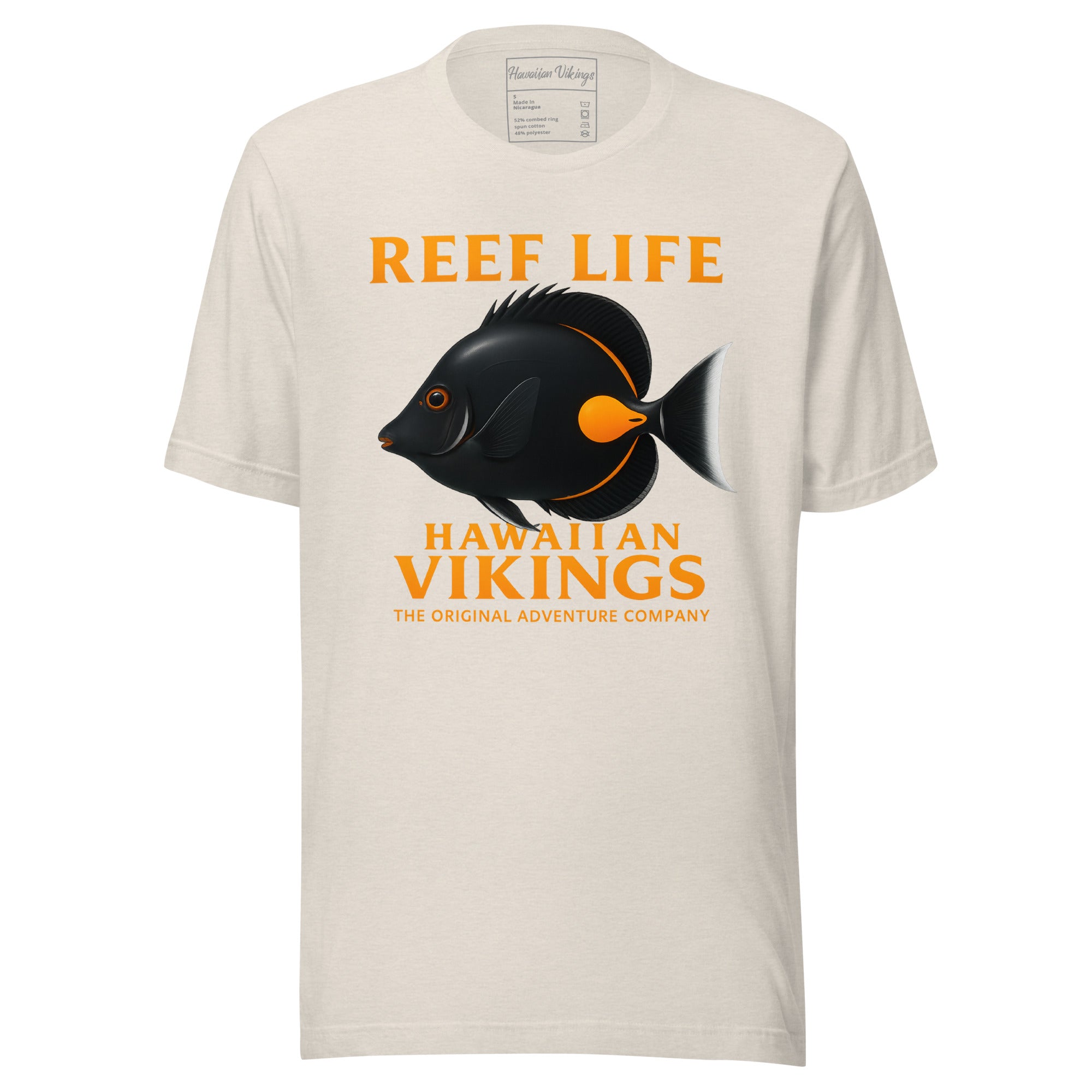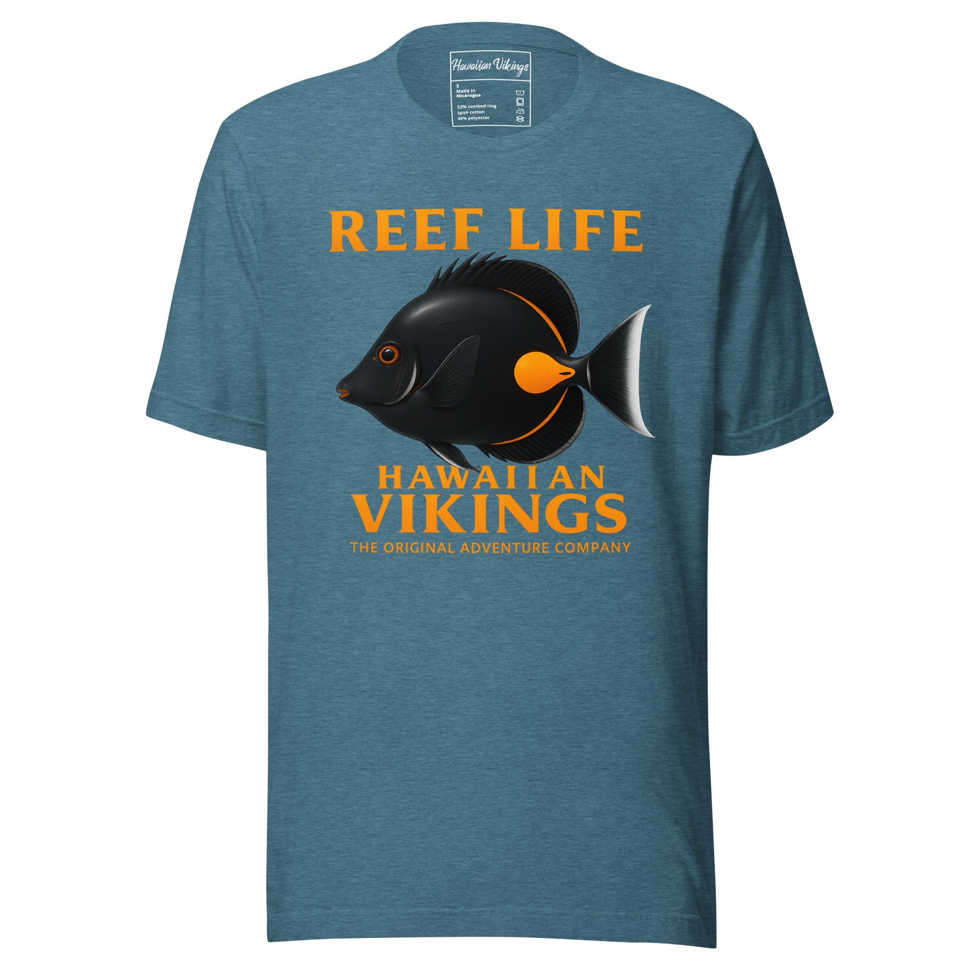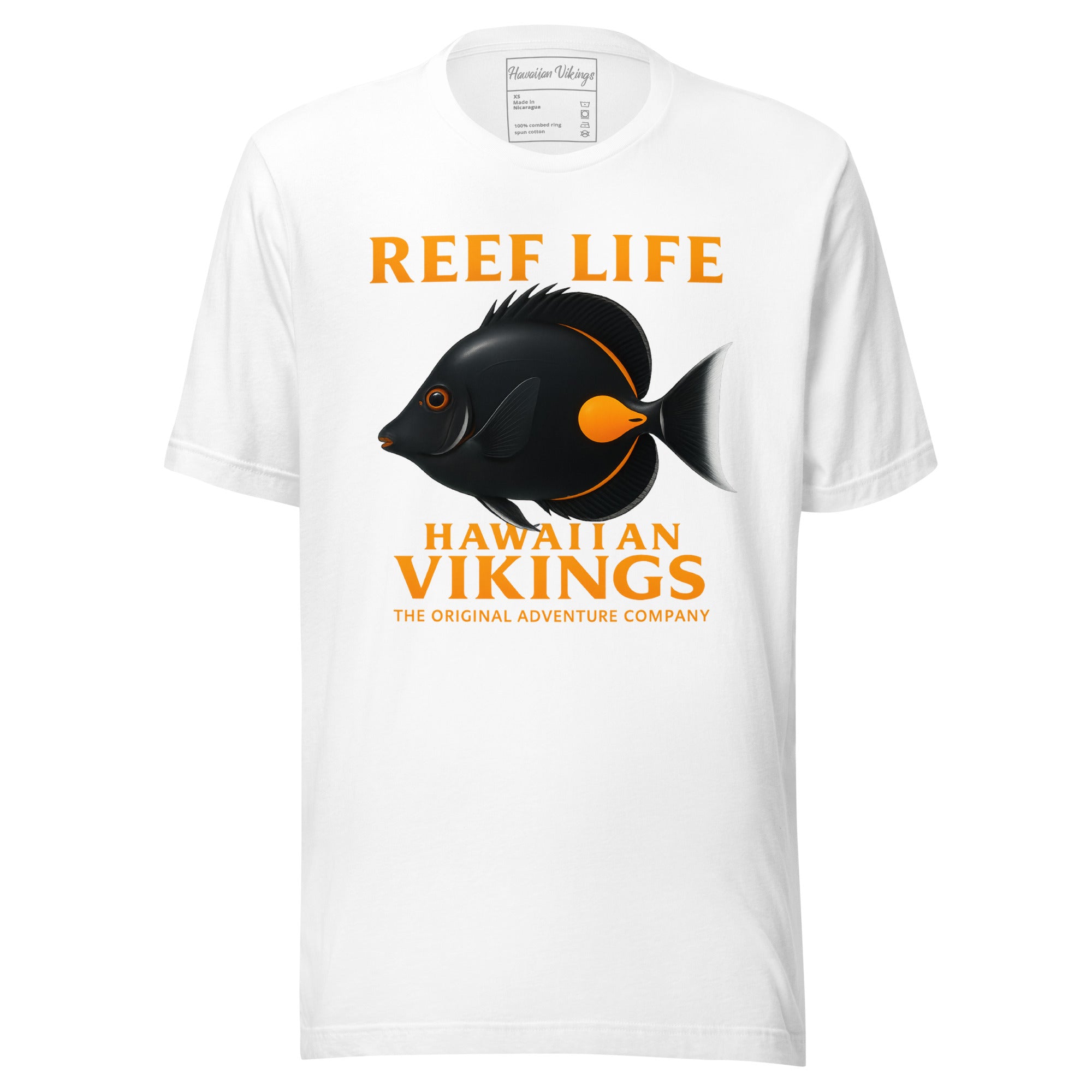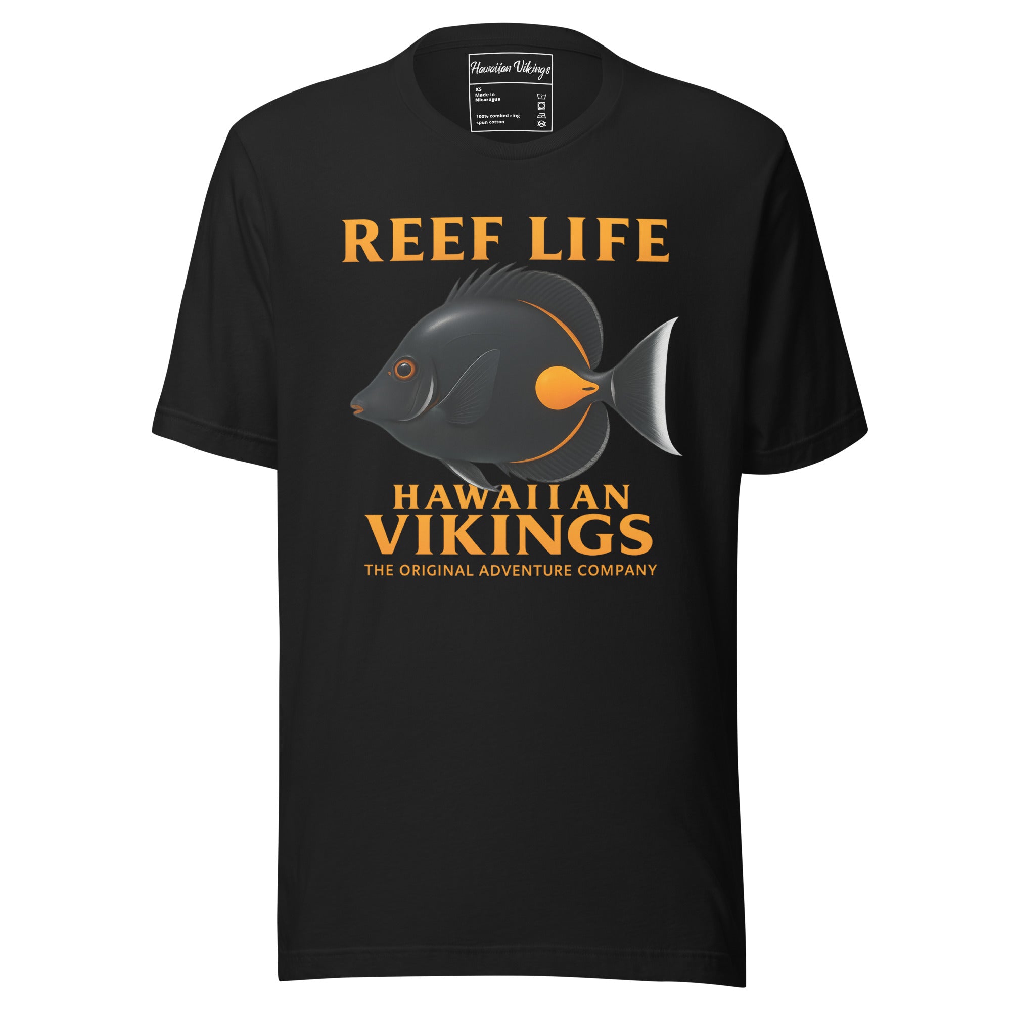 Dive into the wild beauty of the reef with the Achilles Tang Unisex T-Shirt from Hawaiian Vikings’ Reef Life Collection. This design celebrates one of Hawaiʻi’s most striking reef guardians — the Achilles Tang — a symbol of resilience, balance, and the warrior spirit of the ocean. Its deep black body and brilliant orange markings echo the strength of both Hawaiian seafarers and Viking explorers who navigated by courage and respect for nature.