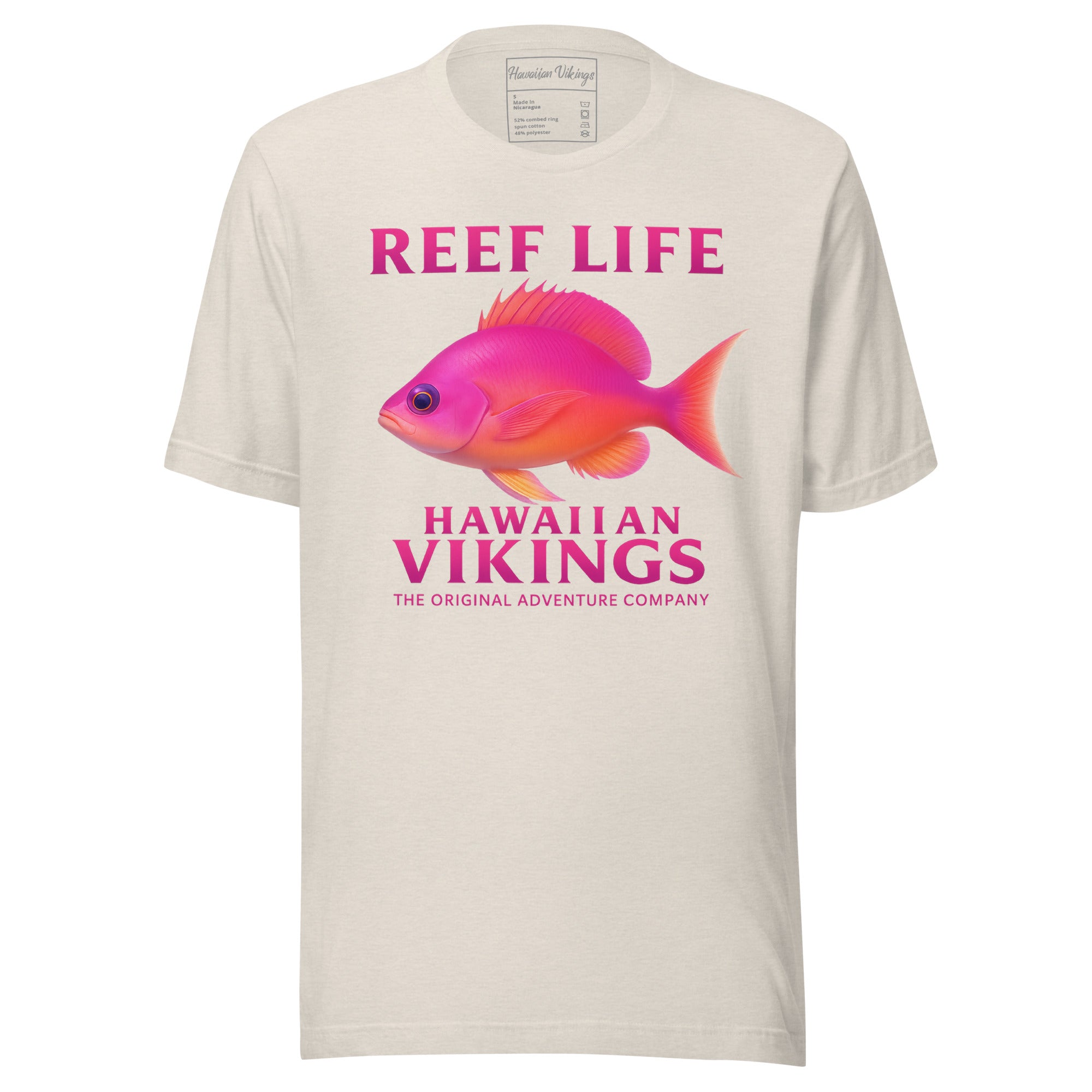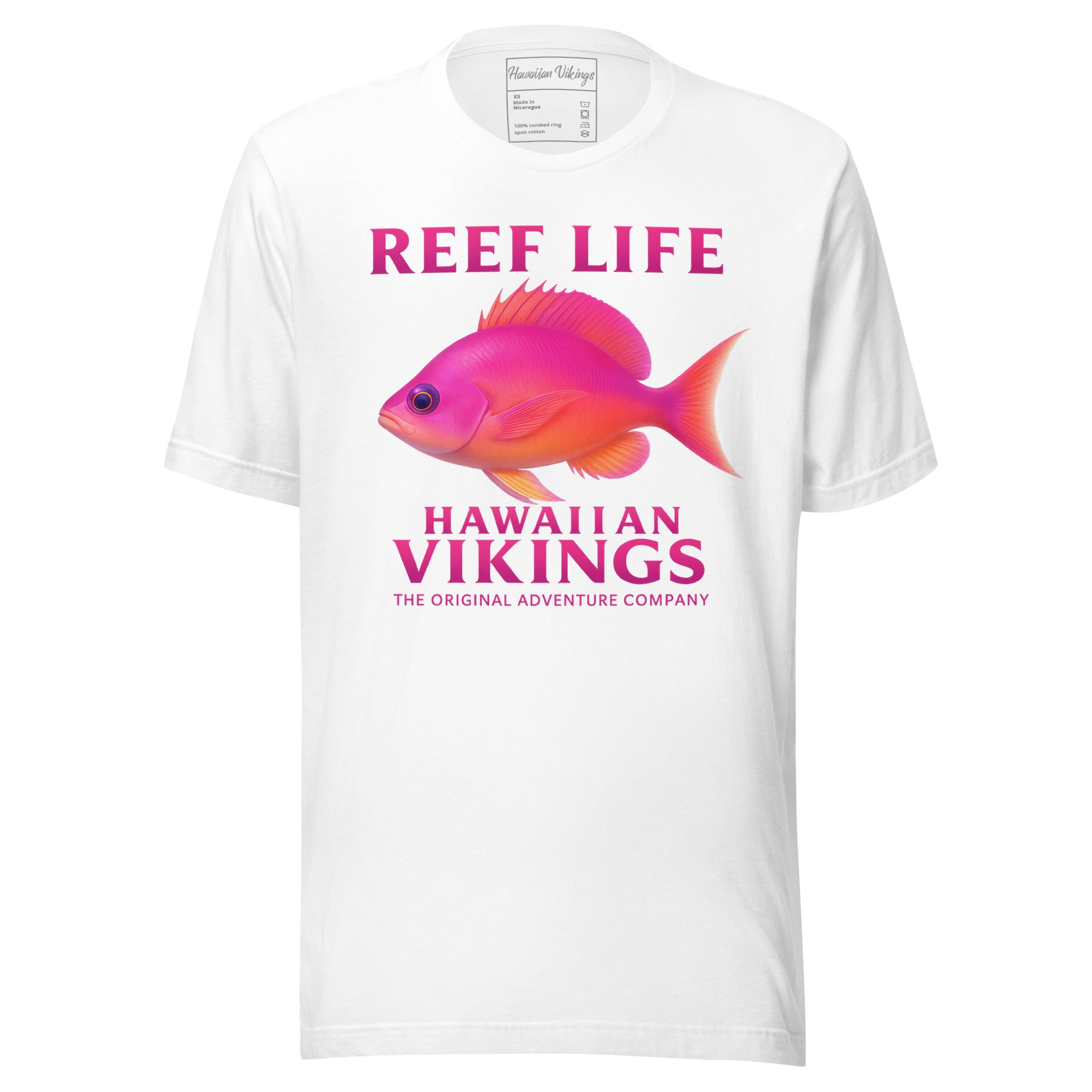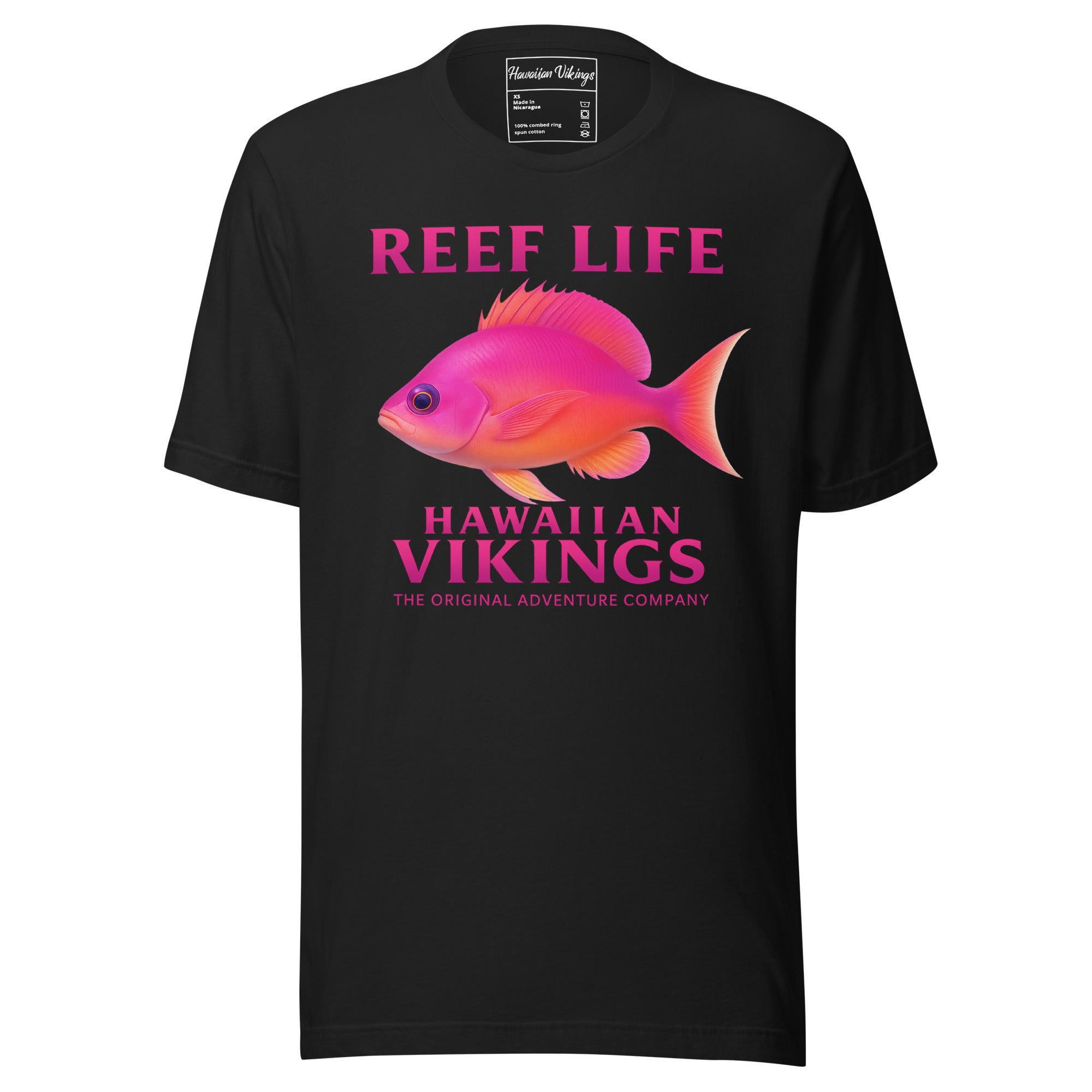 Bright, bold, and alive with spirit — the Anthias Unisex T-Shirt from Hawaiian Vikings’ Reef Life Collection captures the vibrant energy of one of the reef’s most dazzling fish. Known for its brilliant pinks, oranges, and yellows, the Anthias symbolizes unity and the delicate balance that keeps ocean life thriving. This design celebrates that harmony — where color meets courage, and nature’s beauty meets human adventure.