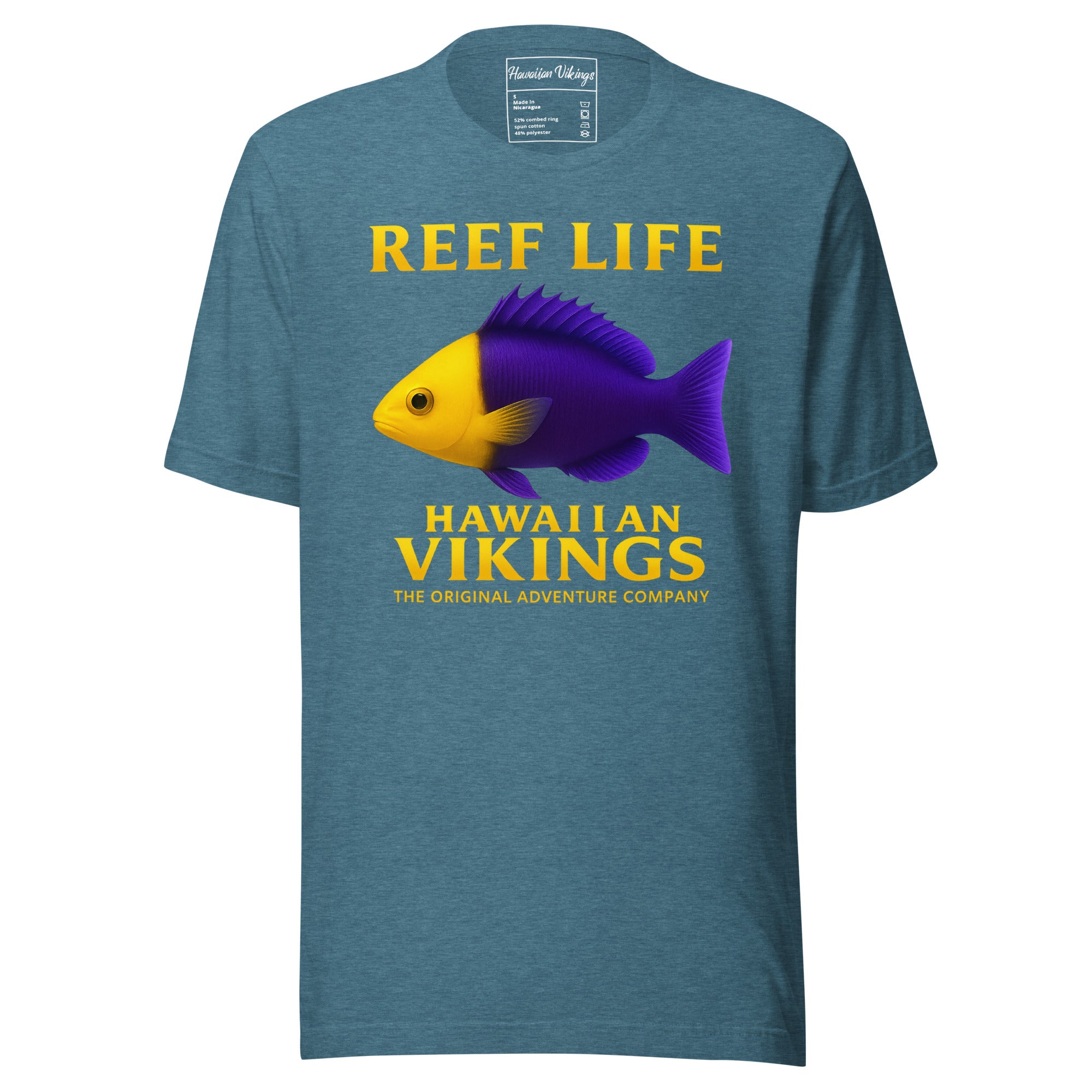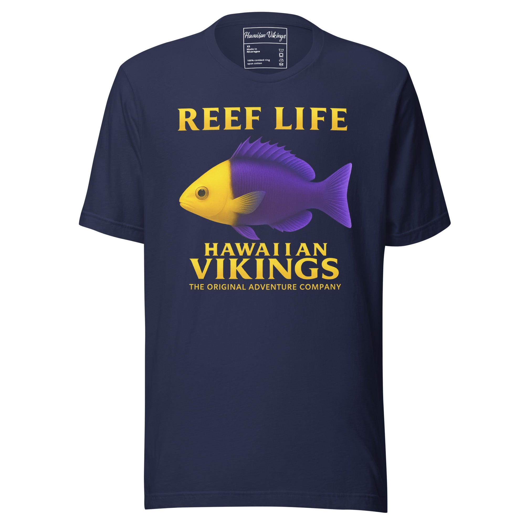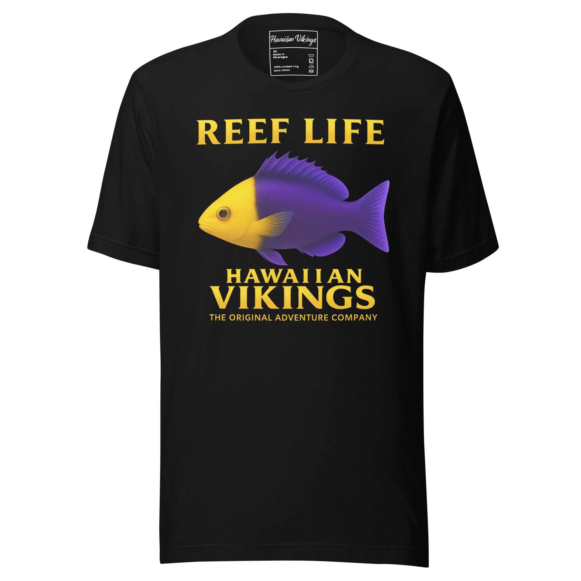 Vibrant, bold, and full of personality — the Bicolor Dottyback Unisex T-Shirt from Hawaiian Vikings’ Reef Life Collection celebrates the fiery spirit of one of the reef’s most colorful residents. With its brilliant split of purple and yellow, the Bicolor Dottyback is a symbol of contrast and balance — a small but fearless fish that defends its home with unshakable courage. This design captures that fearless energy — radiant, confident, and alive with the pulse of the reef.