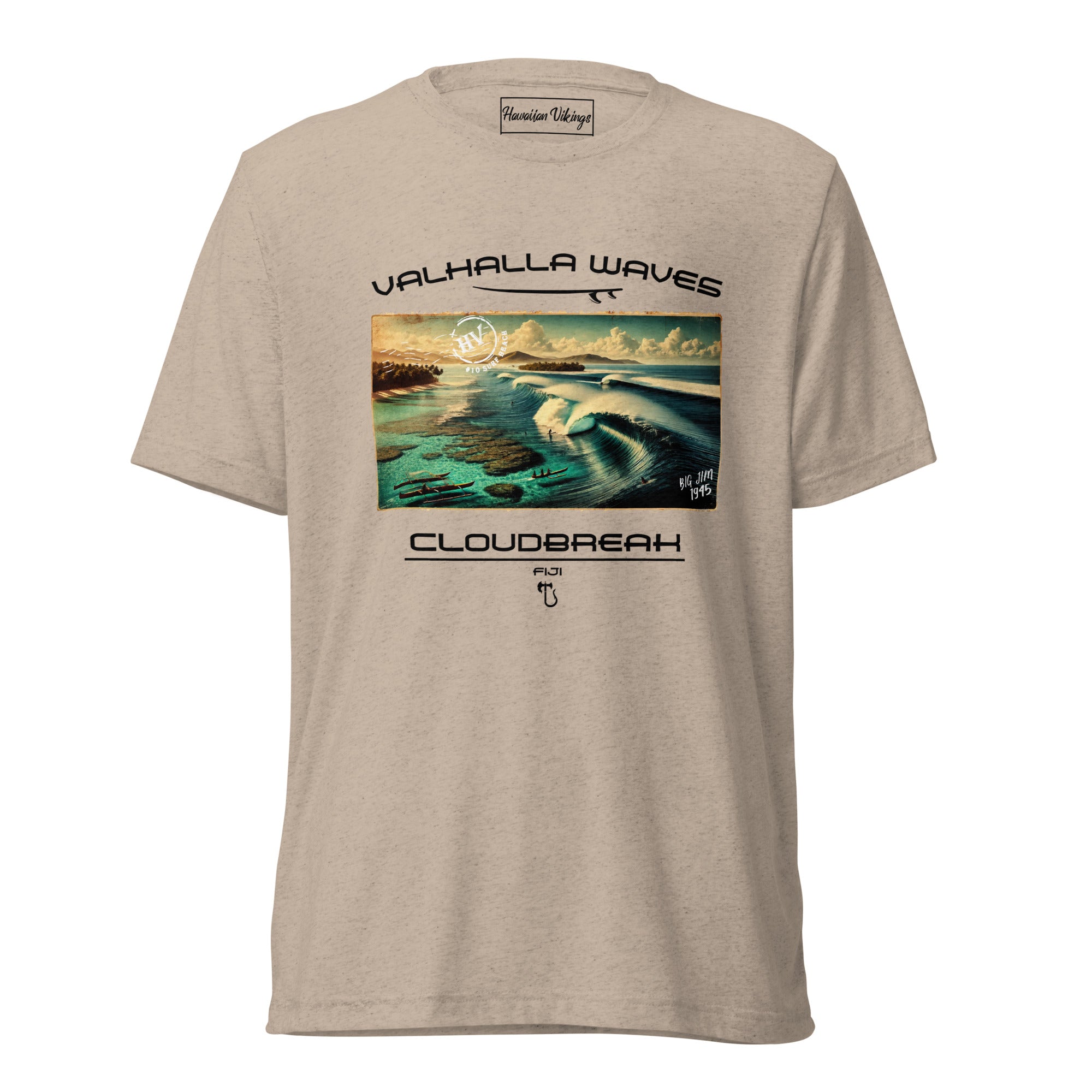 Experience the power and beauty of Fiji’s legendary reef break with the "Cloudbreak Beach Vintage Postcard" t-shirt from the Valhalla Waves collection by Hawaiian Vikings. This design captures the essence of Cloudbreak’s world-renowned waves with a retro postcard aesthetic, blending vibrant tropical imagery with Hawaiian and Viking-inspired artistry. A tribute to one of the most challenging and rewarding surf spots on the planet, this tee is perfect for surfers and adventurers drawn to the thrill of riding the ocean’s mightiest swells.