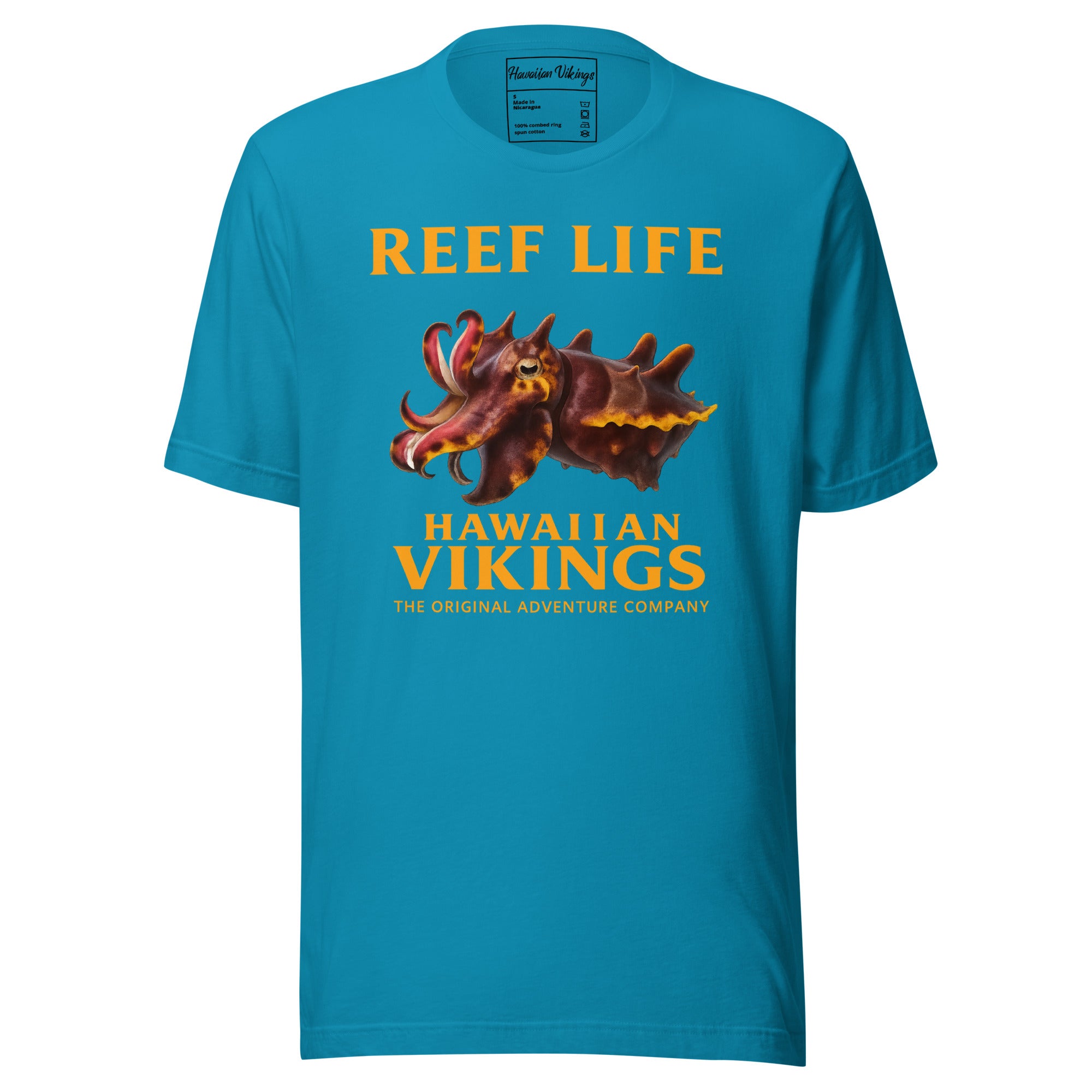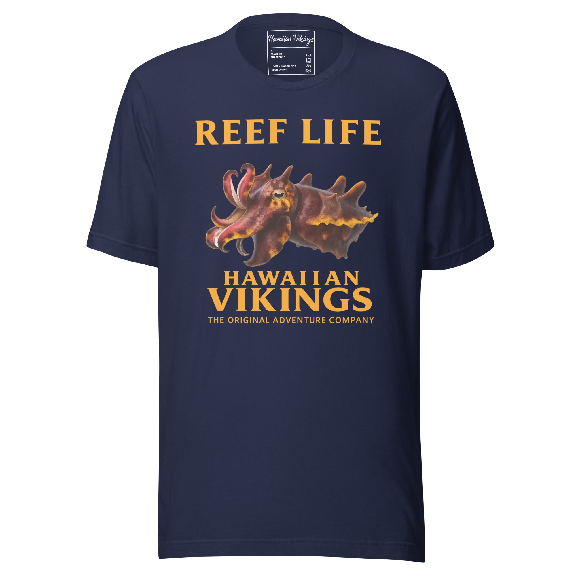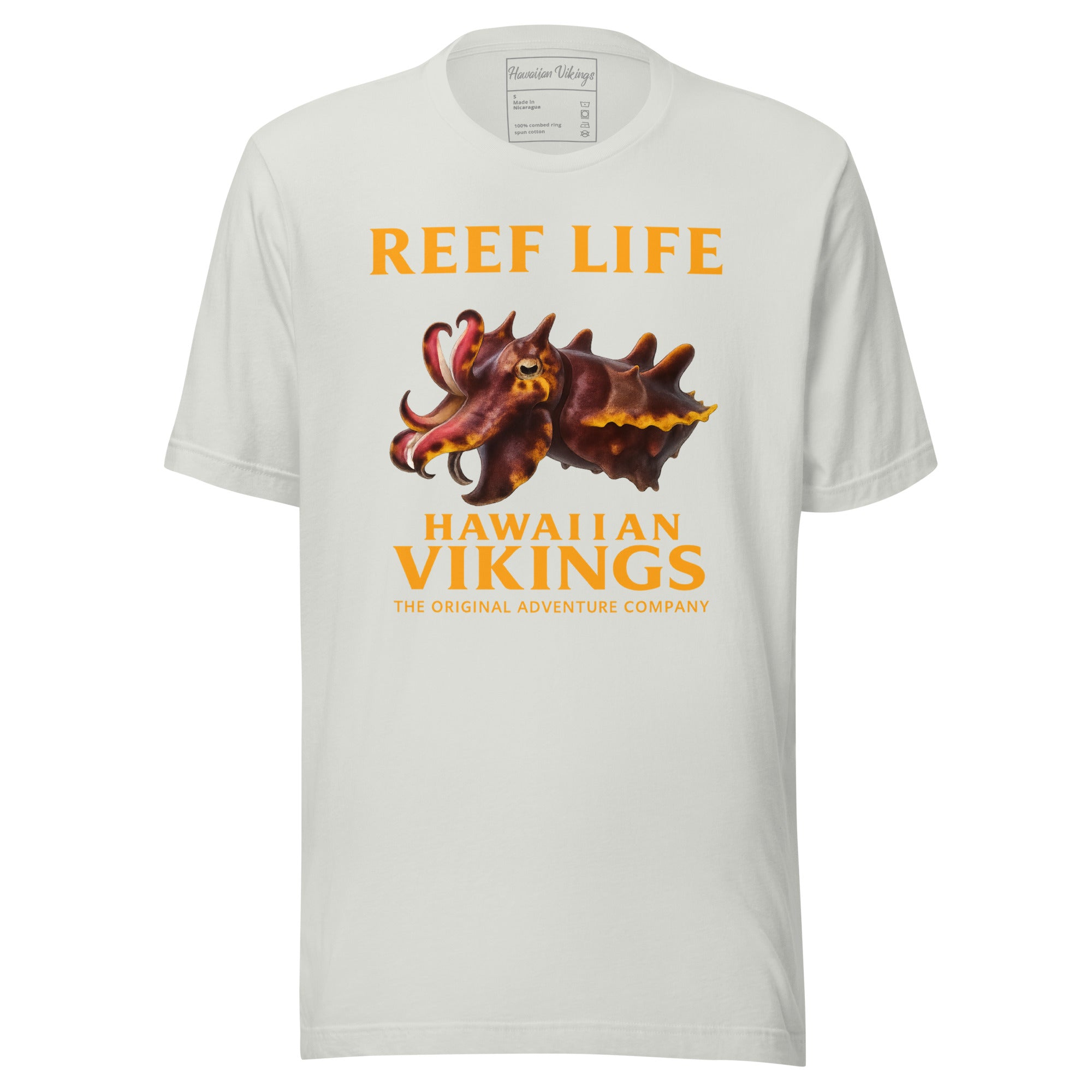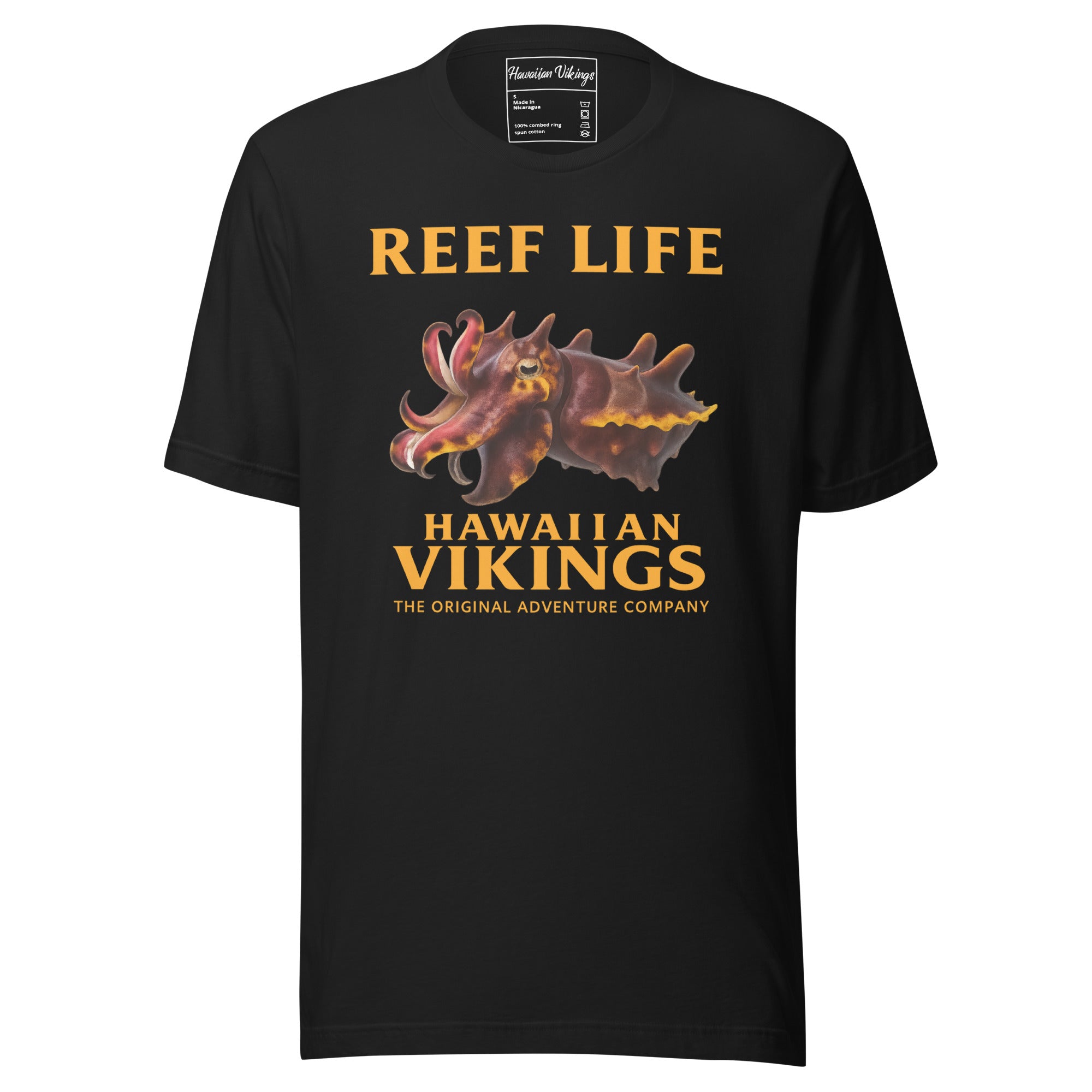 Vivid, daring, and mesmerizing — the Flamboyant Cuttlefish Unisex T-Shirt from Hawaiian Vikings’ Reef Life Collection celebrates one of the ocean’s most spectacular shapeshifters. With its dazzling display of magenta, gold, and deep violet waves rippling across its body, the Flamboyant Cuttlefish embodies transformation, creativity, and the fearless beauty of the deep. Small but powerful, this master of color and camouflage reminds us that self-expression is one of nature’s greatest forms of art.