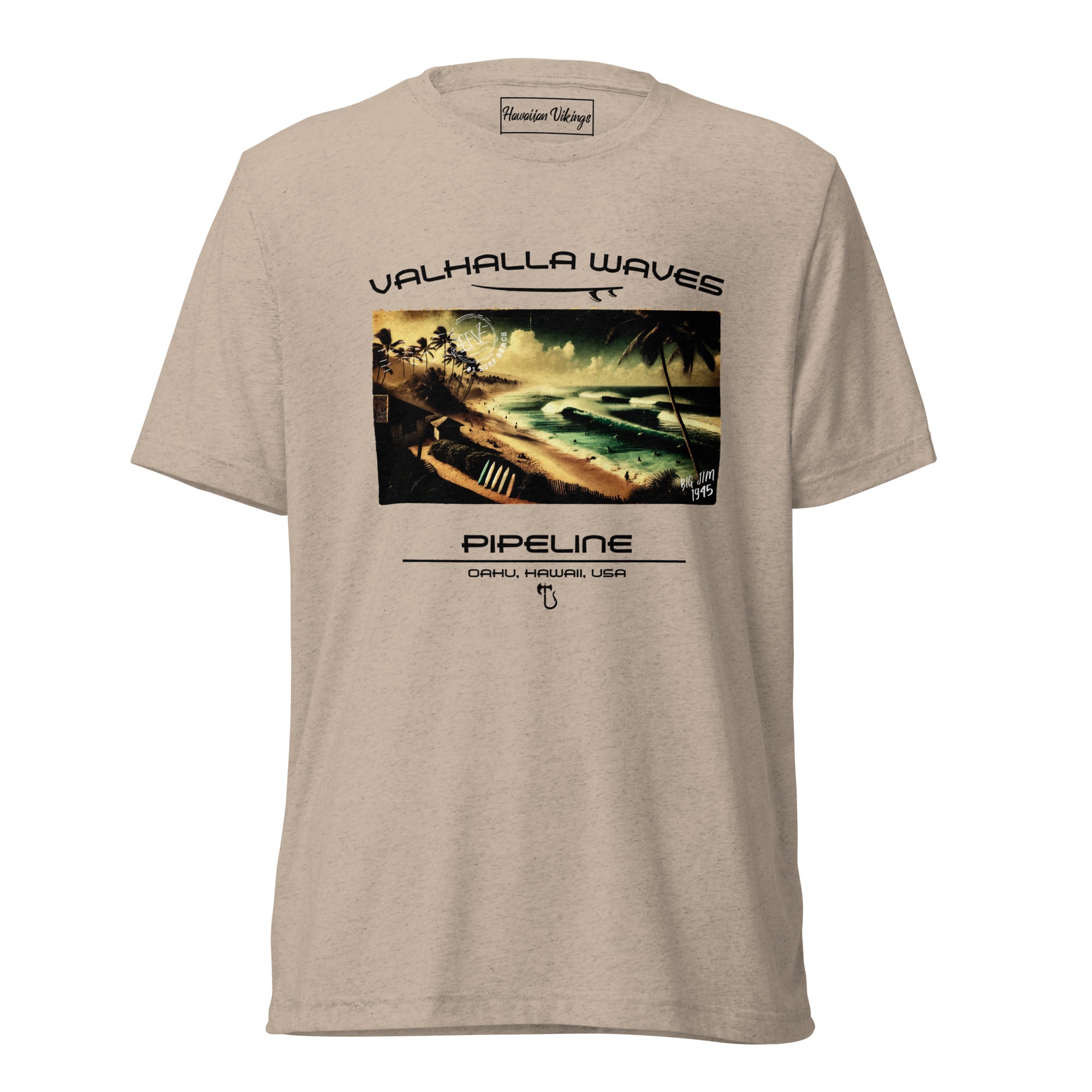 Travel back in time with the "Pipeline Vintage Postcard" t-shirt from the Valhalla Waves collection by Hawaiian Vikings. This design captures the timeless allure of Pipeline, one of the world’s premier surf destinations, with a retro-inspired postcard aesthetic. Featuring vintage lettering, classic surf imagery, and a seamless fusion of Hawaiian and Viking motifs, this tee evokes nostalgia while celebrating the power and beauty of the waves. Perfect for surf enthusiasts and dreamers alike, it’s a wearable tribute to the golden era of surfing and the untamed spirit of Pipeline.