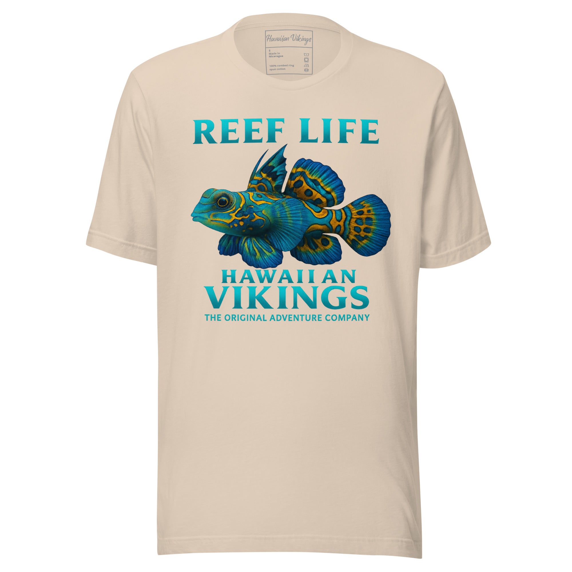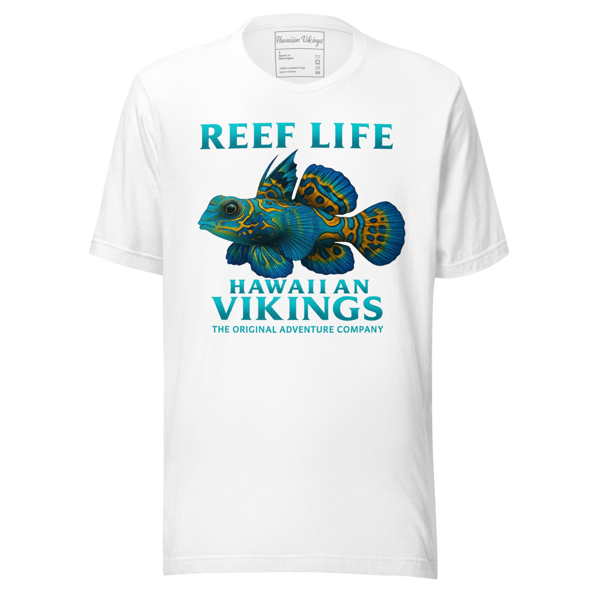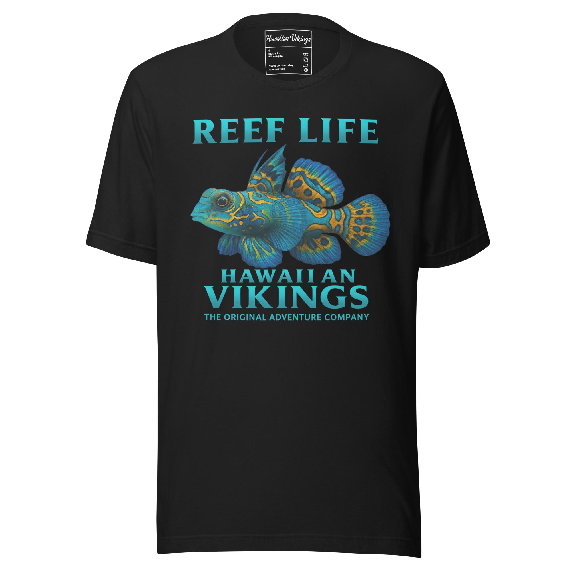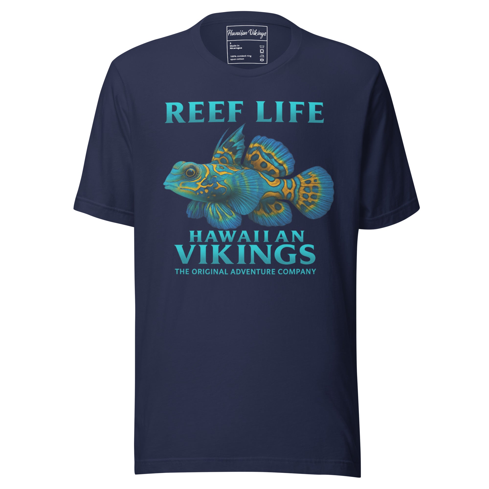 Dazzling, mysterious, and full of color — the Psychedelic Dragonet Unisex T-Shirt from Hawaiian Vikings’ Reef Life Collection celebrates one of the most mesmerizing wonders of the reef. With swirling patterns of turquoise, orange, and deep indigo, the Psychedelic Dragonet embodies creativity, balance, and the magic hidden in the ocean’s quiet corners. This elusive little fish, known for its hypnotic hues and graceful movements, reminds us that even the smallest creatures can be living works of art.