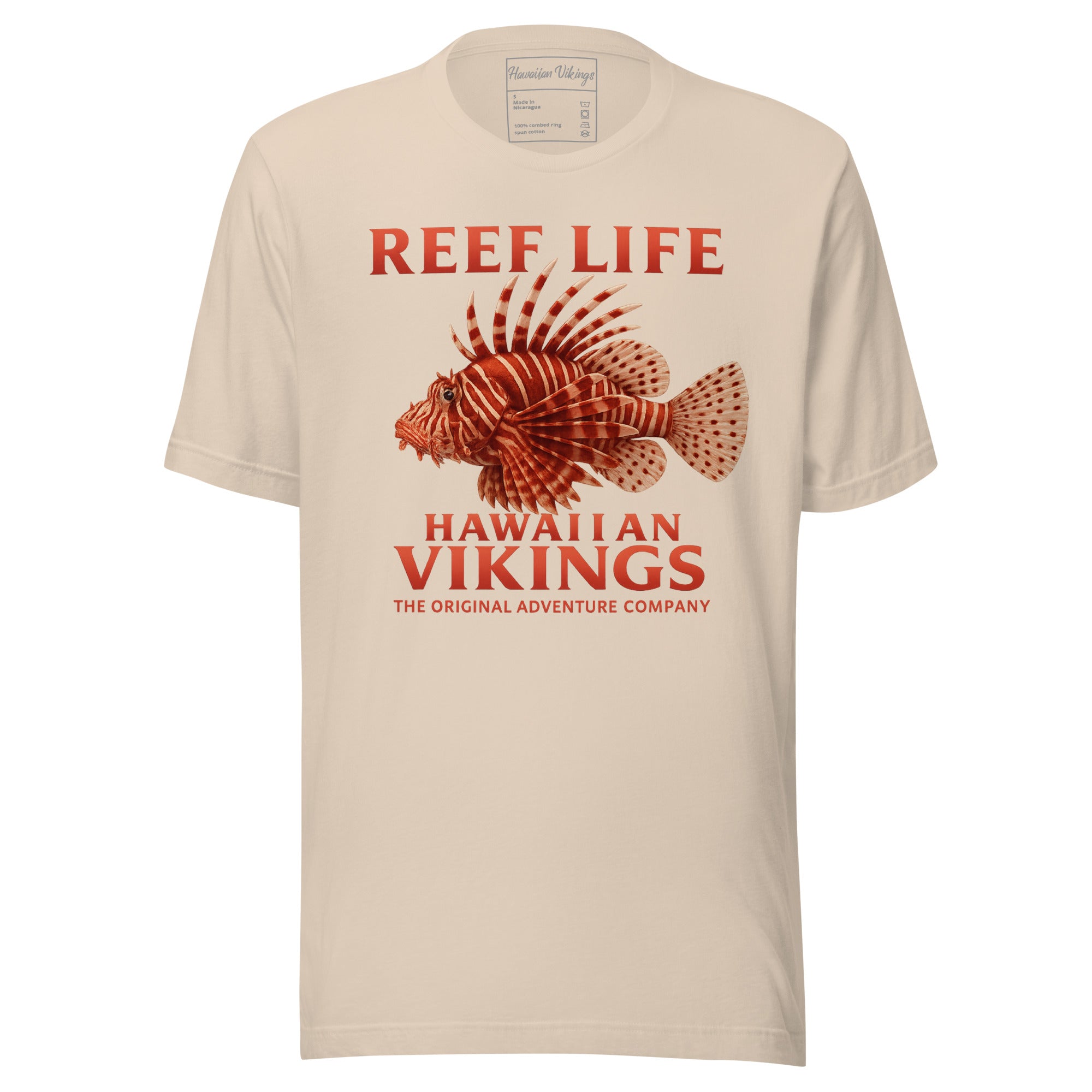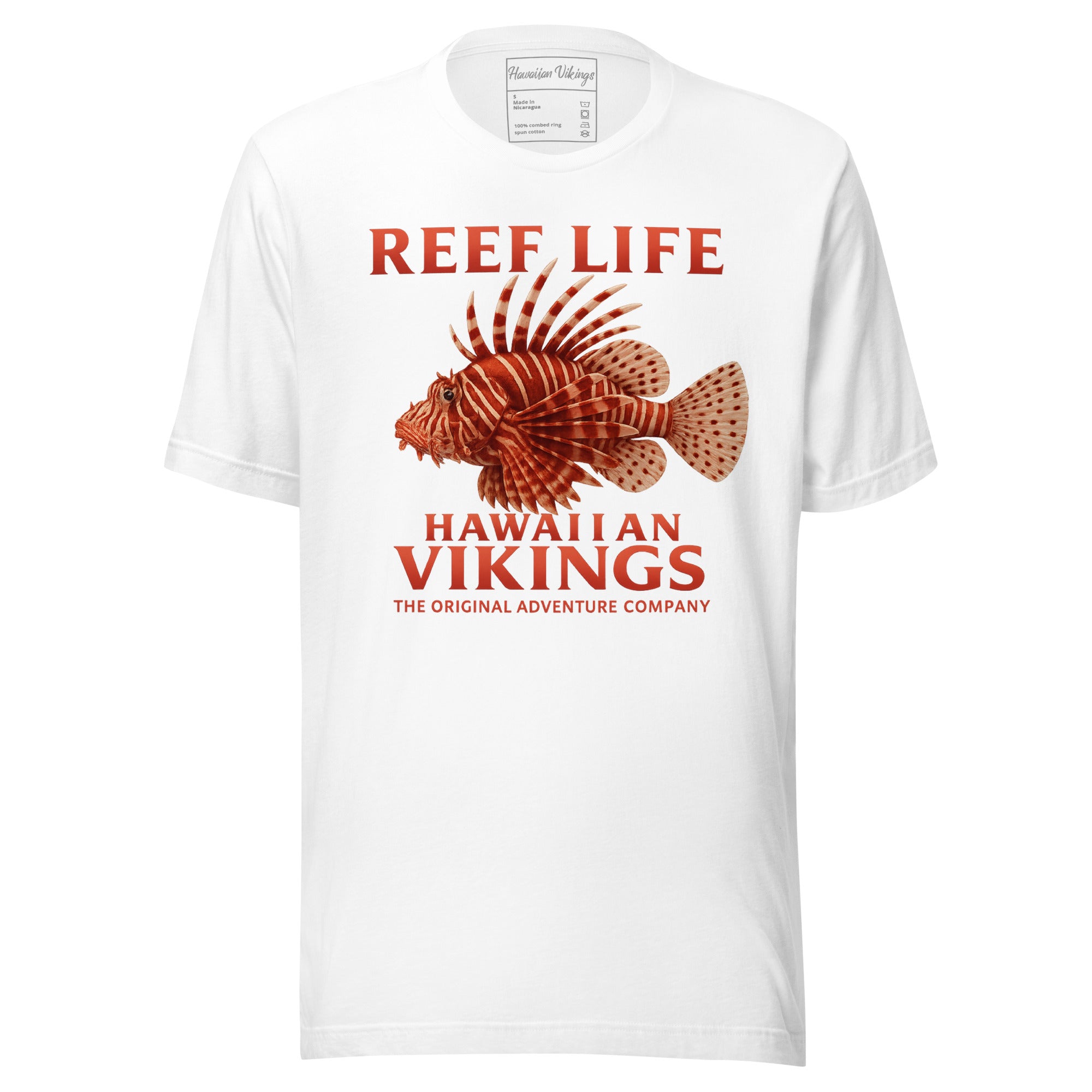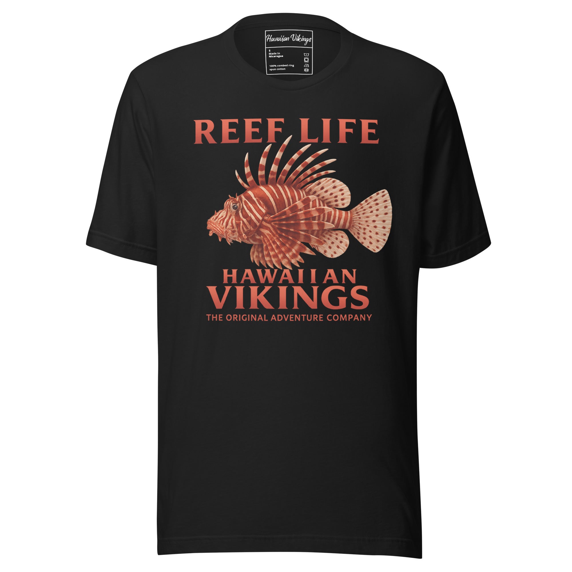 Striking, powerful, and impossible to ignore — the Red Lionfish Unisex T-Shirt from Hawaiian Vikings’ Reef Life Collection celebrates one of the ocean’s most mesmerizing yet formidable inhabitants. With its deep crimson stripes, flowing venom-tipped fins, and commanding presence, the Red Lionfish embodies strength, elegance, and the balance between beauty and danger. This reef warrior glides with hypnotic grace, reminding us that even the fiercest forces of nature can inspire awe and respect.