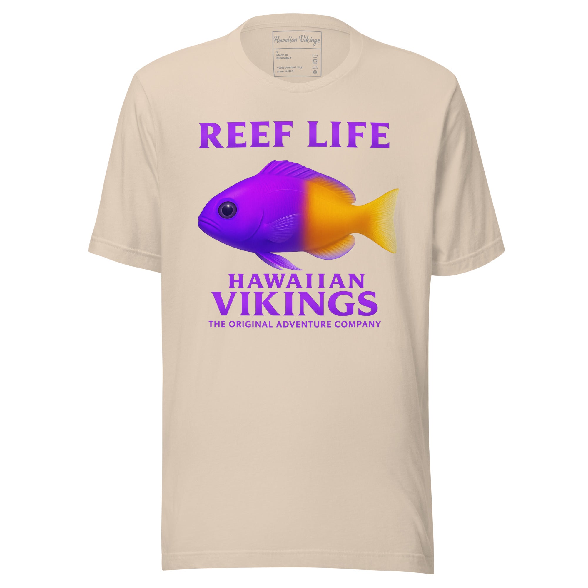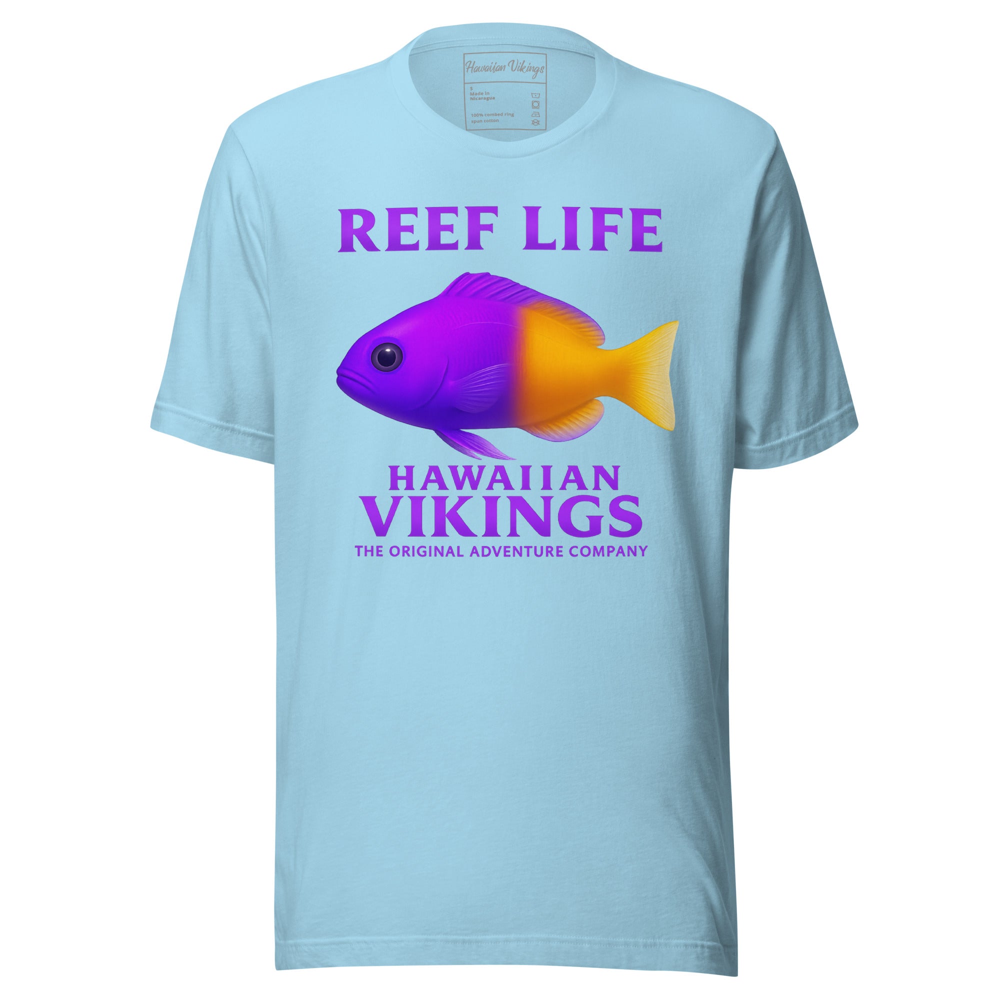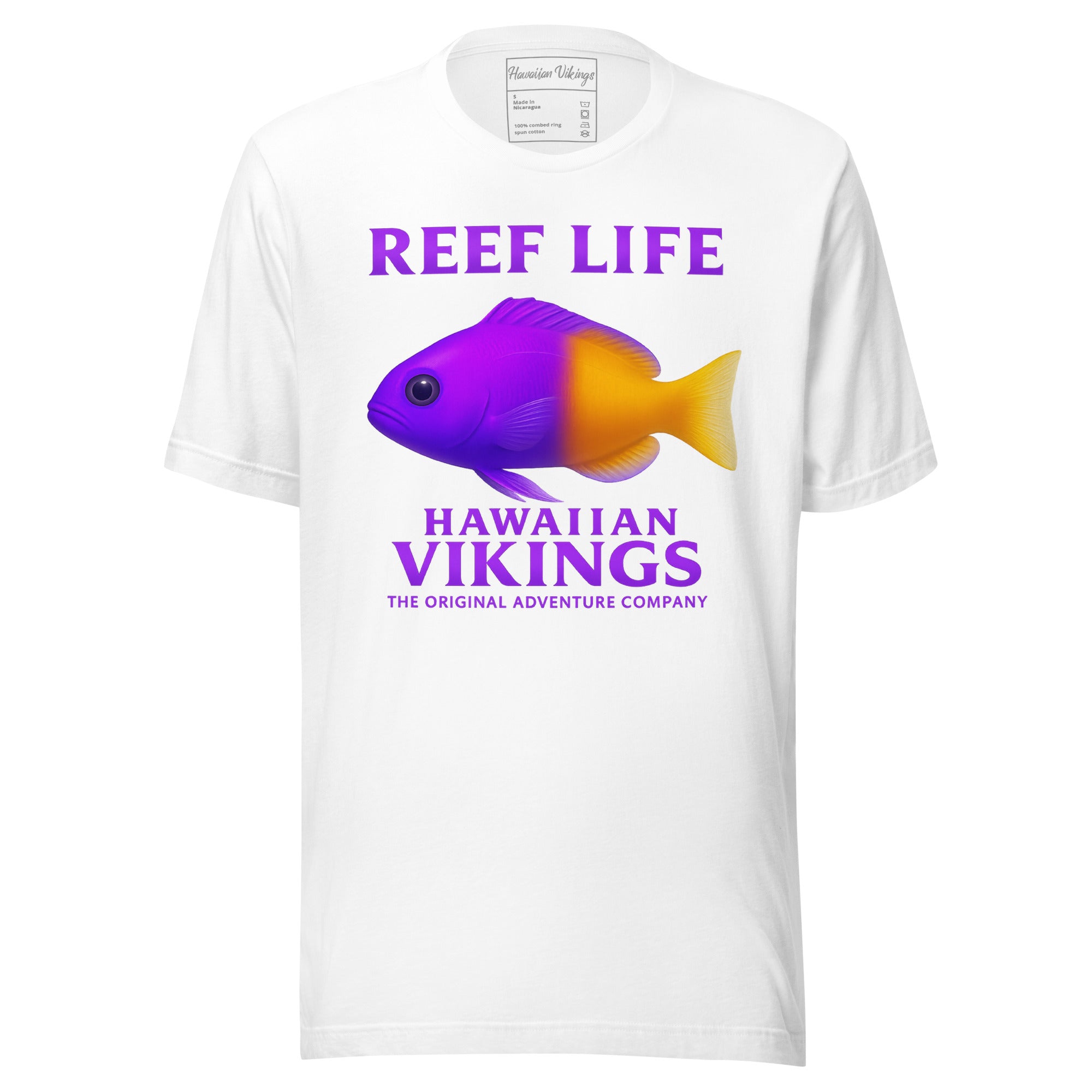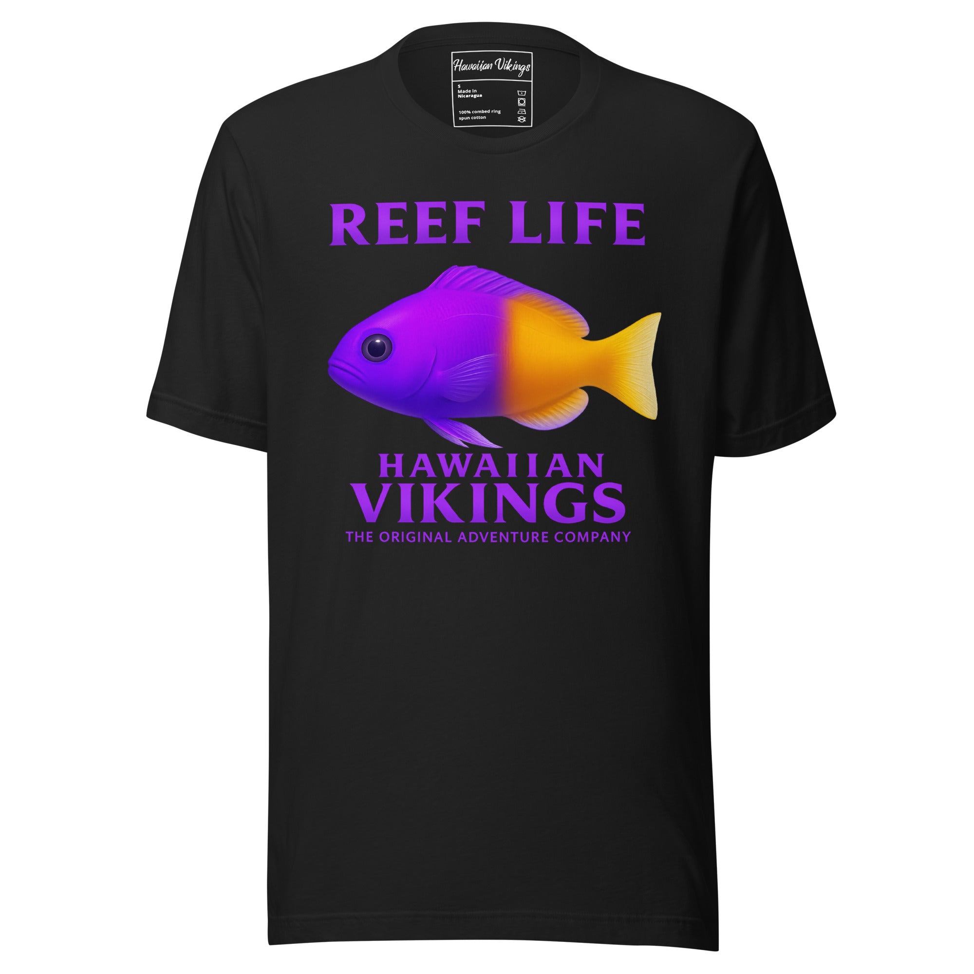 Vivid, graceful, and full of aloha — the Royal Gramma Unisex T-Shirt from Hawaiian Vikings’ Reef Life Collection celebrates one of the reef’s most beloved jewels. With its striking blend of deep violet and golden yellow, the Royal Gramma embodies harmony, confidence, and the quiet beauty that thrives in balance. Gliding effortlessly through coral caves, this little guardian of the reef reminds us that even the smallest bursts of color can bring light to the deep.