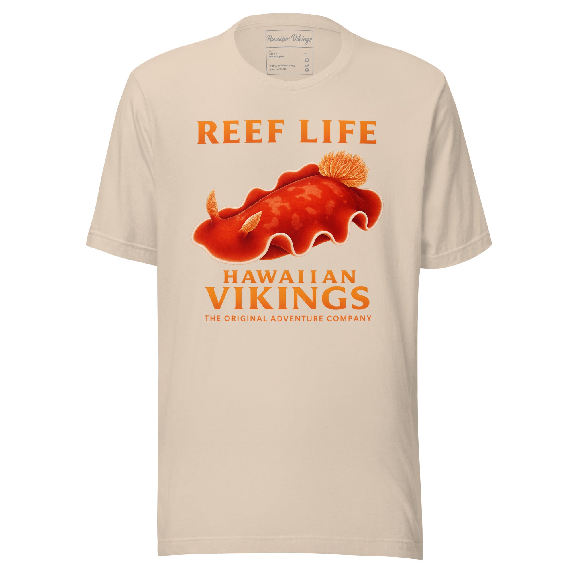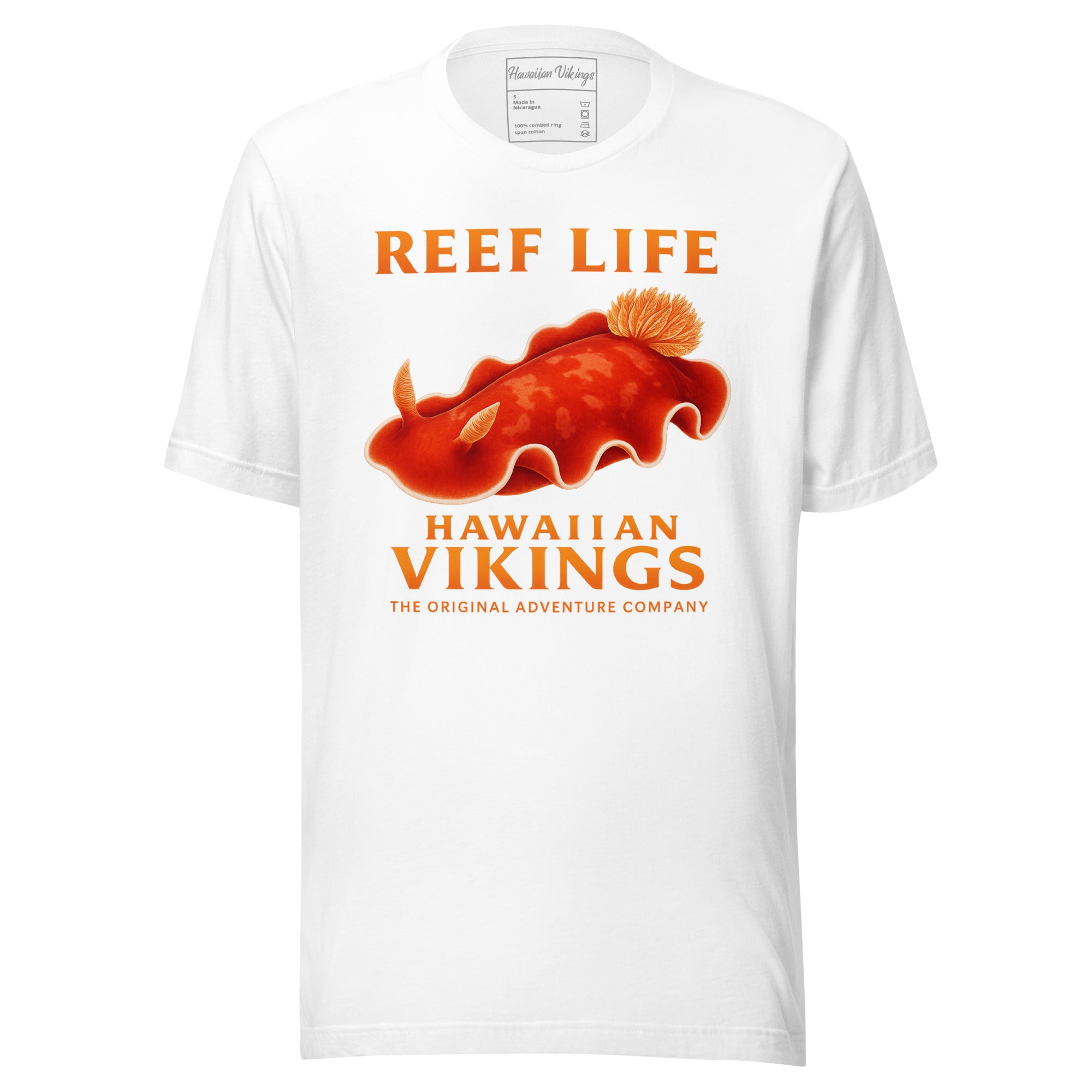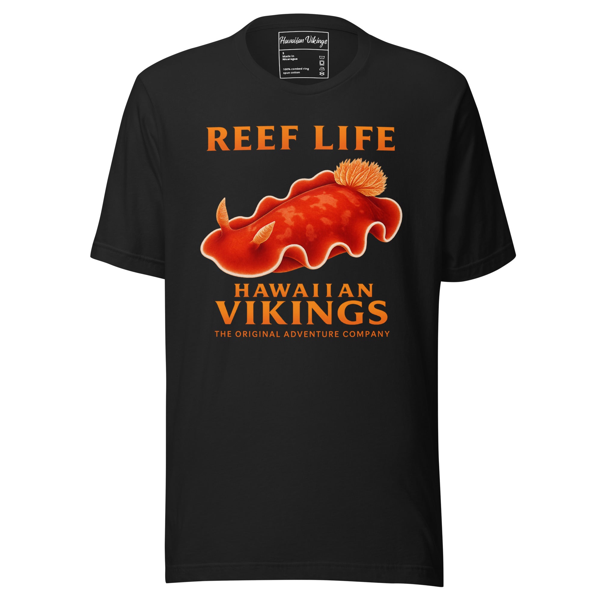 Elegant, radiant, and full of rhythm — the Spanish Dancer Unisex T-Shirt from Hawaiian Vikings’ Reef Life Collection celebrates one of the ocean’s most mesmerizing performers. With its flowing crimson and gold body gliding like a flamenco dancer through the sea, the Spanish Dancer embodies freedom, grace, and the artistry of life beneath the waves. Each movement tells a story of balance and beauty — a living dance of aloha in the heart of the reef.