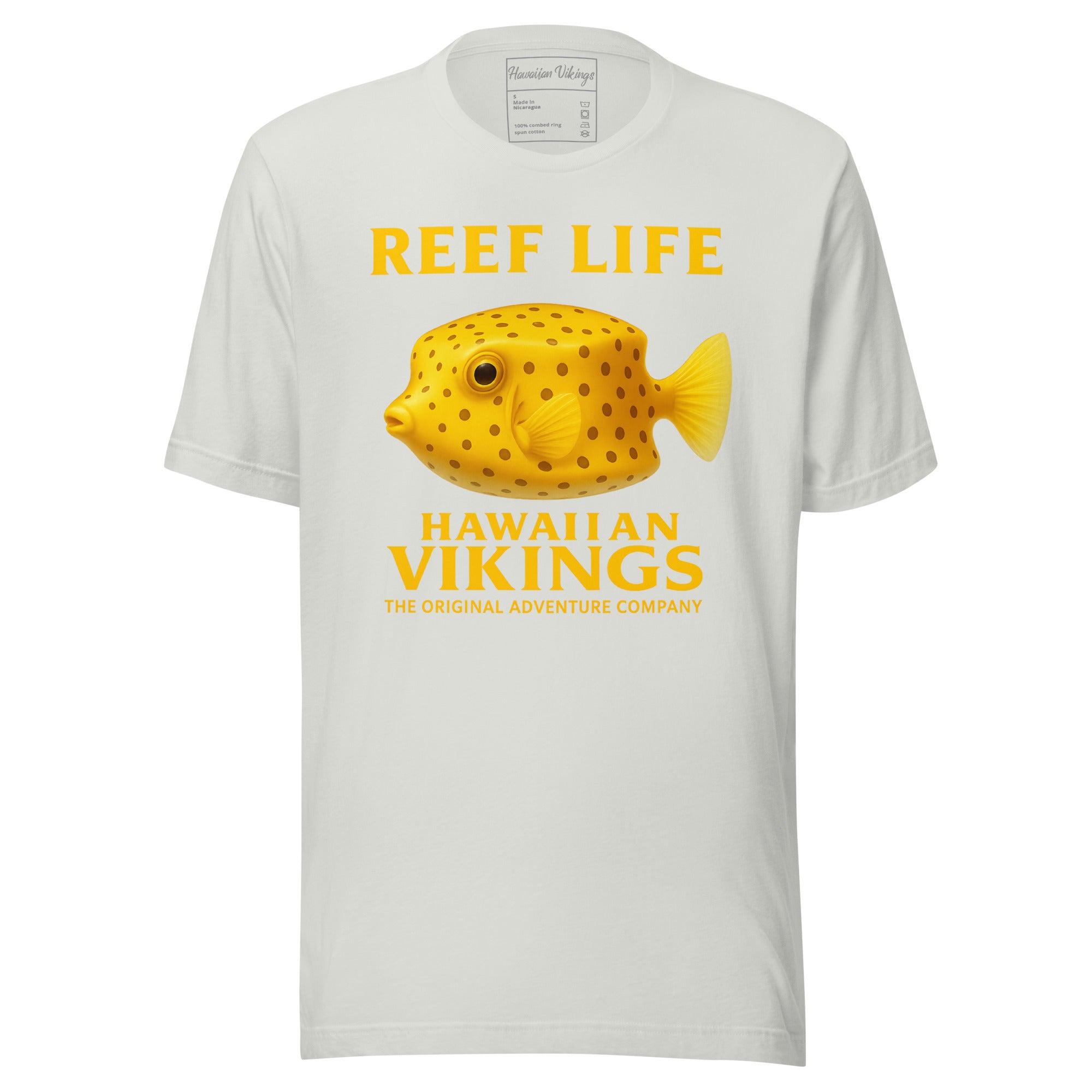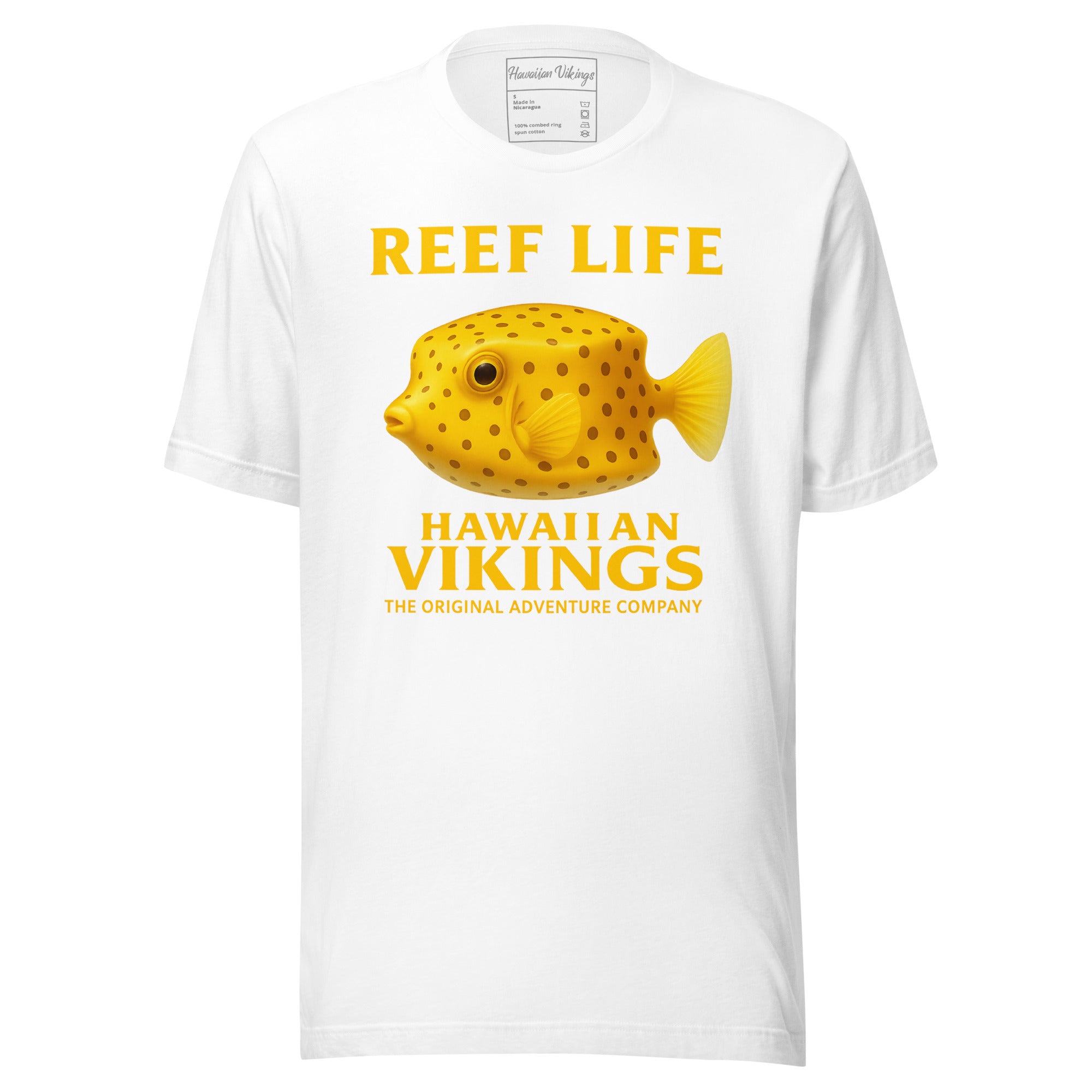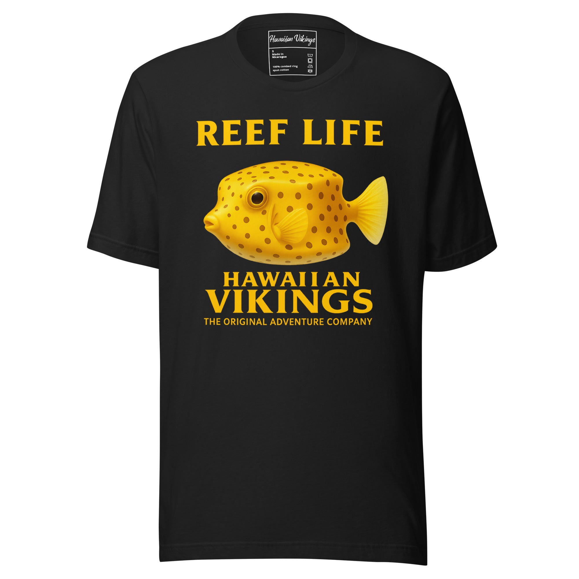 Bright, bold, and irresistibly unique — the Yellow Boxfish Unisex T-Shirt from Hawaiian Vikings’ Reef Life Collection shines a light on one of the ocean’s most charming reef dwellers. With its brilliant golden hue and playful black spots, the Yellow Boxfish embodies joy, resilience, and the vibrant creativity that thrives beneath the waves. Despite its small, boxy frame, this little adventurer navigates the reef with calm confidence, proving that strength often comes in the most unexpected forms.