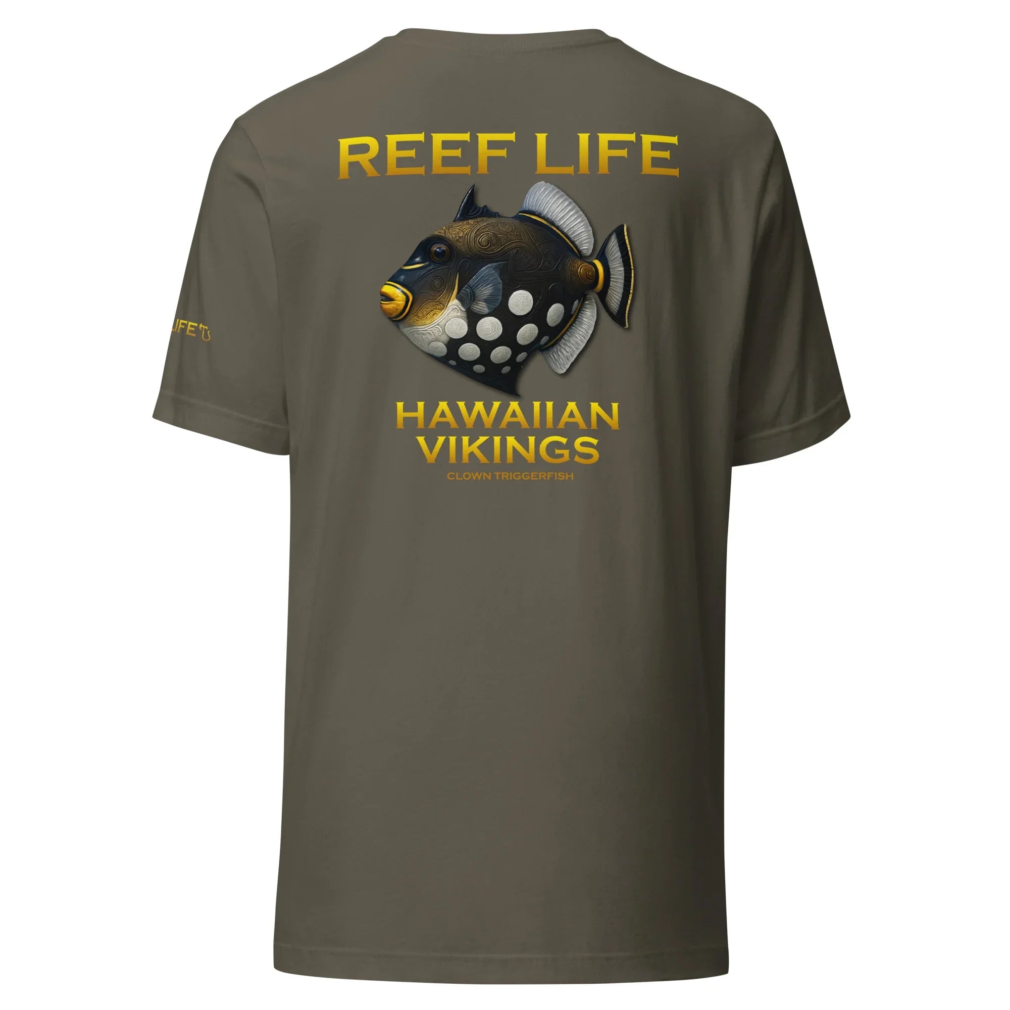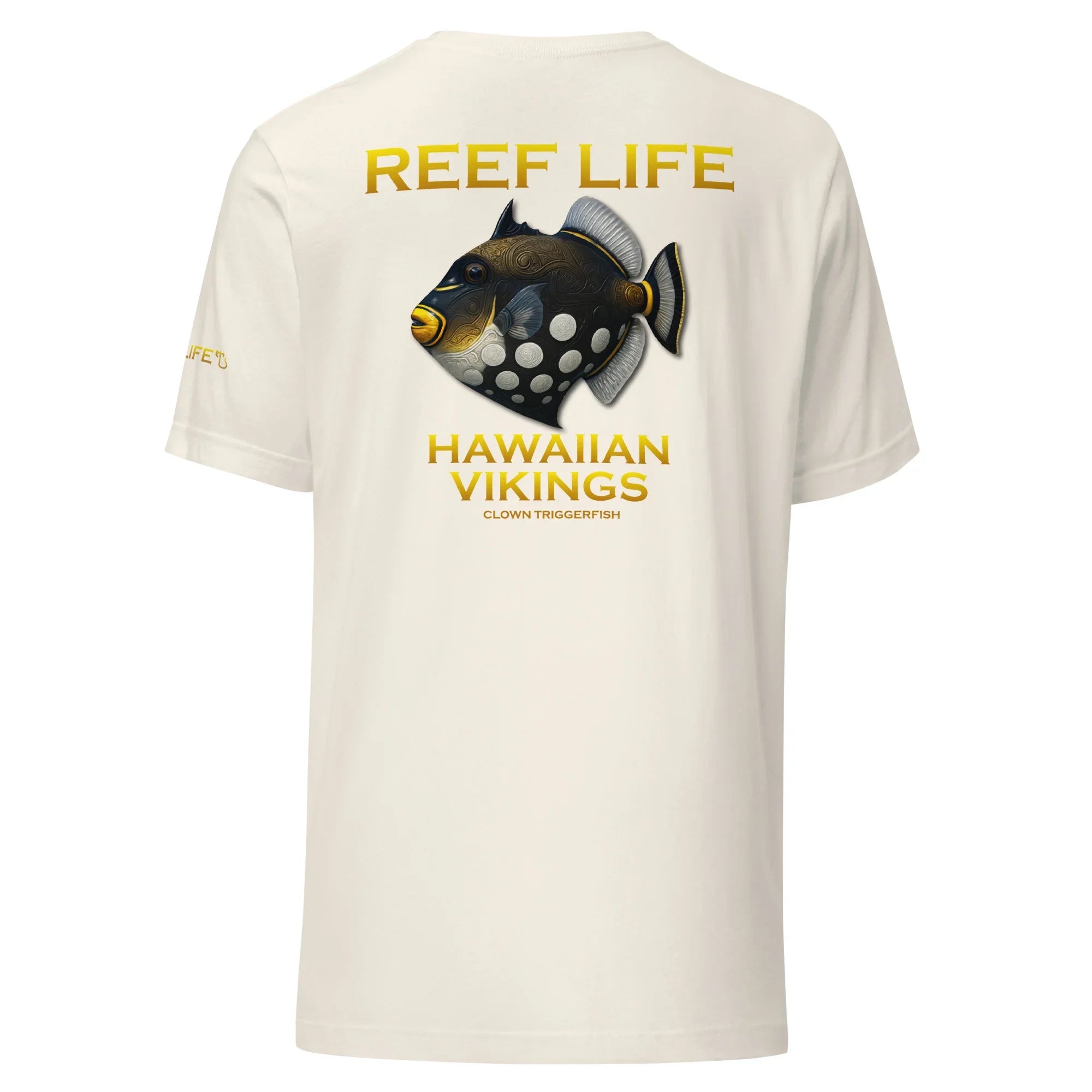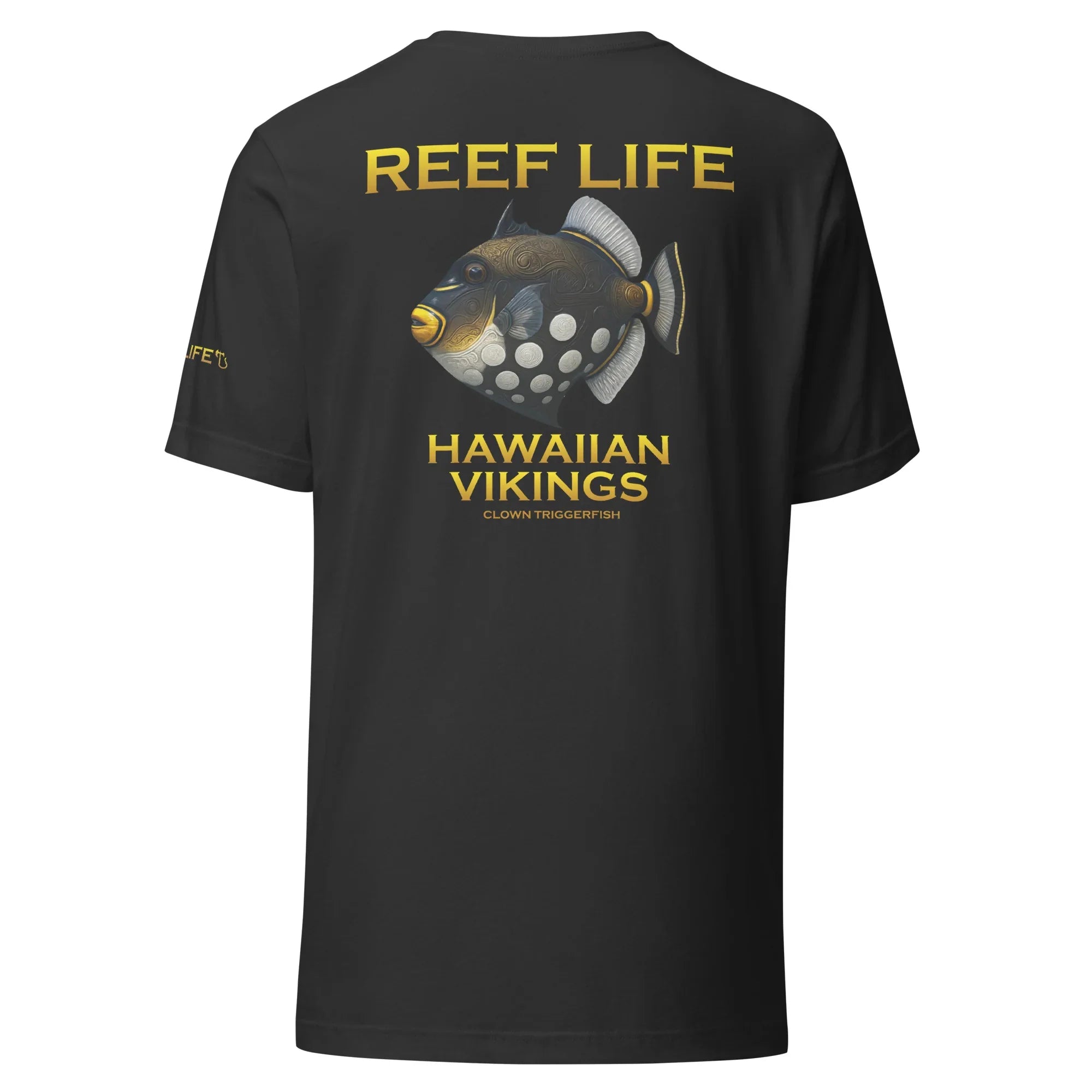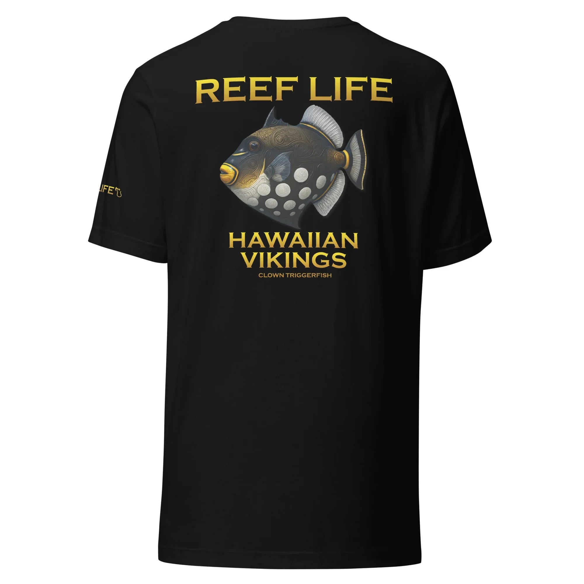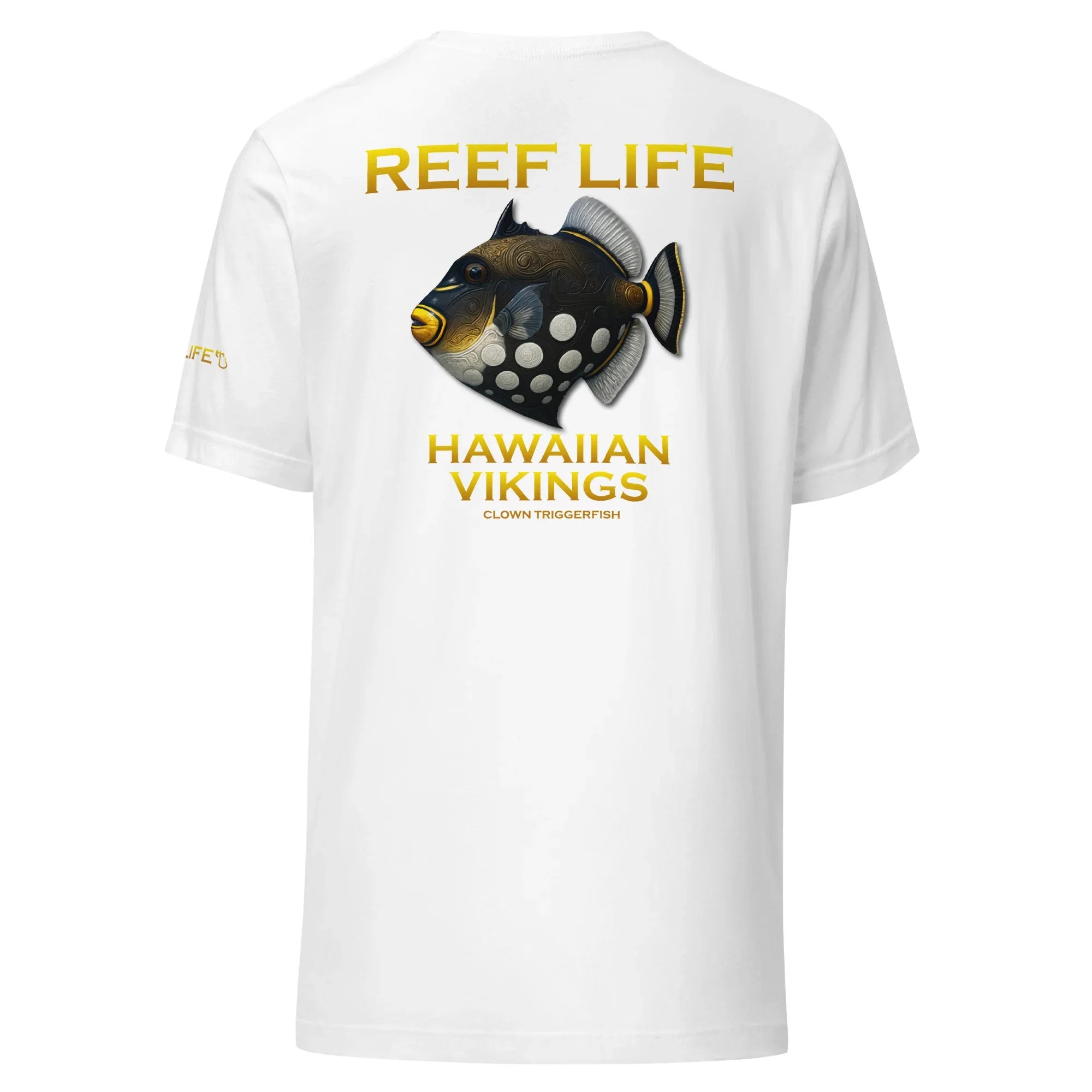 Bold, striking, and instantly recognizable, this standout tee from the Reef Life Collection features the iconic Clown Triggerfish, known for its dramatic contrast, powerful presence, and commanding role on the reef. The design highlights its unmistakable pattern while seamlessly integrating engraved Hawaiian motifs and Viking-inspired carvings into its natural form.