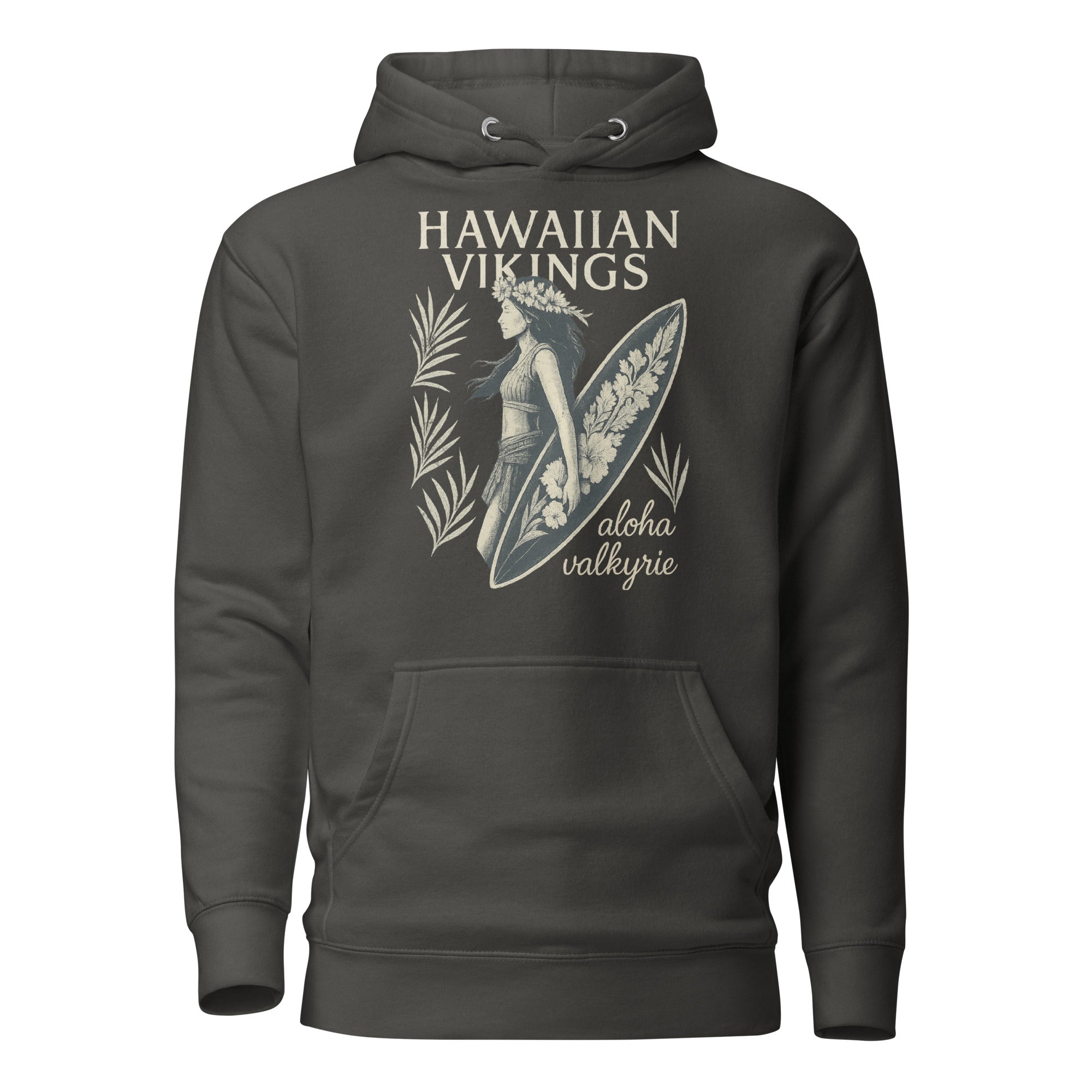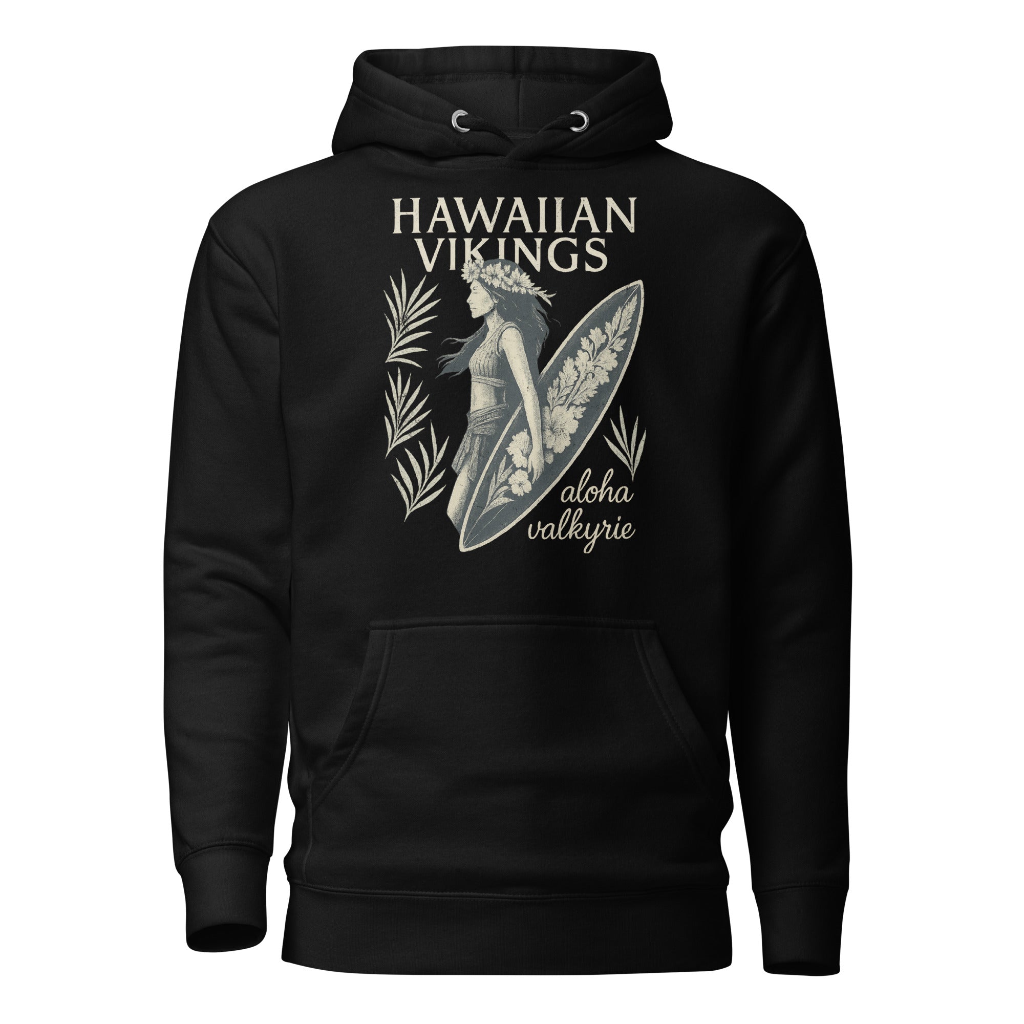 Channel the golden age of surf and the strength of the Valkyrie spirit with the Aloha Valkyrie “Vintage Surfer Girl” Unisex Hoodie. This vintage-distressed, linen-style design features a beautiful woman holding her surfboard beneath swaying palms and tropical foliage, capturing the perfect blend of island freedom, timeless confidence, and aloha soul.