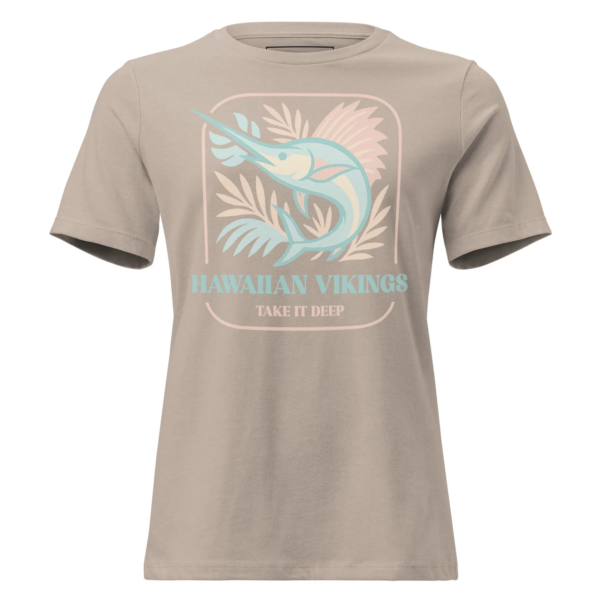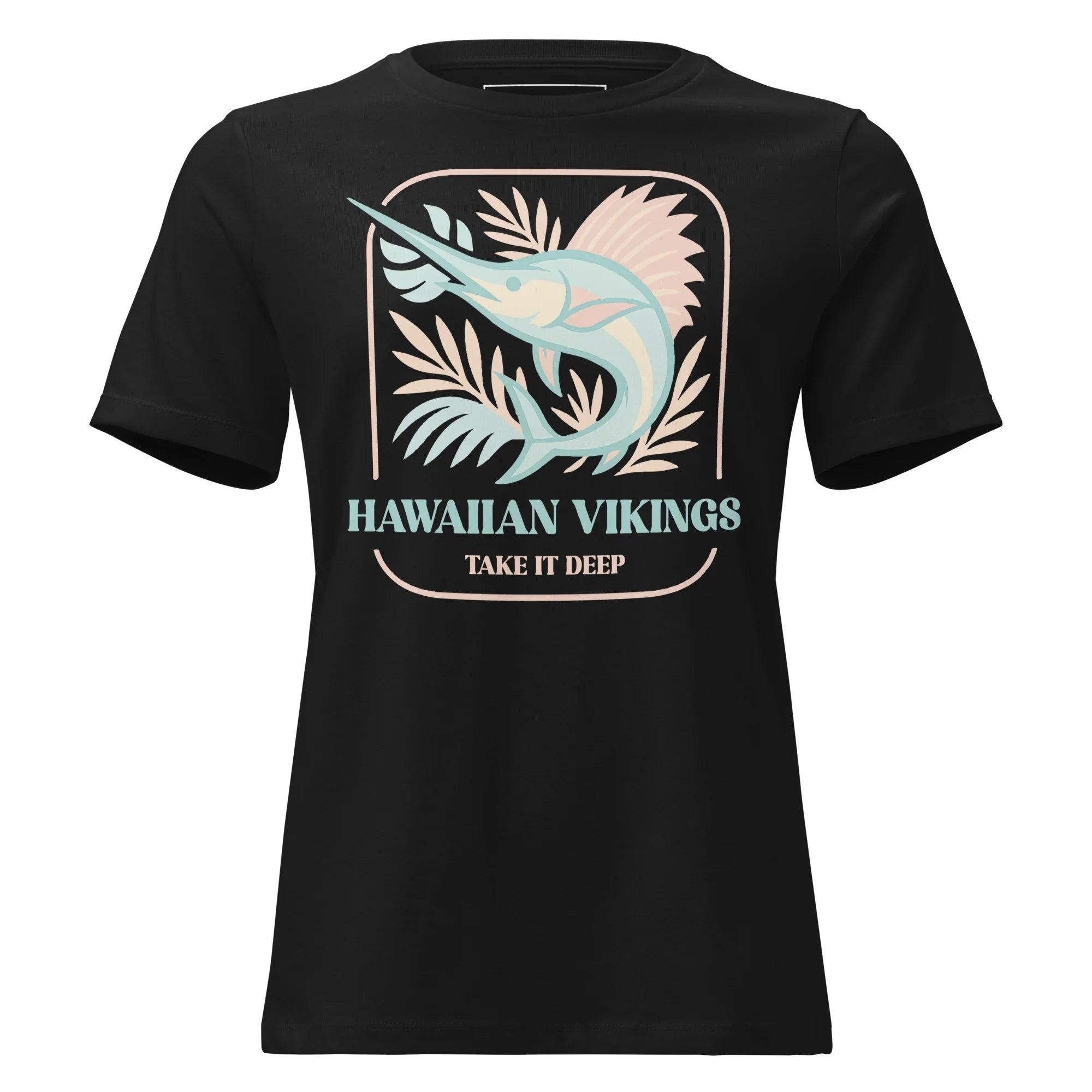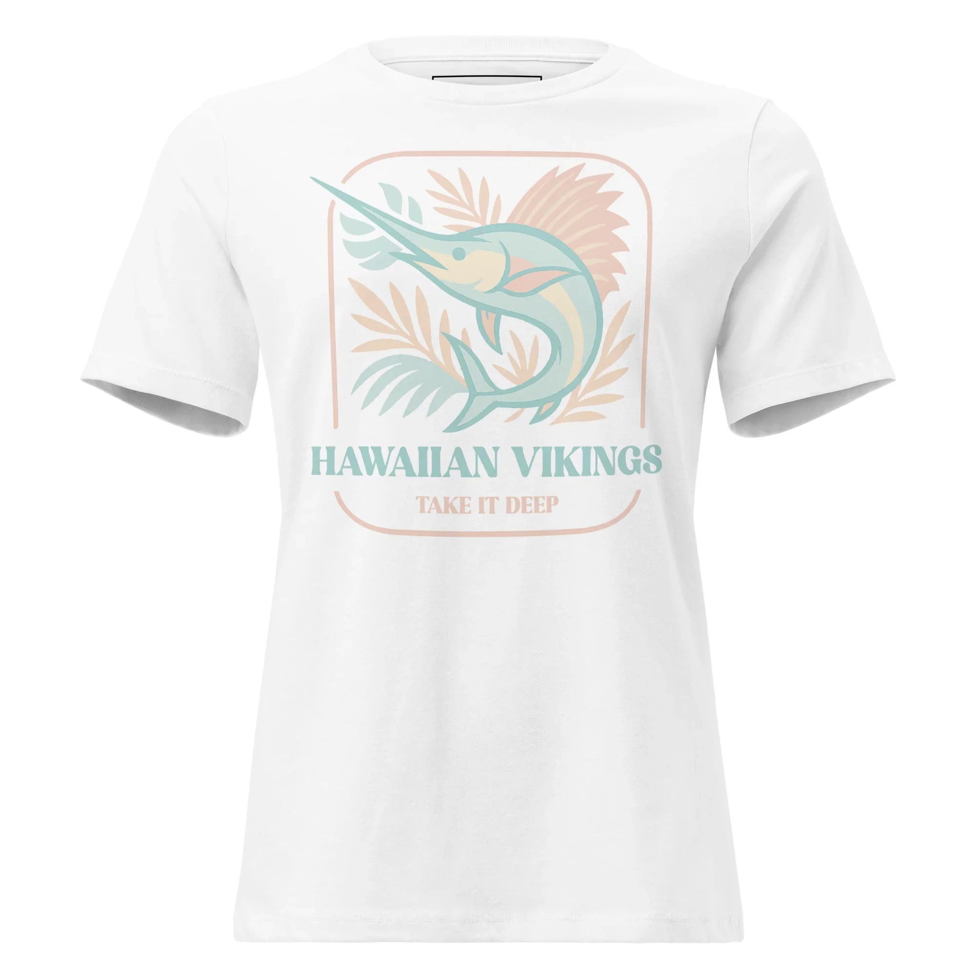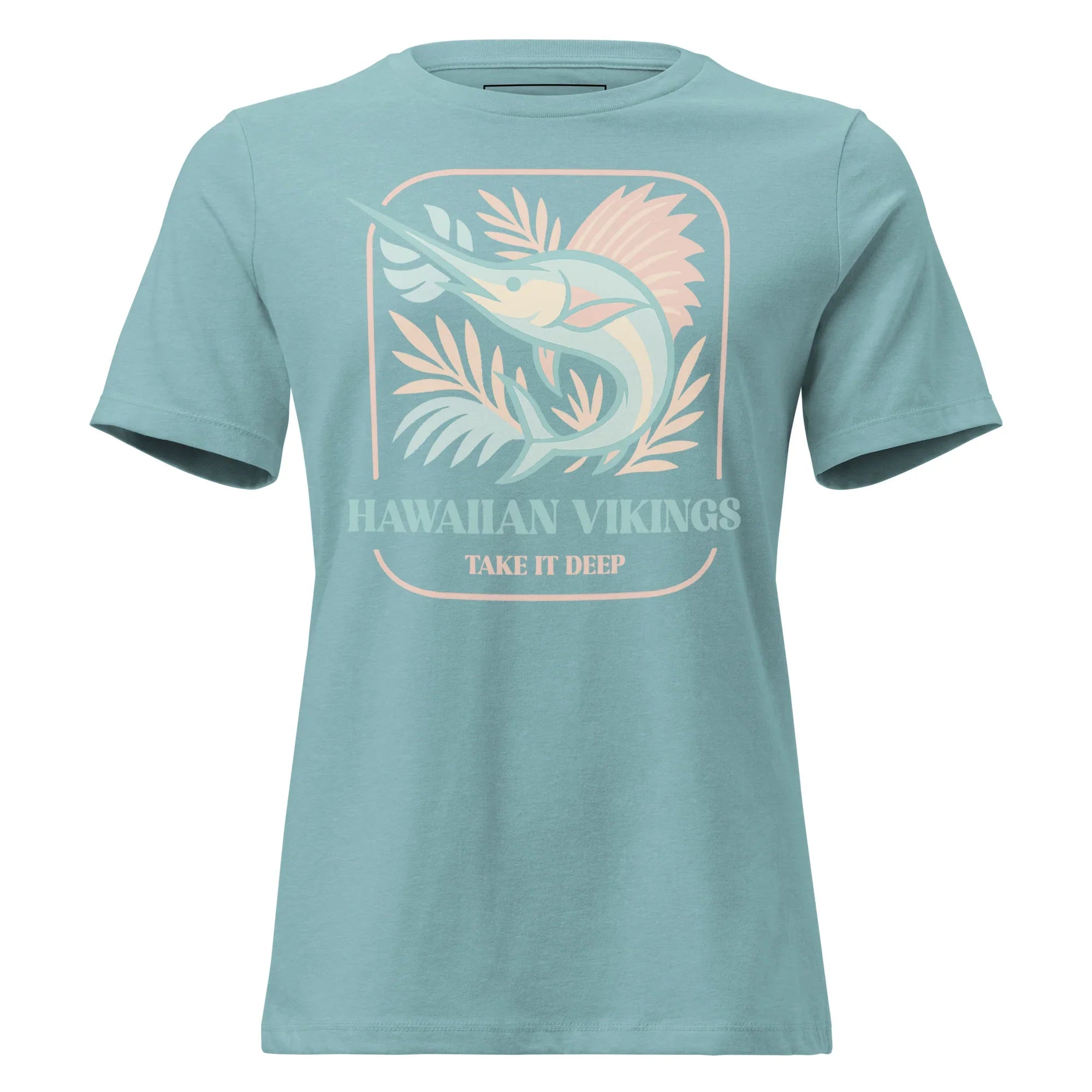 Easygoing with a hint of adventure, the Marlin “Take It Deep” Women’s Relaxed Tee captures the calm power of the ocean in a light, feminine way. This pastel tropical design features a flowing marlin surrounded by soft, sun-washed tropical foliage, creating a breezy island look that feels both peaceful and strong. Finished with the inspiring tagline “Take It Deep,” this tee is a reminder to move through life with confidence, depth, and intention.
