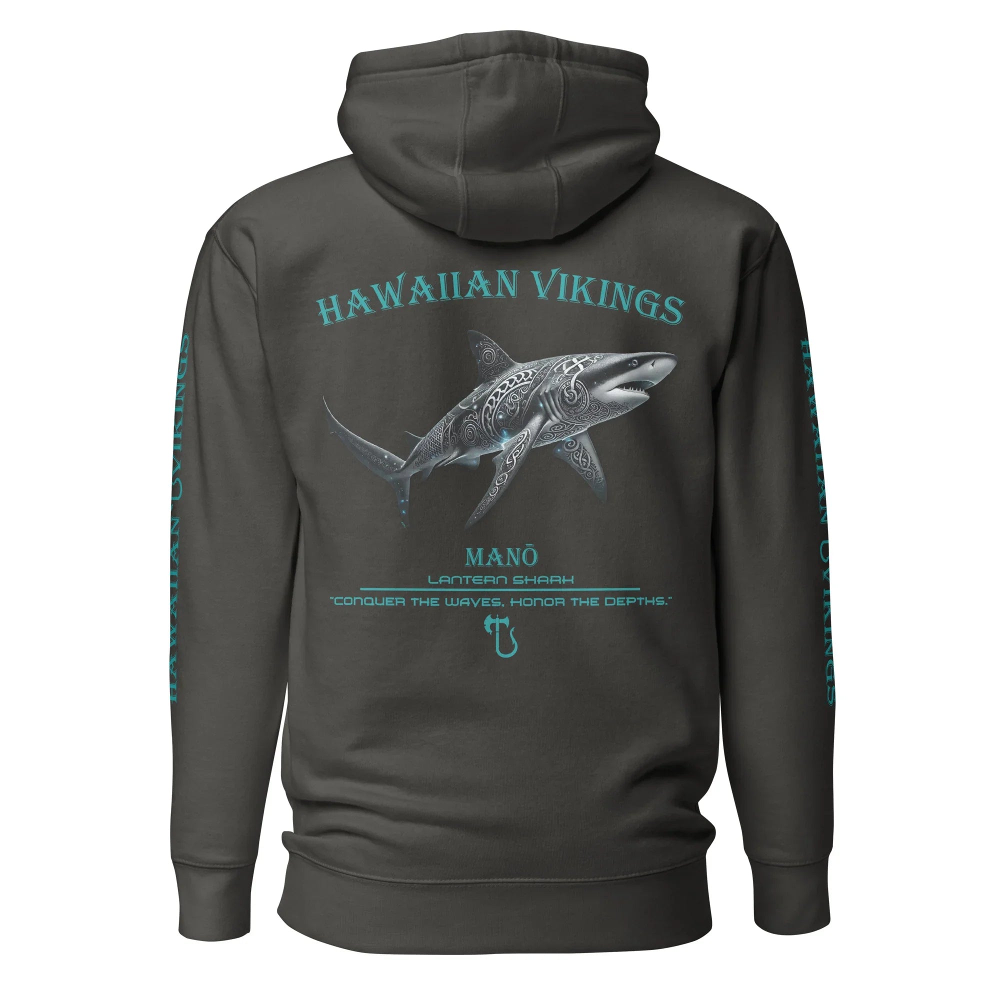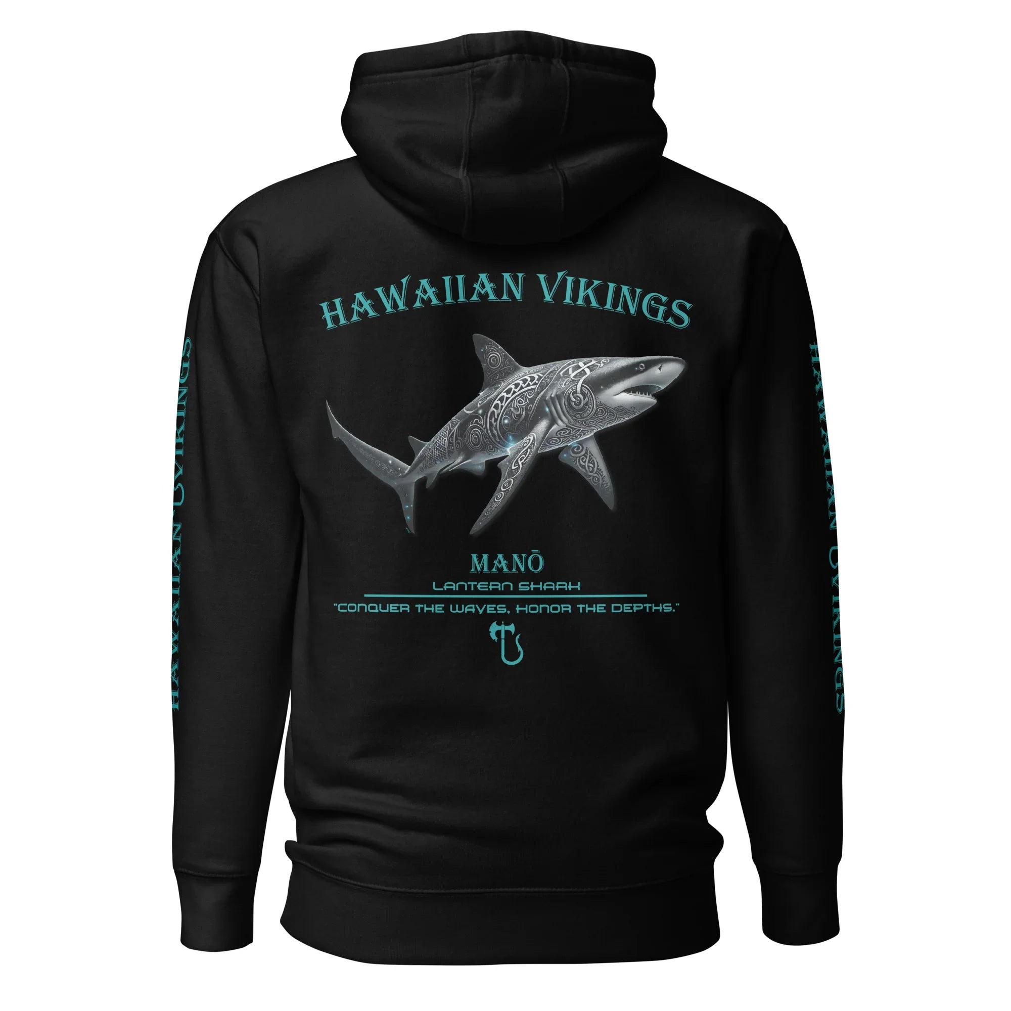 Glow in the darkness with the Lantern Shark Hoodie from the Legends of the Deep collection. One of the ocean’s few bioluminescent sharks, the lantern shark lights its own path through the deep, shadowed waters where pressure is heavy and predators roam. Small but fearless, it survives through stealth, adaptability, and the power to shine when the world goes dark. A symbol of quiet resilience and self-made light, it represents strength that rises from within.