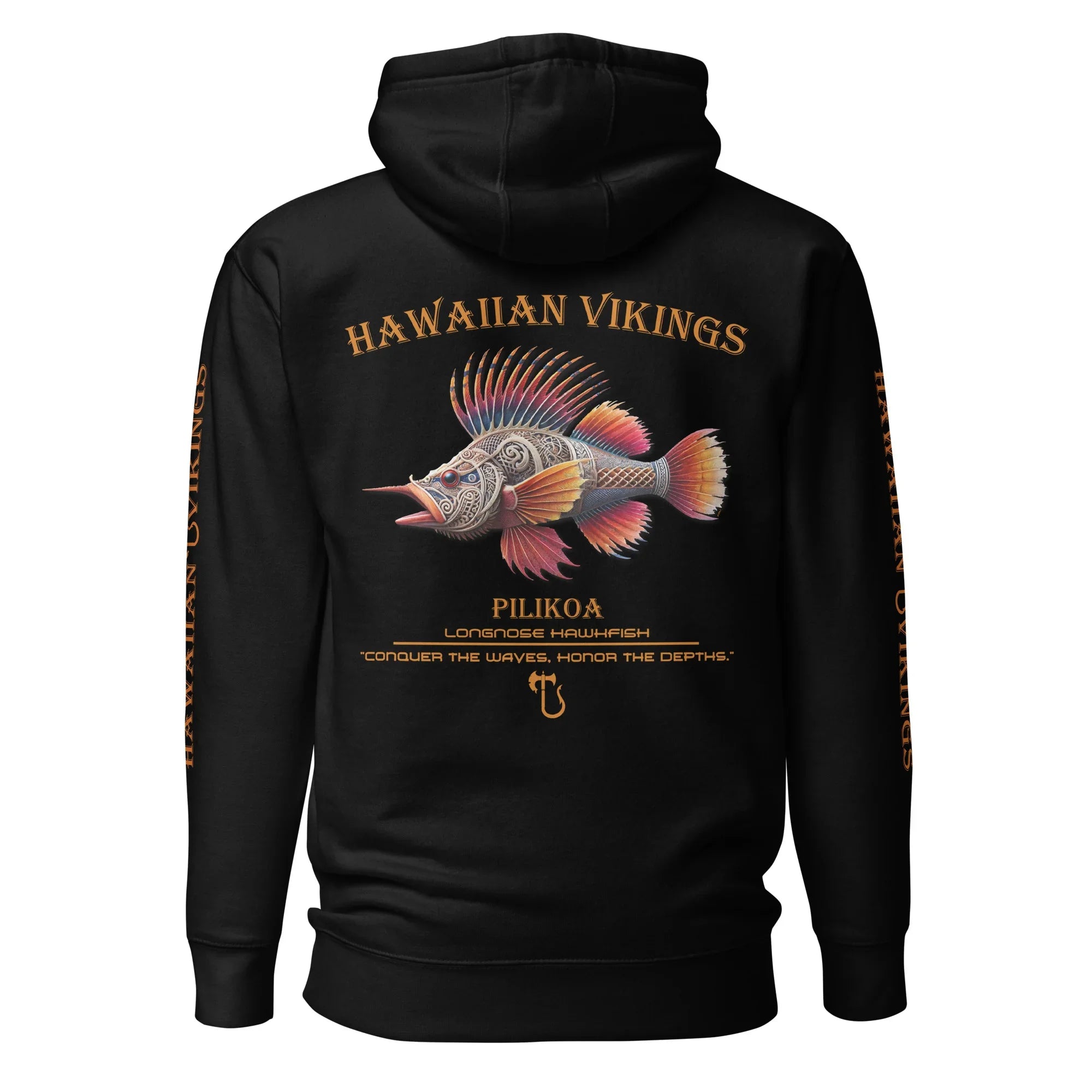 Designed for everyday comfort and durability, this unisex hoodie features an ultra-soft fleece interior, a relaxed fit, and essential details like a cozy hood and spacious pouch pocket—perfect for layering or wearing on its own. Finished with a striking longnose hawkfish design, this hoodie brings reef-born vigilance and ocean-forged confidence to your everyday style.